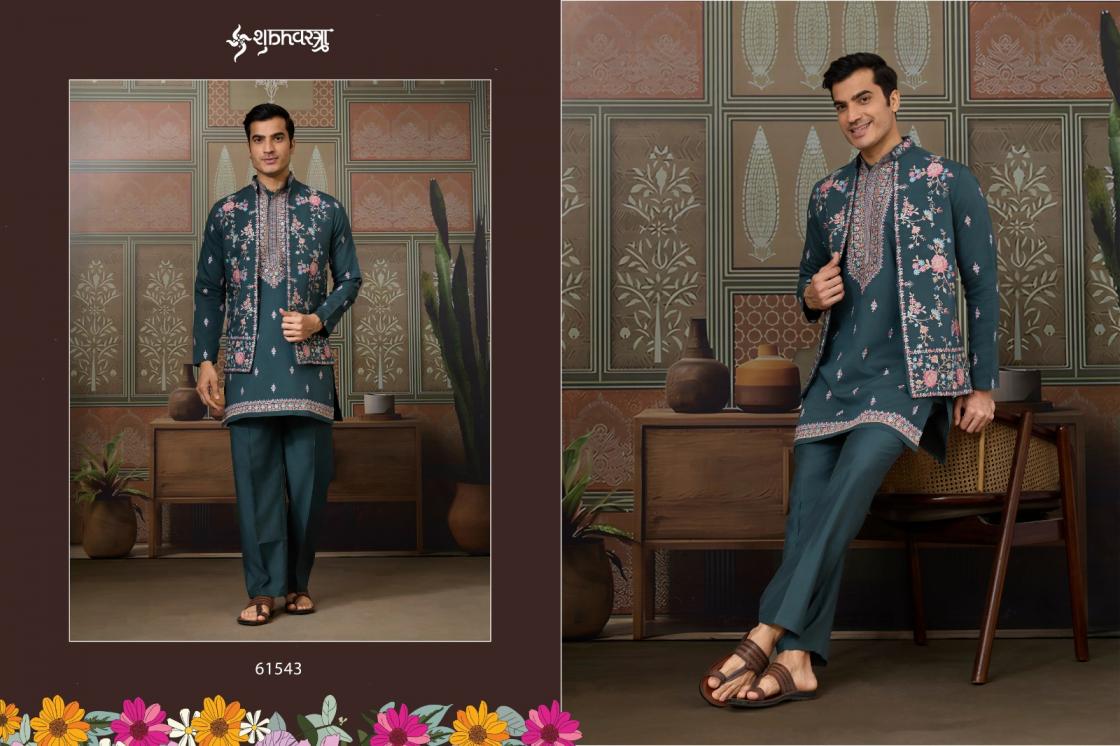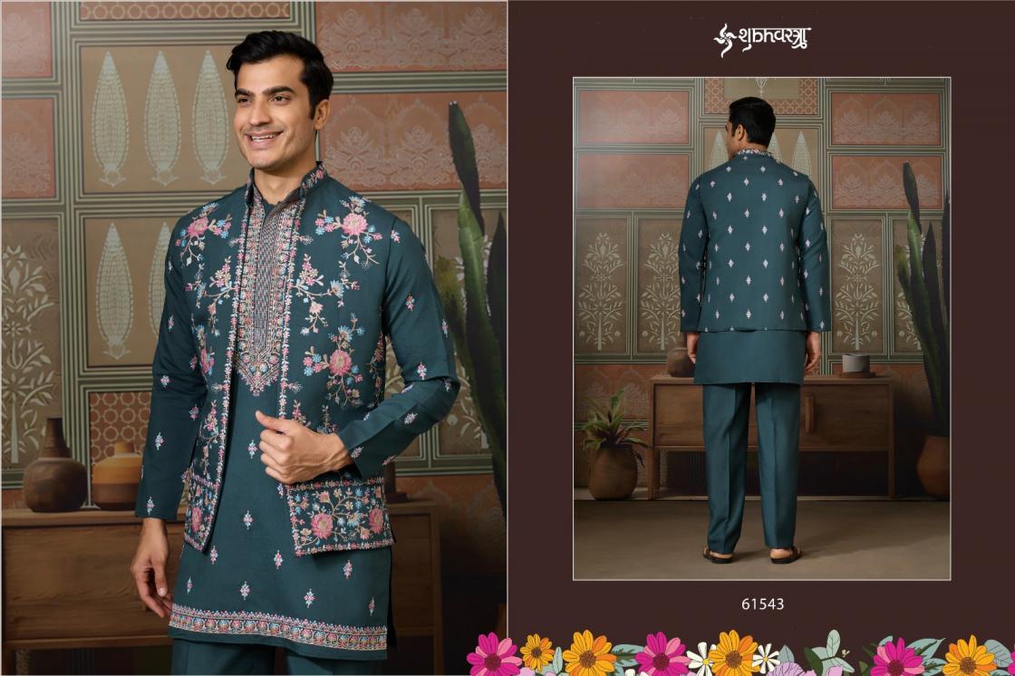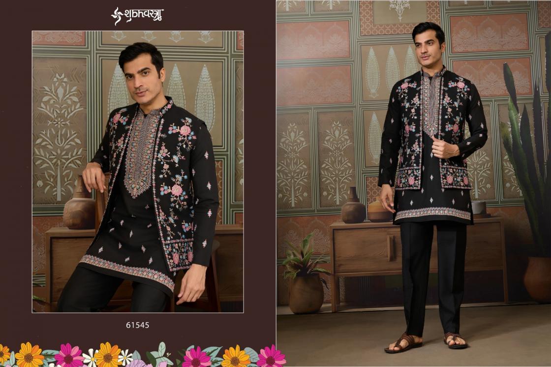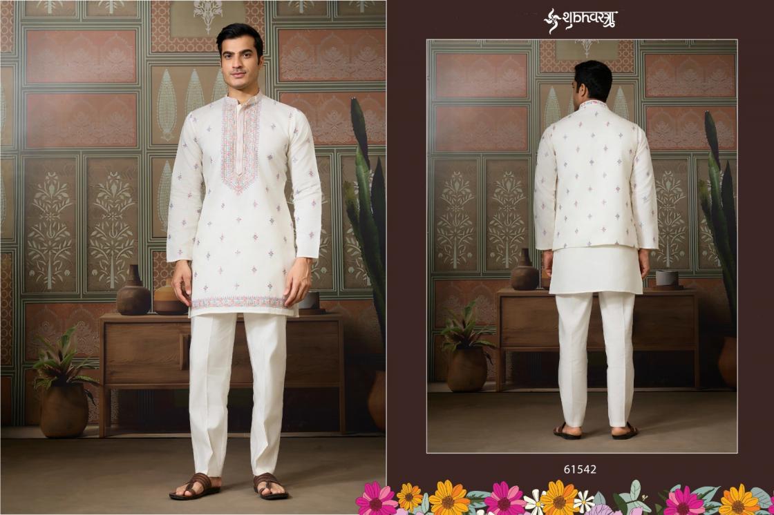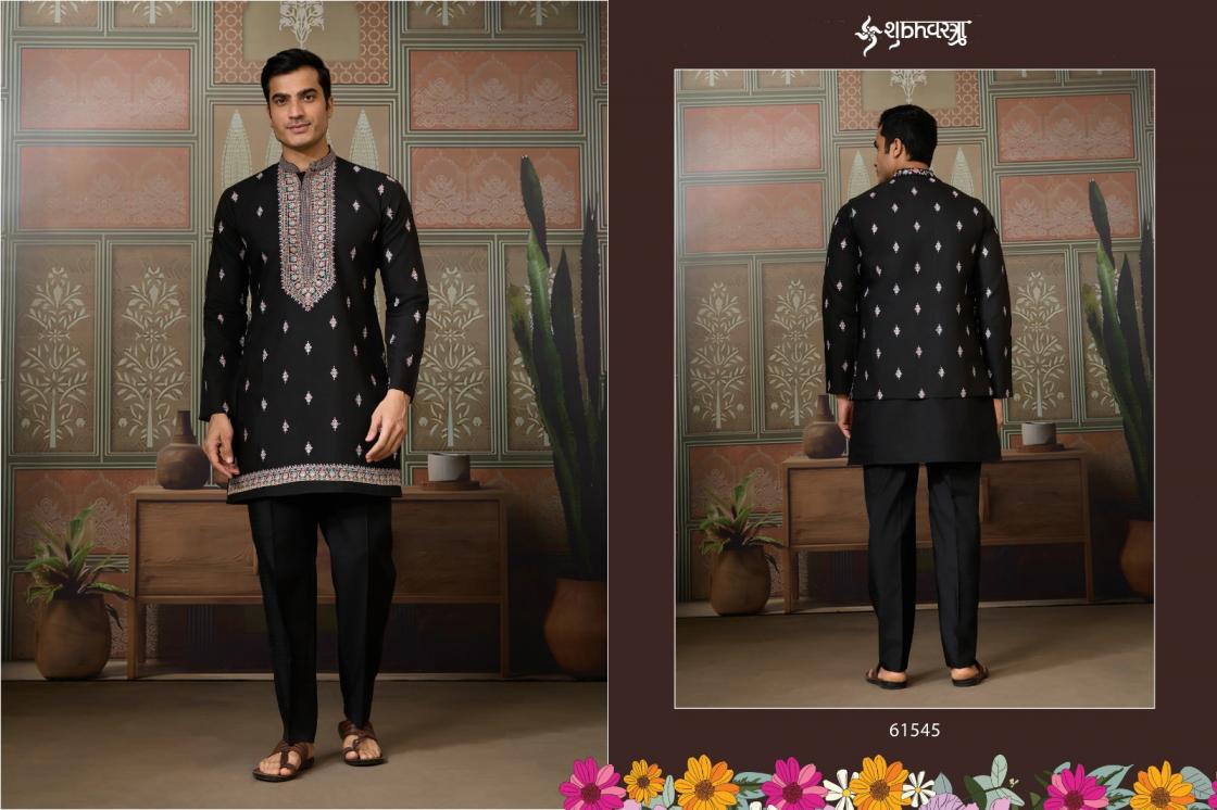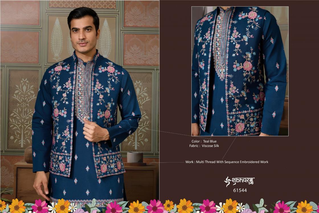 shubhvastra golden viraasat readymade viscose silk stylish mens kurta pant with koti