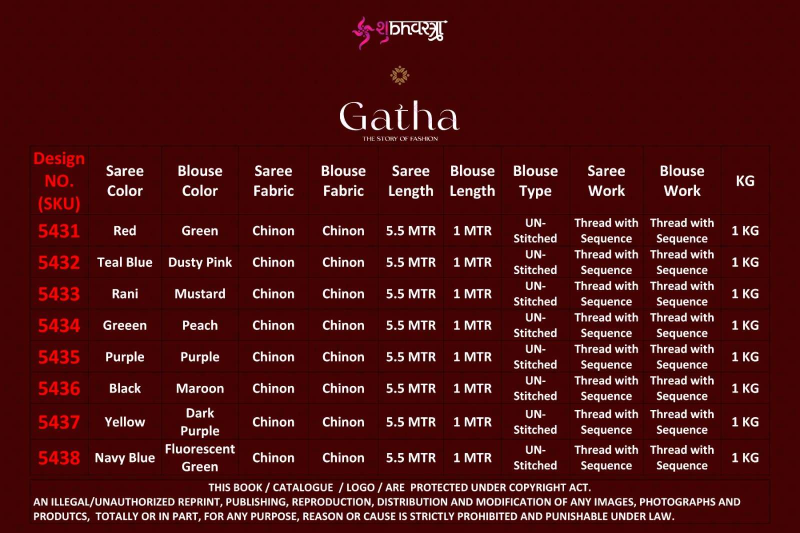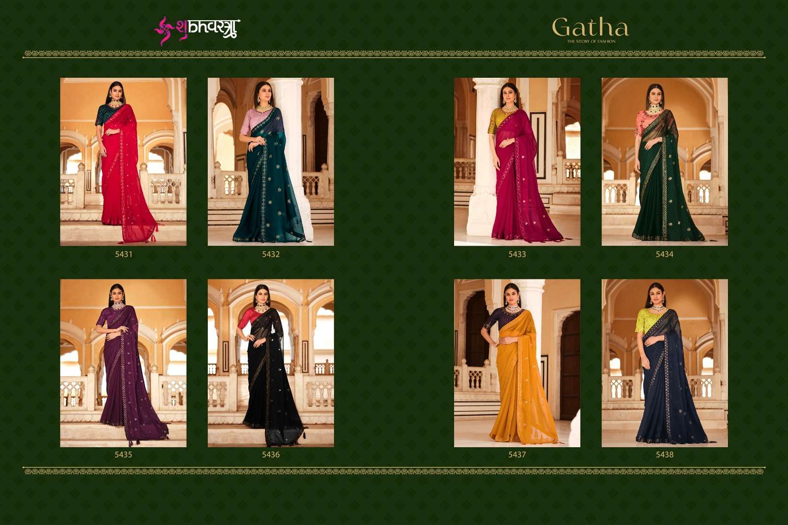 🌺 SHUBHVASTRA 🌺 🌻 GATHA VOL. 1 🌻 👗 New Exclusive Embroidered Saree Set Collection 👗 💰 RATE LIST 💰 5431: 1250/- Weight: 1 KG. 📦 Real Pic Available. 👗 |