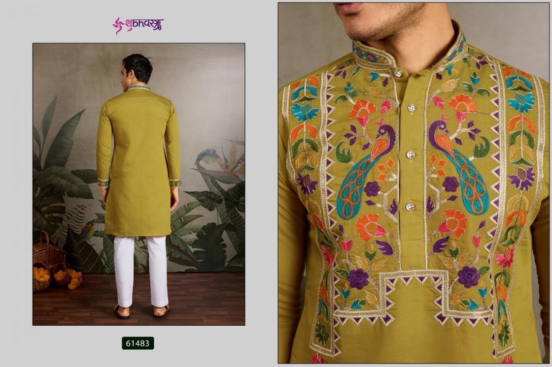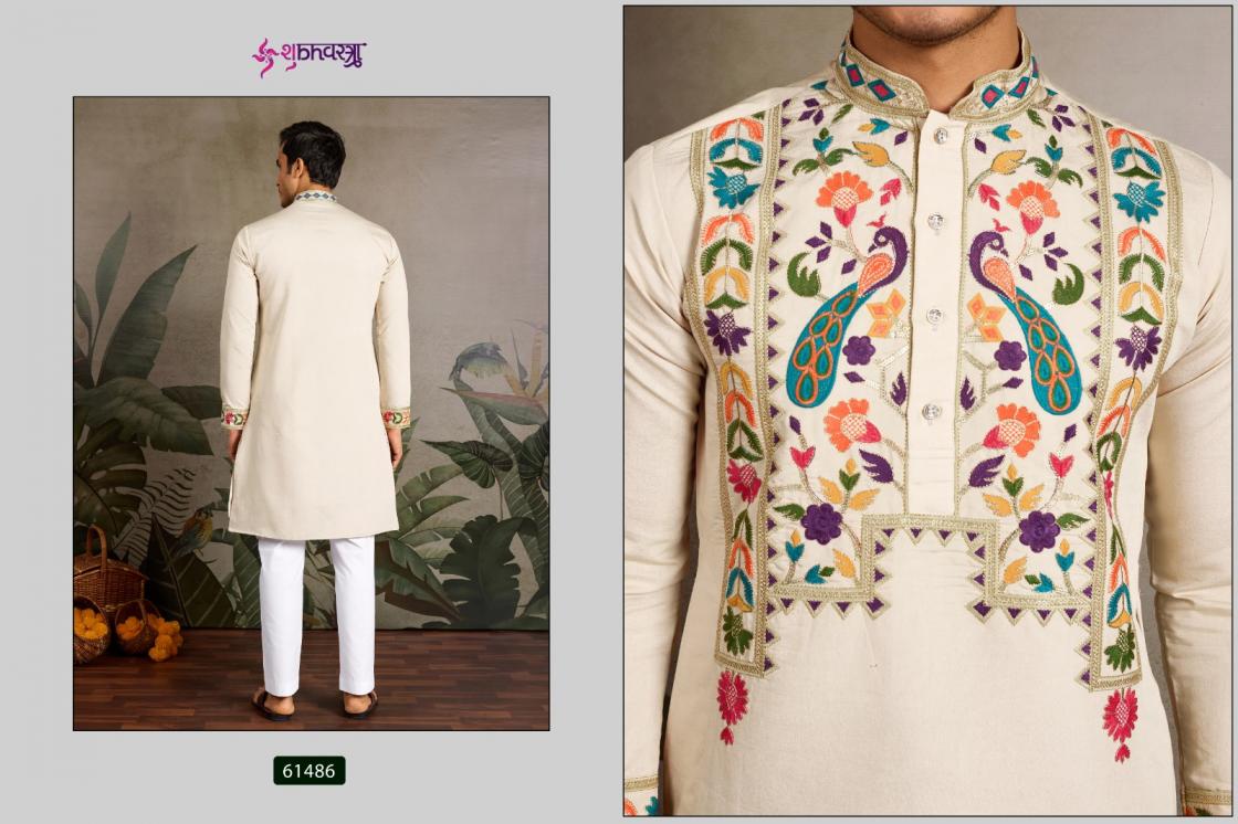 🕺 SHUBHVASTRA - NEW KURTA COLLOCTION 2025 🕺 🤷🏻♂️ New Exclusive Festival Embroidered Mens Wear Kurta Collection 🤷🏻♂️ 💰 RAJWADI RAAS - 2 • RATE LIST (KURTA) 💰 61481: 1150/- SIZE : M, L, XL, XXL PANT (BOTTOM)