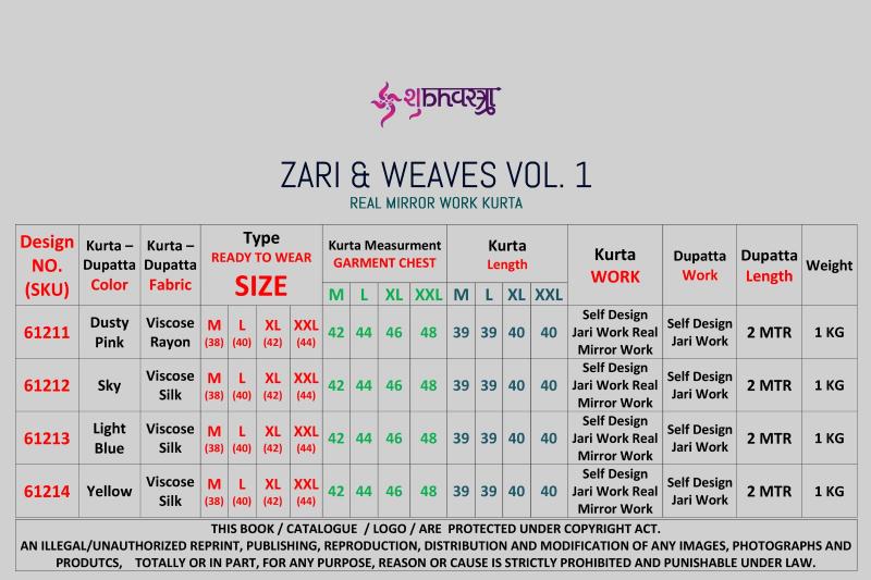 🕺 SHUBHVASTRA - NEW KURTA COLLOCTION 2025 🕺 🤷🏻♂️ New Exclusive Festival Wear Real Mirror Work Kurta with Dupatta- Collection 🤷🏻♂️ 💰 Zari & Weaves Vol. 1 • RATE LIST (KURTA+DUPATTA) 💰 61211: 850/- PANT (BOTTOM) SIZE : M, L, XL, XXL Real Pic Available. ✅ ⚠️ Wash & Care Instructions. ⚠️ |