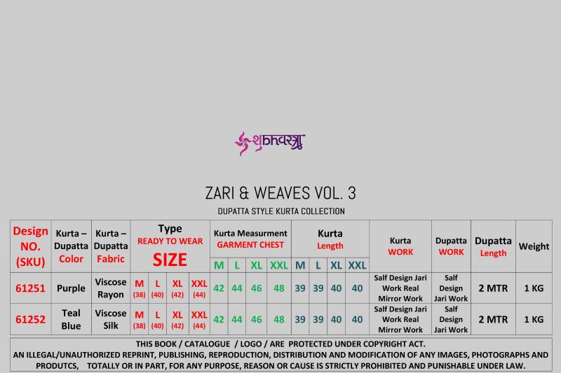 🕺 SHUBHVASTRA - NEW KURTA COLLOCTION 2025 🕺 🤷🏻♂️ New Exclusive Festival Wear Real Mirror Work Kurta with Dupatta- Collection 🤷🏻♂️ 💰 Zari & Weaves Vol. 3 • RATE LIST (KURTA+DUPATTA) 💰 61251: 870/- PANT (BOTTOM) SIZE : M, L, XL, XXL Real Pic Available. ✅ ⚠️ Wash & Care Instructions. ⚠️ |