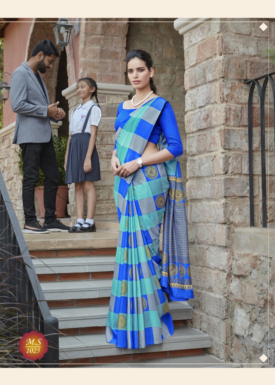 Malbari Silk Rs 299/- Uniform available SIDDHANT WEAVES Uniform Saree for Teachers Uniform Saree for Showroom Uniform Saree for Hotel Uniform Saree for Office Uniform Saree for Hospitals Please Not Set Wise Also Available & Design selection also available Min 10 Pc per Design will come in Selection |