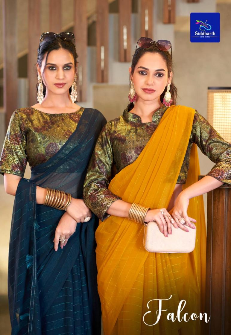 TODAY WE START DESPATCHING A NEW CATLAGE " FALCON " Rate:- 575/- Pc - 06 FABRICS:- Soft Material Siddharth Silk Mills |