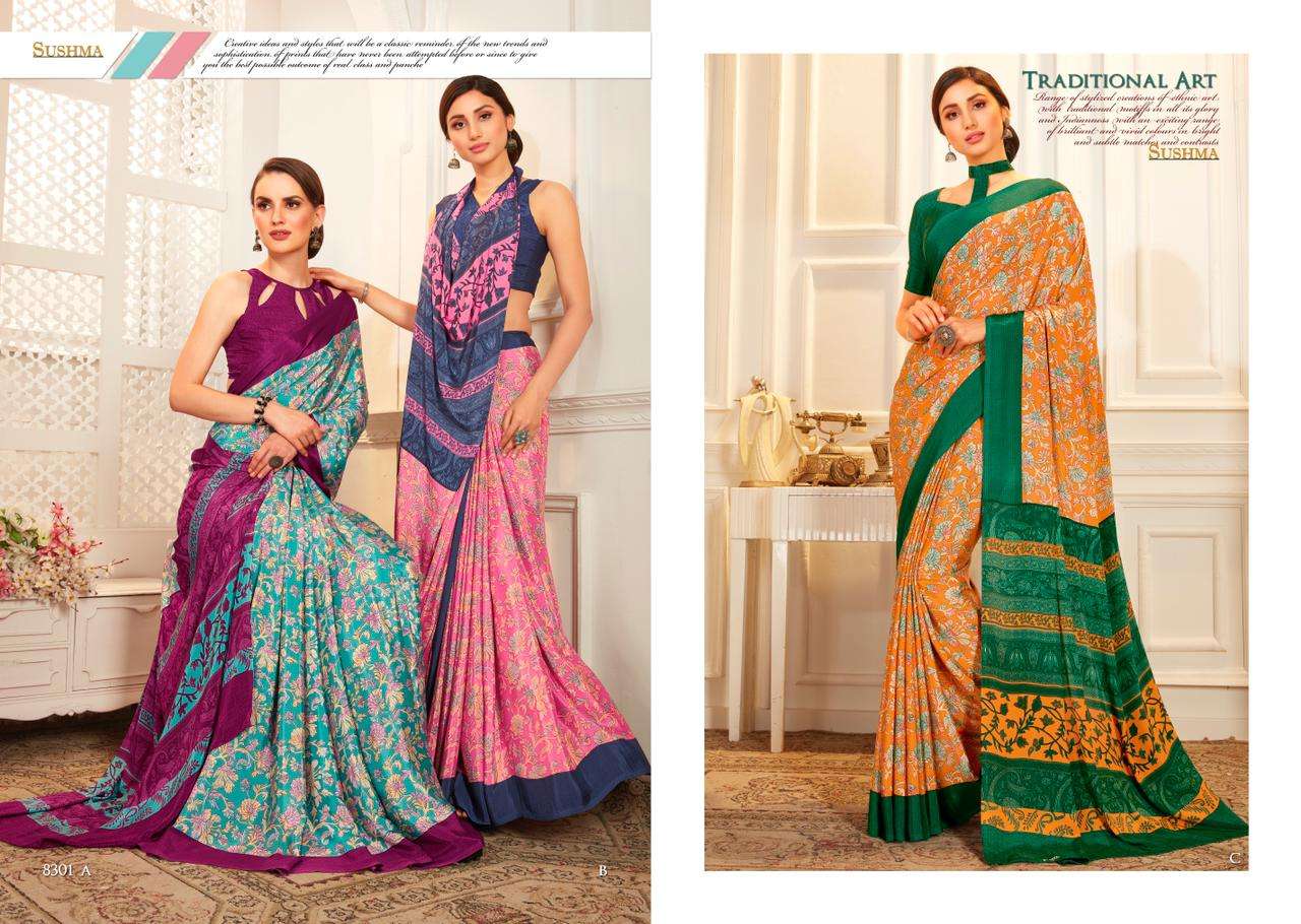 silk ethnic vol 2 by sushma crape printed fancy saree supplier
