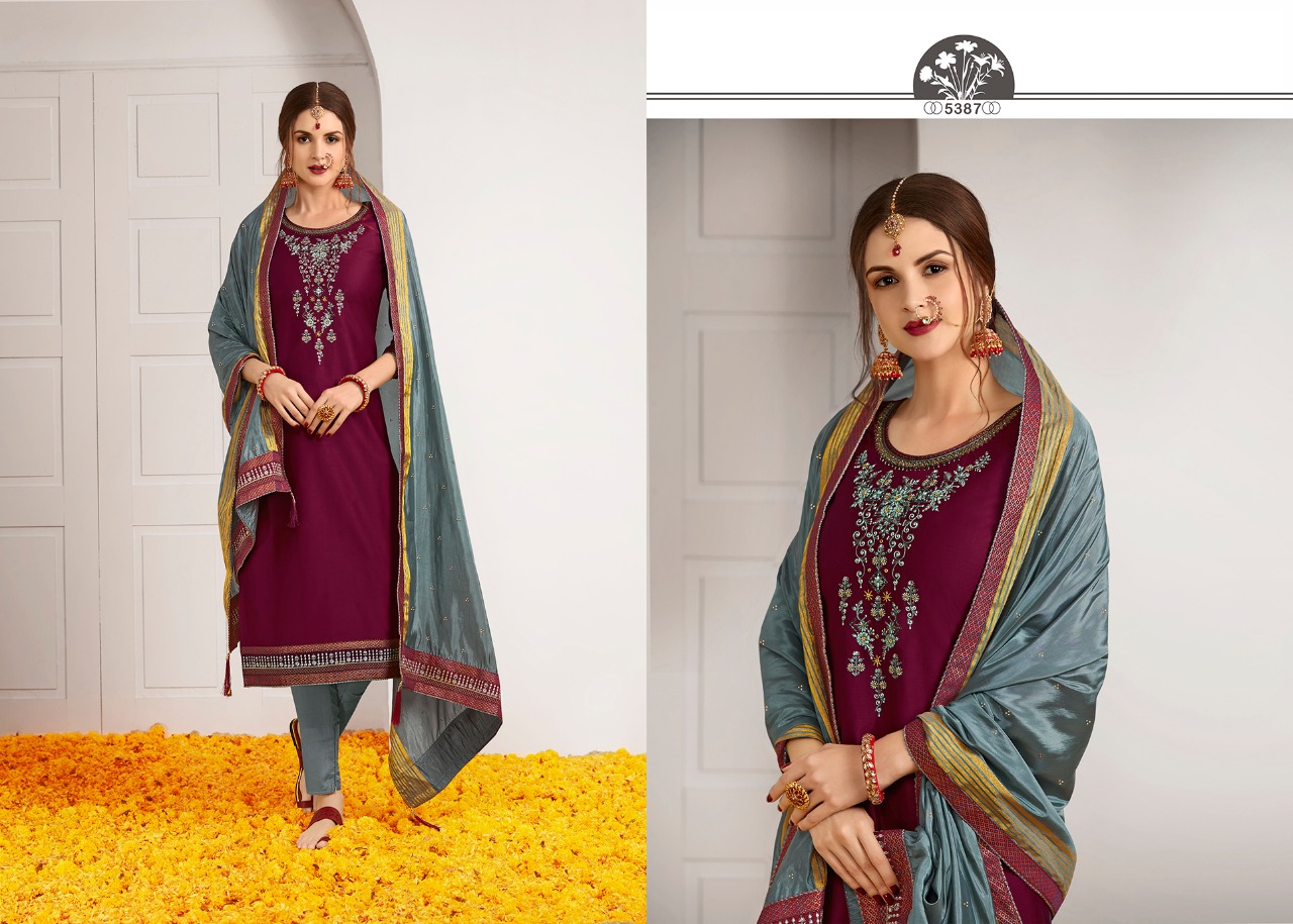 Silk Shine Vol 2 By Kessi Jam Silk Embroidery Dress Materials