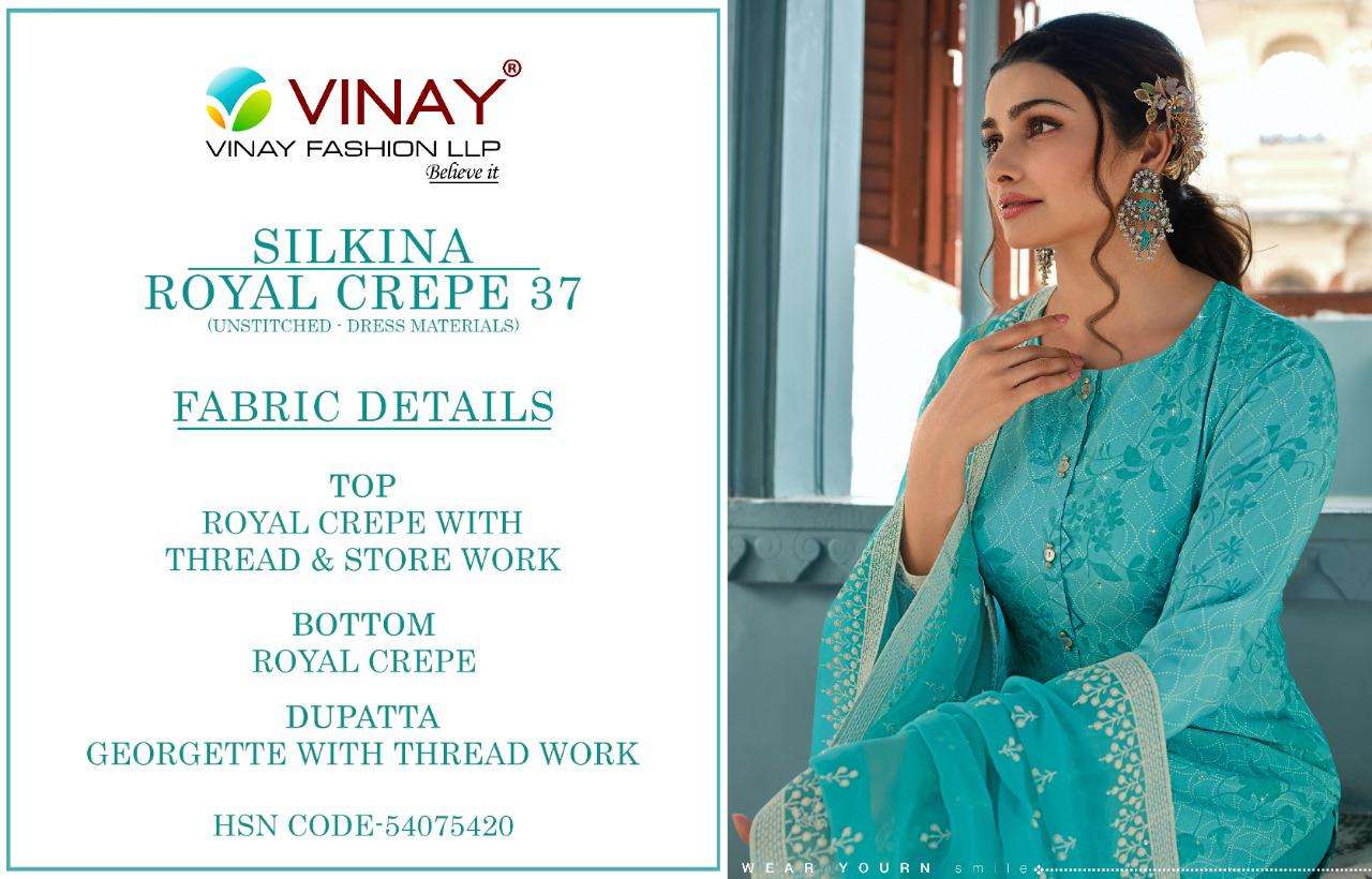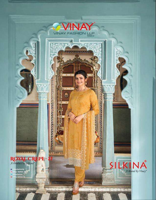 silkina vol 37 by vinay fashion crape designer fancy dresses supplier