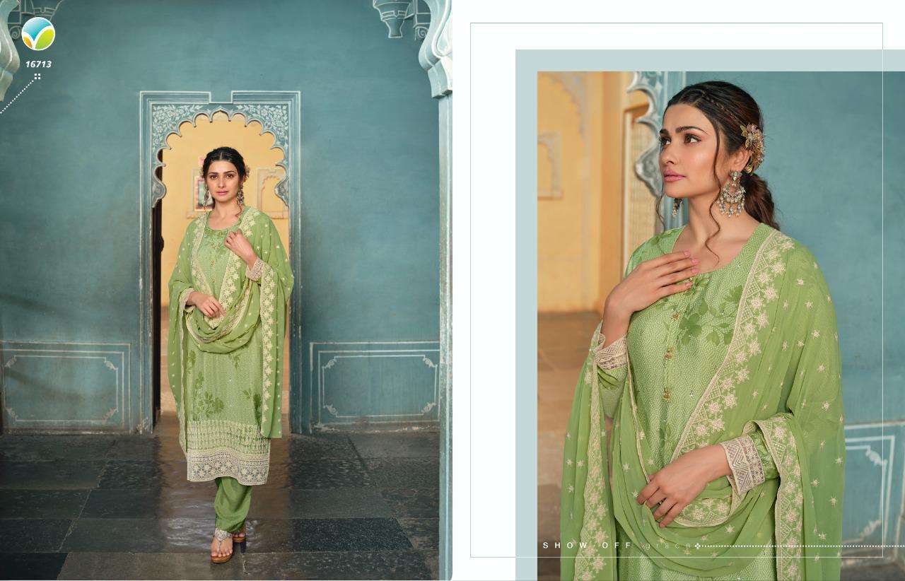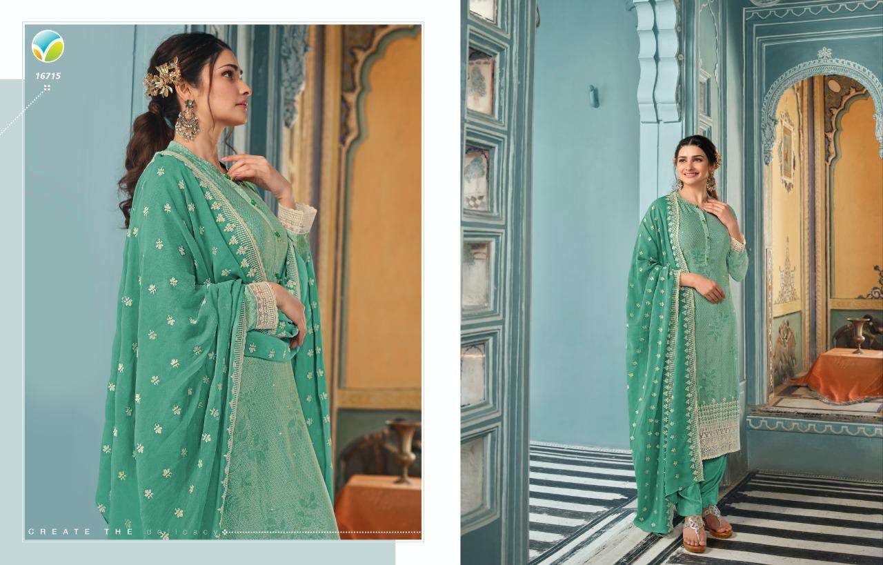 VINAY SILKINA : ROYAL CREPE - 37 ROYAL CREPE FABRIC WITH THREAD & STONE WORK FLAT RATE : 1130/- NOTE :- 5% GST EXTRA |