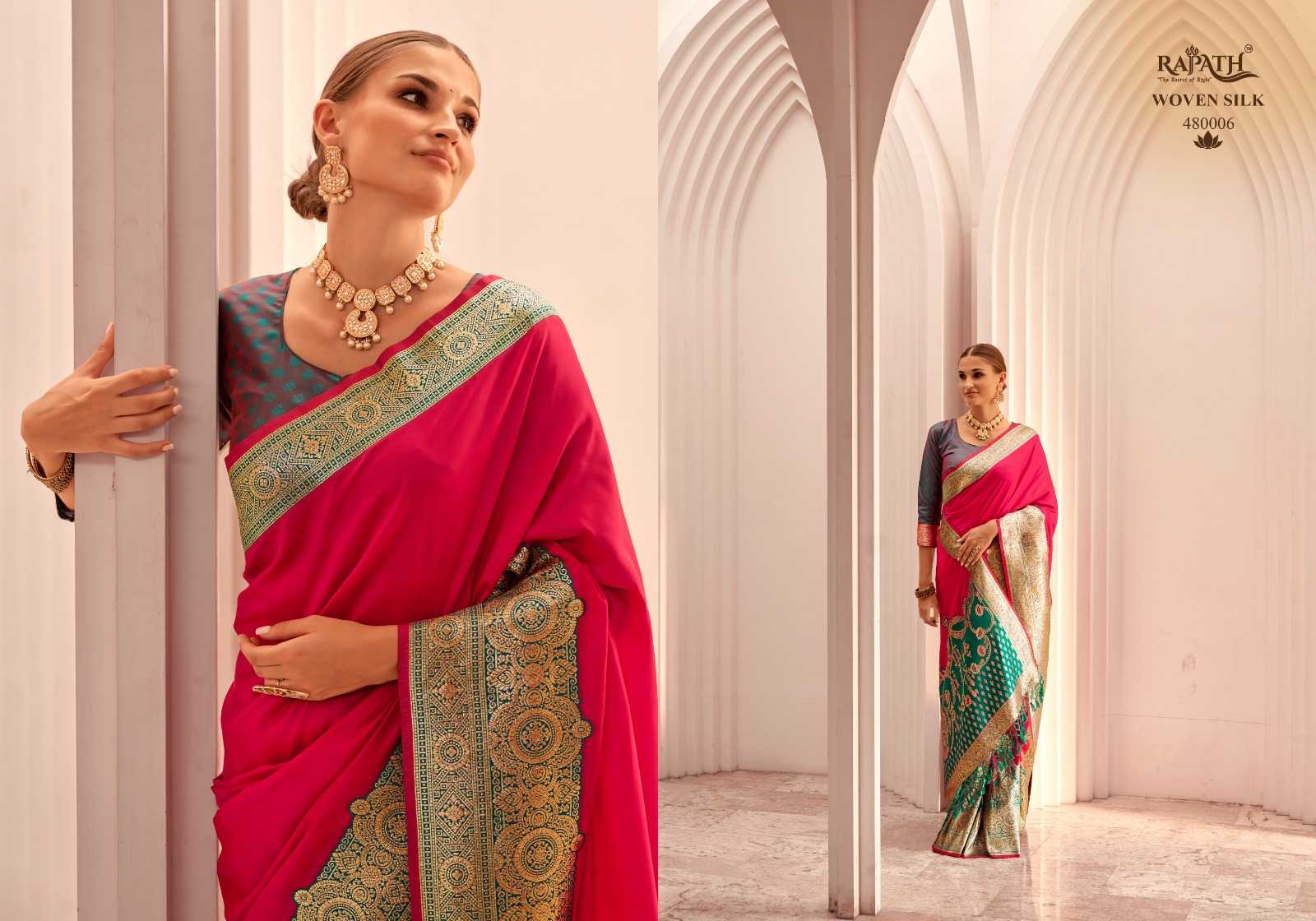 Soft Silk Weaving Saree Luxurious Fabric With Beautiful Border And Elegant Drape Perfect For Any Occasion, This Saree Is A Statement Piece. Brand : Rajpath Catalog Name : Silky Silk Series: 480001 To 480006 Saree Fabric : Soft Silk With Beautiful Contrast Big Border Weaving Blouse Fabric : Soft Silk Occasion : Party Wear, Festival Wear, |
