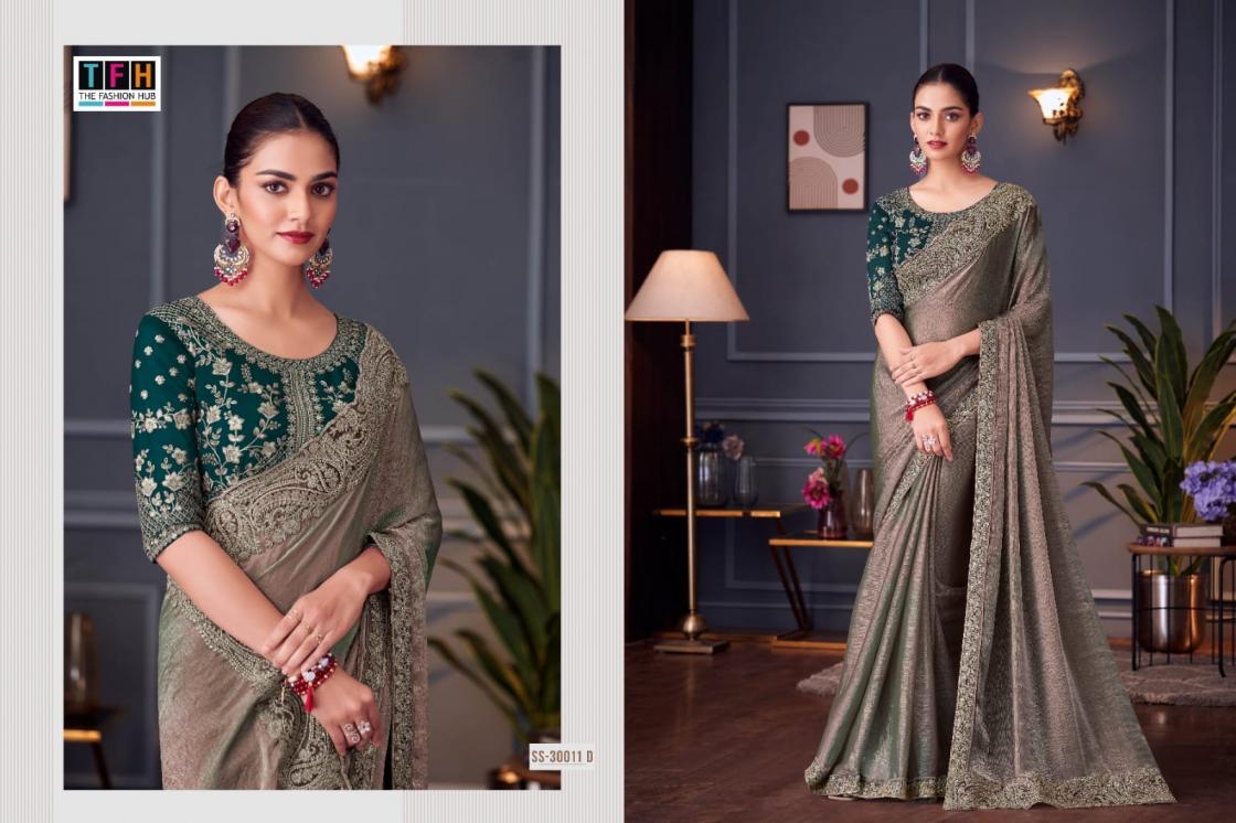 Brand :Tfh Catalog name : Silver Screen 20 (30000)Hit Series Series :30011 Colours Saree fabric : Attached with list Blouse : Attached with list Price list: Attached with list