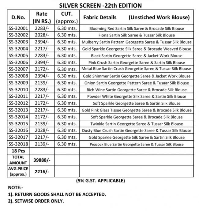 silver screen vol 22 by tfh sartin georgette traditional sarees online