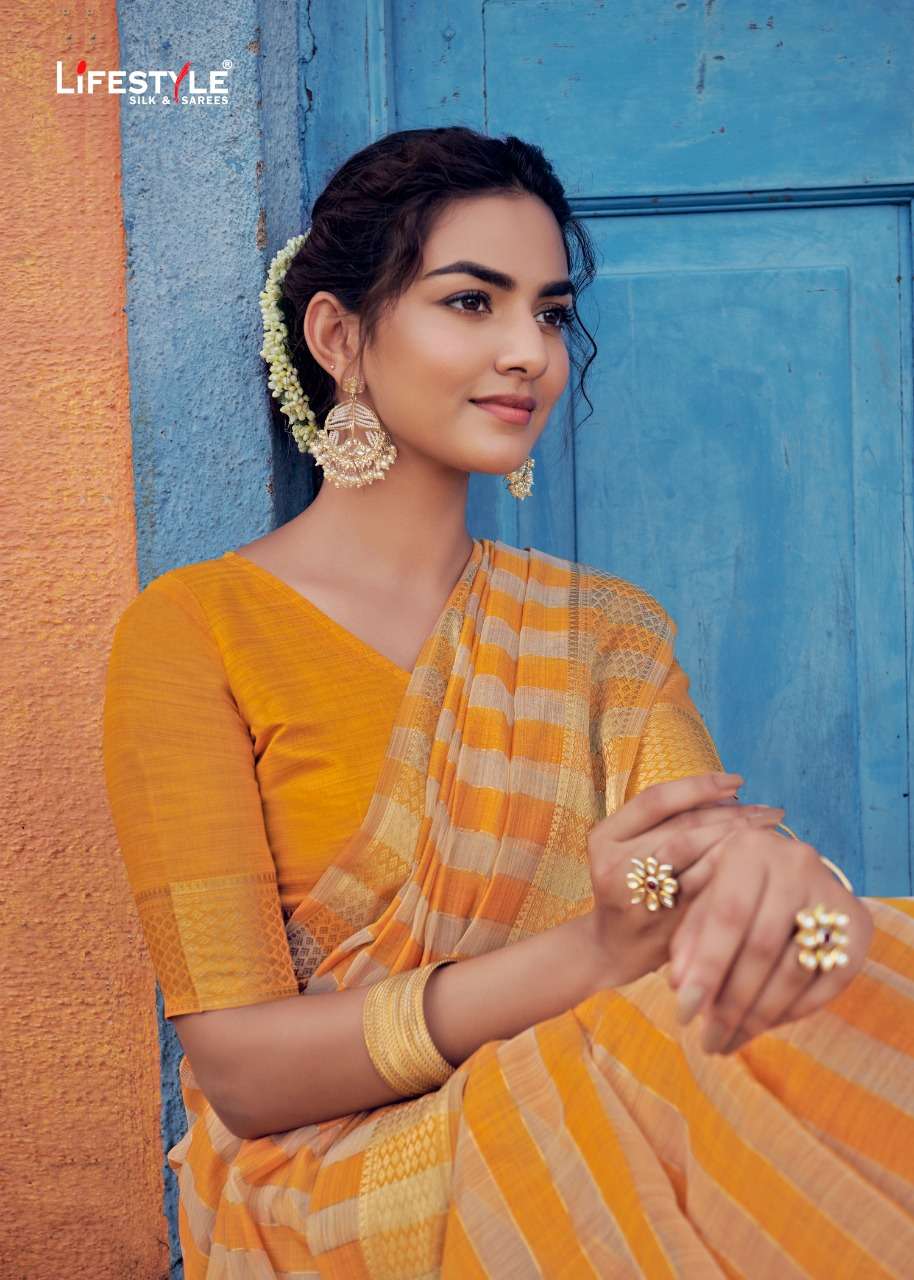 Lifestyle Saree Presents Latest Collection Launched on 01-01-2022. Presenting Beautiful collection of 6 PCS with Unstitched .