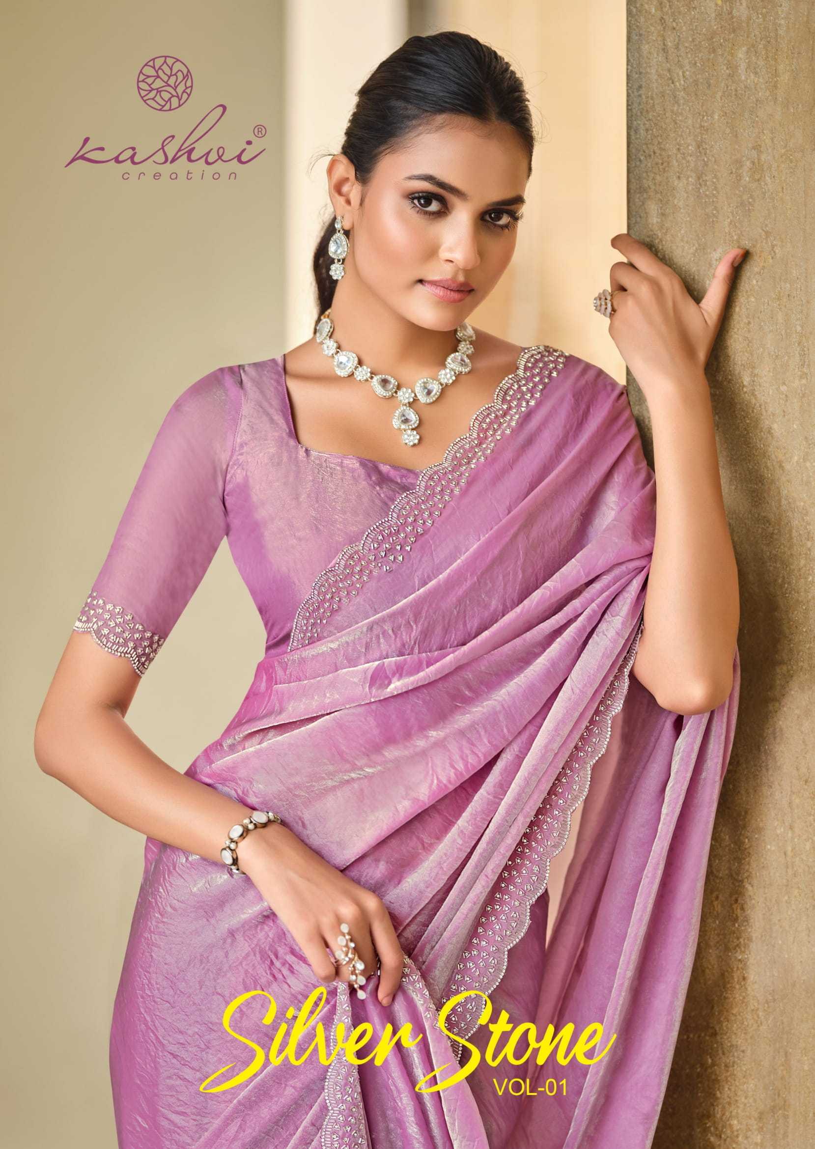 silver stone vol 1 by kashvi creation malai silk hit design saree