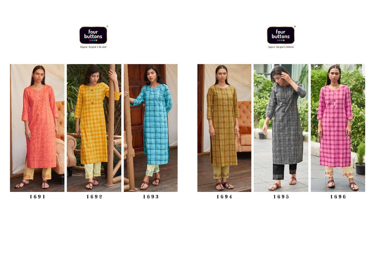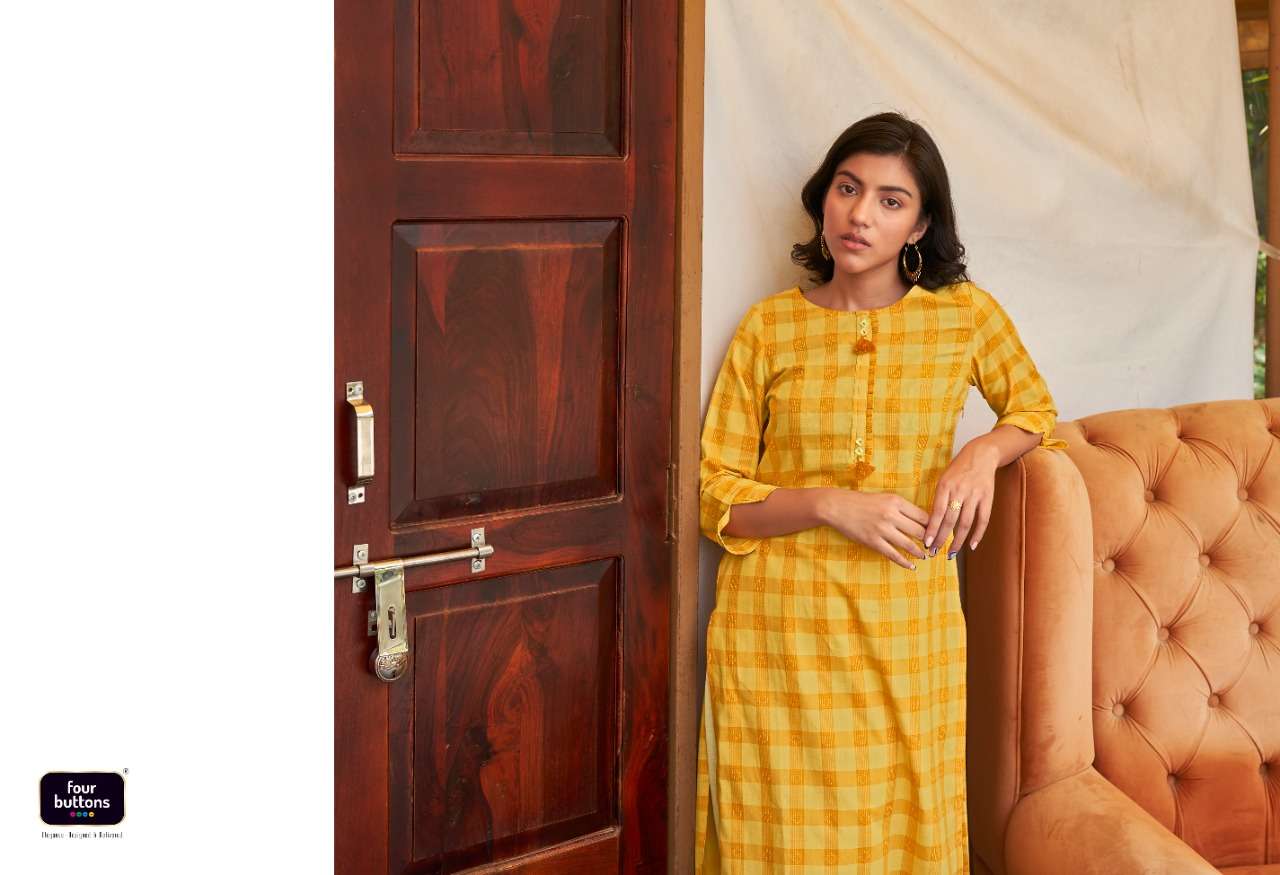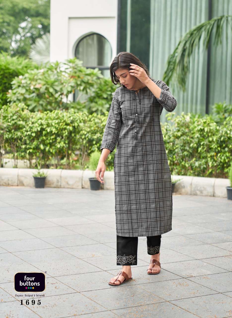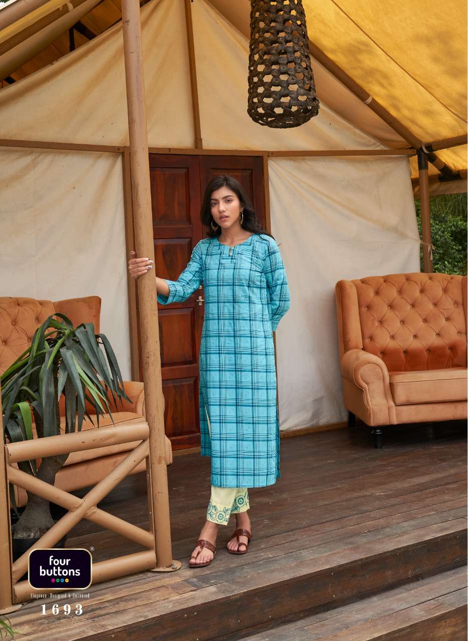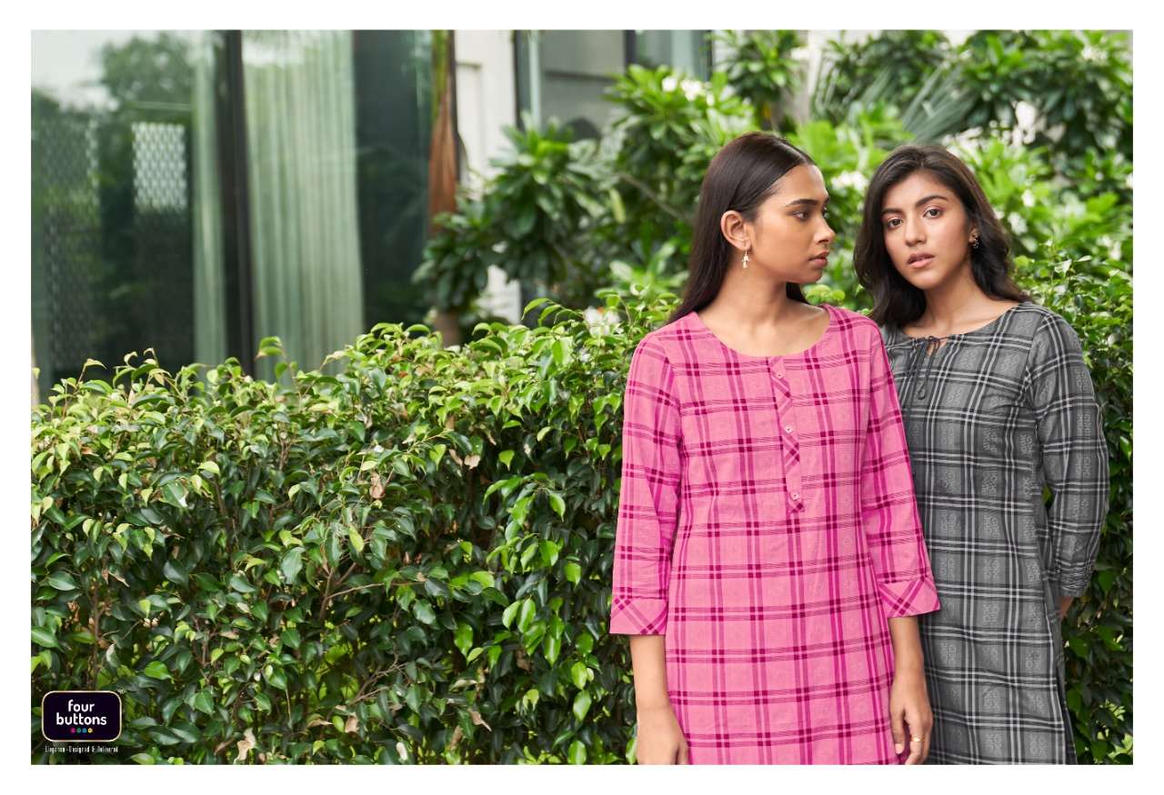 FOUR BUTTONS proudly launches its NEW collection 2022 "SILVER 8" FABRIC KURTI - PURE COTTON WOVEN CHECKS BOTTOM - HEAVY EMBROIDERY ON COTTON SLUB