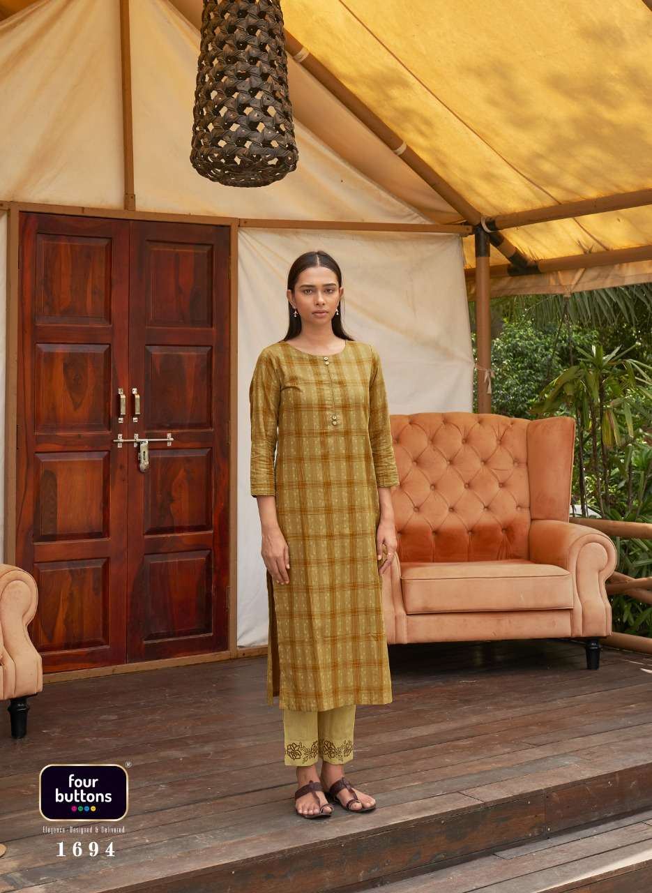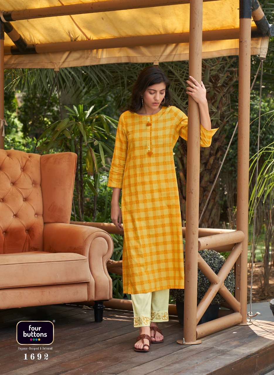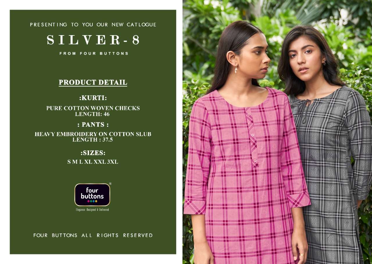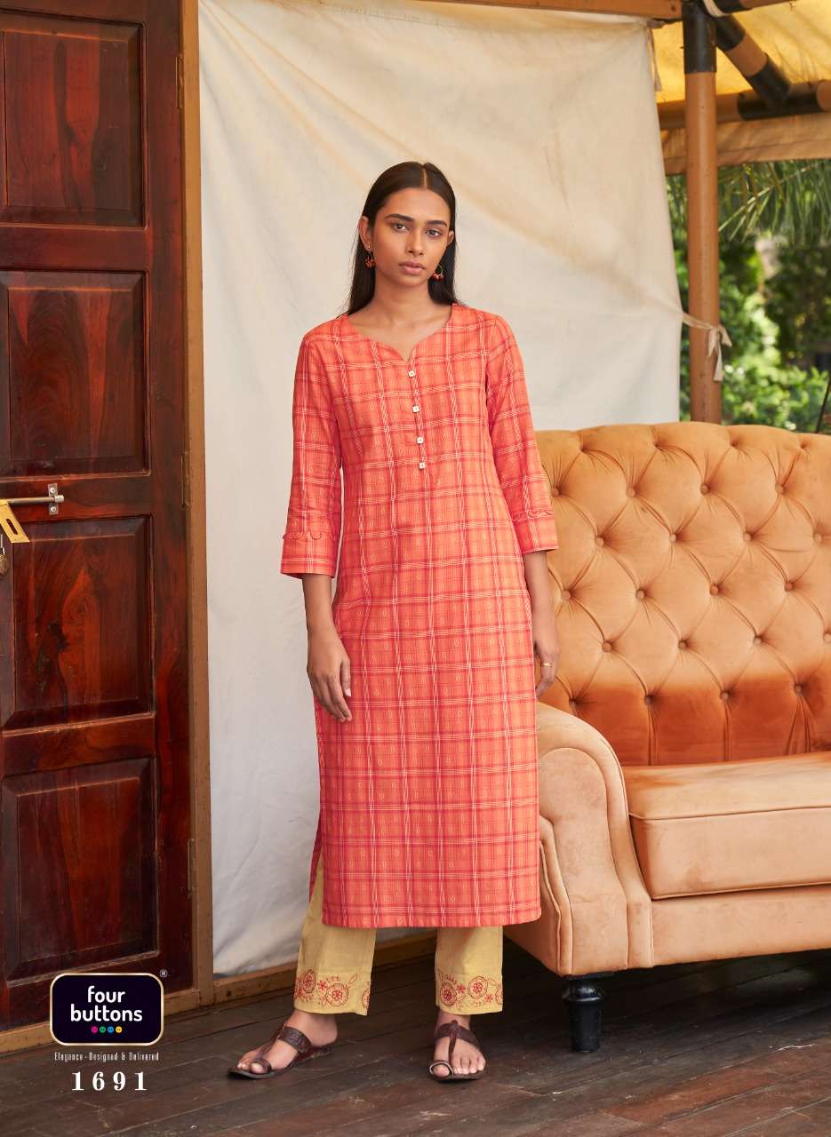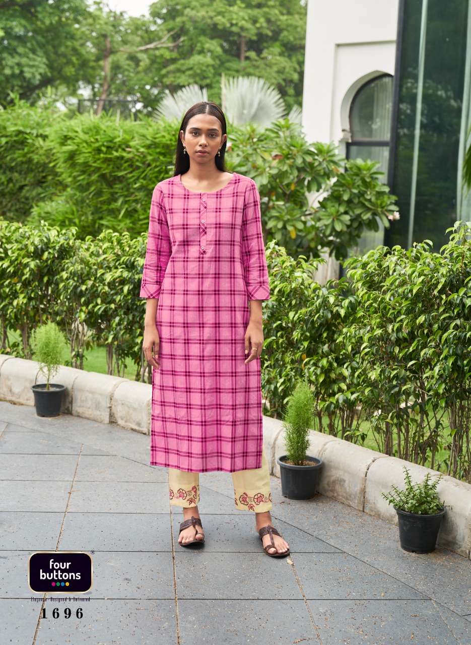 FOUR BUTTONS proudly launches its NEW collection 2022 "SILVER 8" FABRIC KURTI - PURE COTTON WOVEN CHECKS BOTTOM - HEAVY EMBROIDERY ON COTTON SLUB