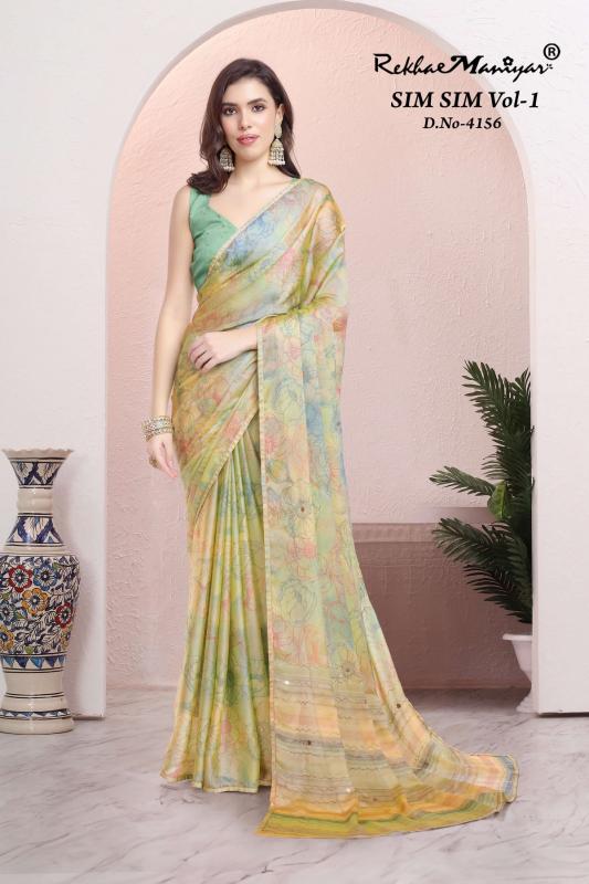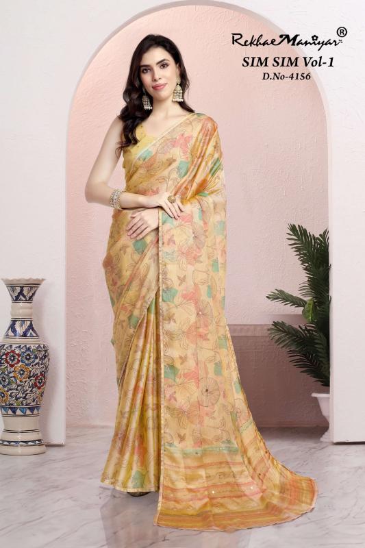 sim sim vol 1 by rekha maniyar 4156 series silk chiffon elegant style saree