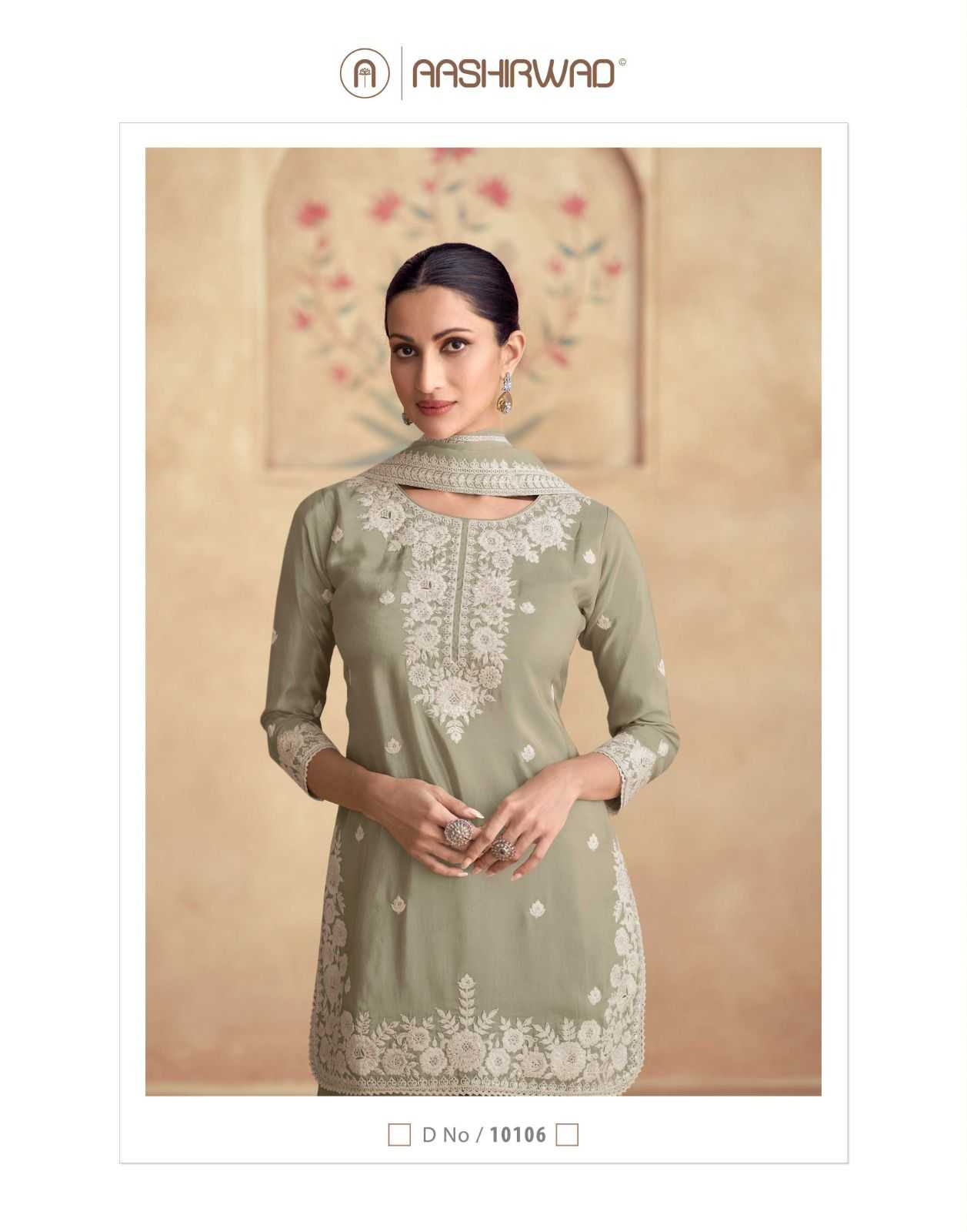 AASHIRWAD CREATION PRESENT NEW FREE SIZE STITCHED CATLOG ➡️SIMAR ⬅️ TOP-SIMAR SILK. (Free size stitch ) RATE -2495 per pcs NOTE : M TO XXL ON BOOKING RATE 2695/- |