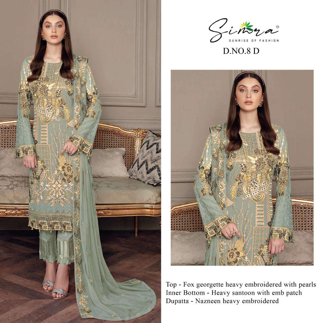 simra present d no 8 georgette pakistani designer fancy suits