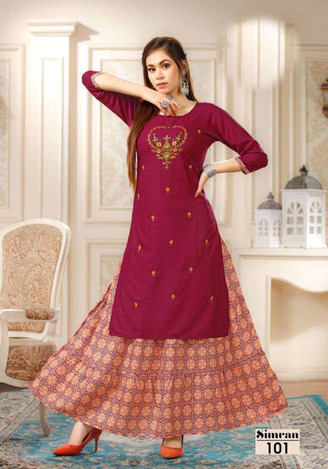 SIMRAN BY BEAUTY QUEEN HEAVY RAYON TOP WORK SKIRT PRINT CATALOG WHOLESALER BEST RATE