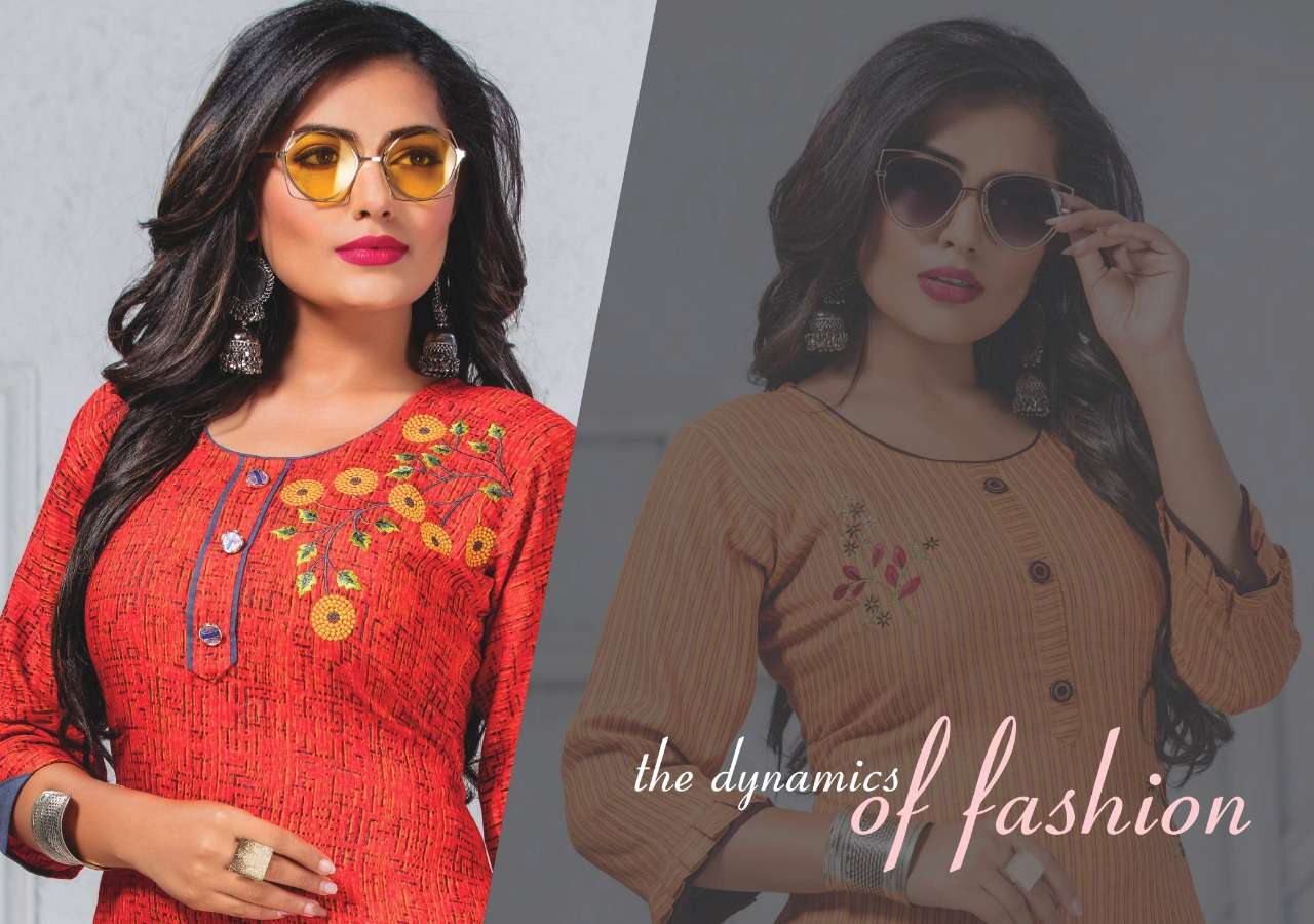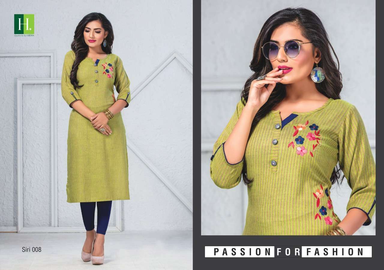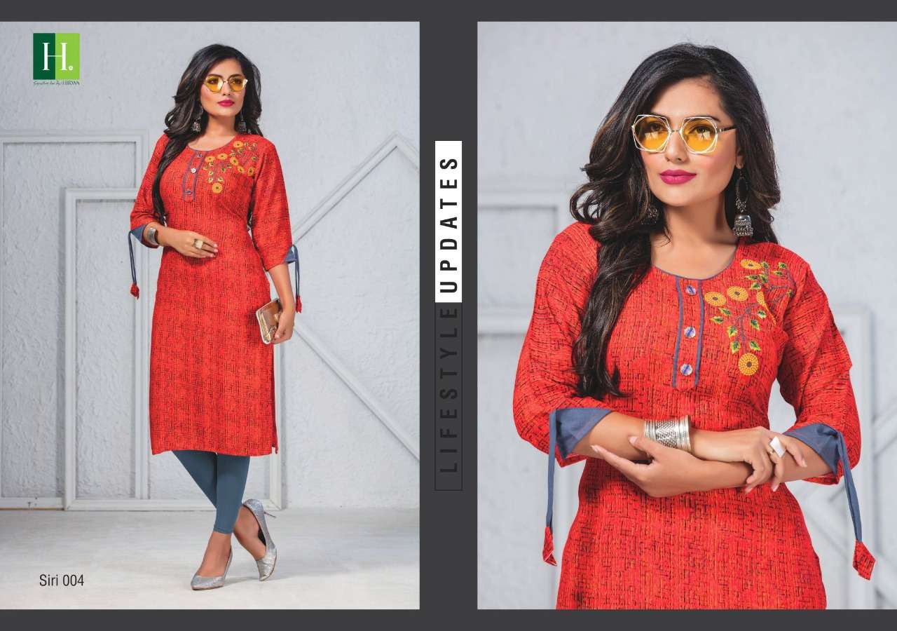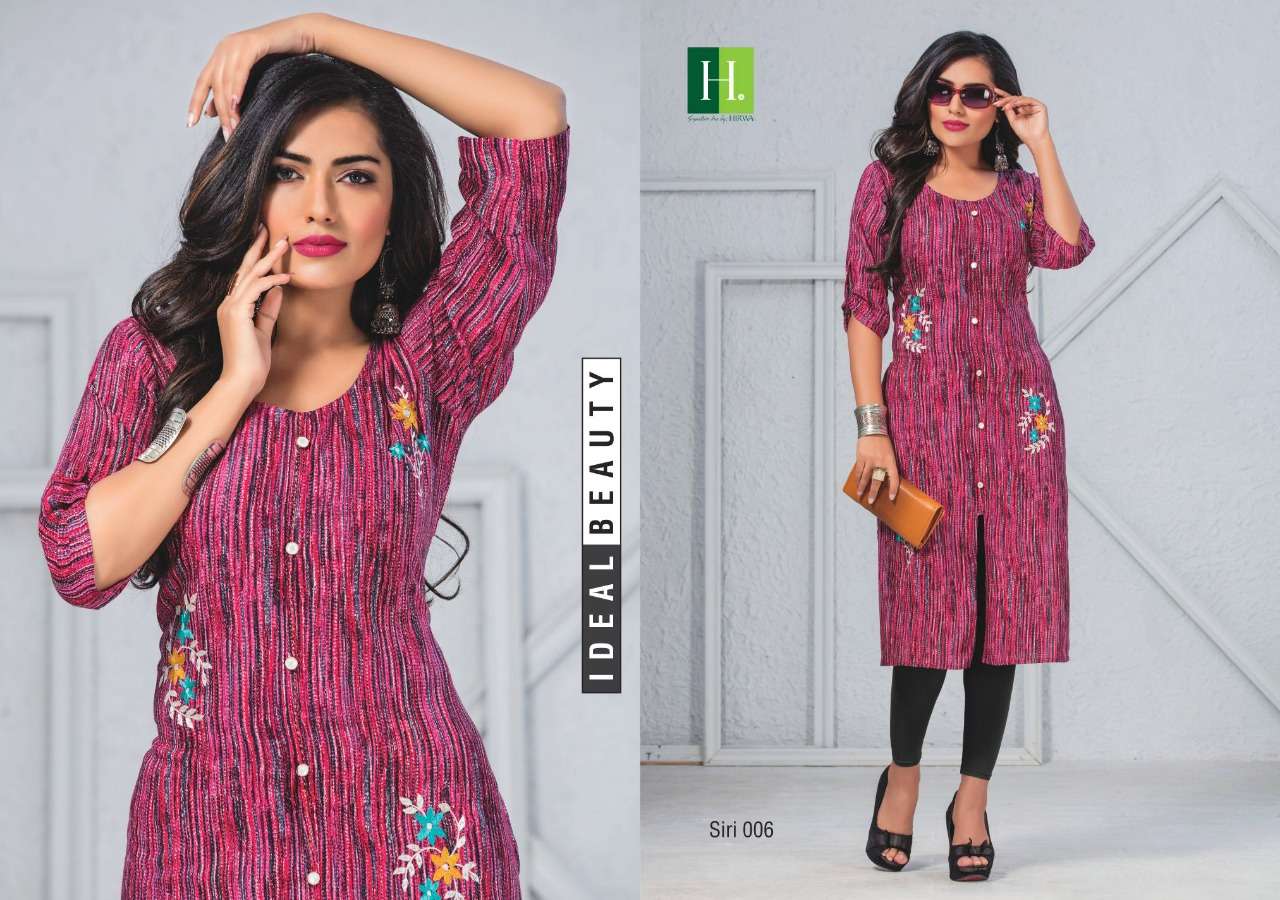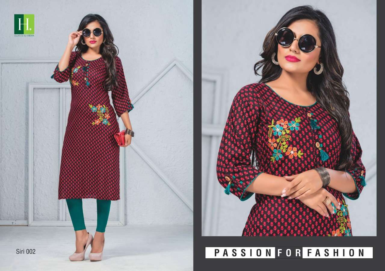 HIRWA presents Siri 14kg Pure Rayon  Prints With Embroidery 45" Length. 8 pieces only Rate: 490/- Sizes: M, L, XL, XXL, 3XL |