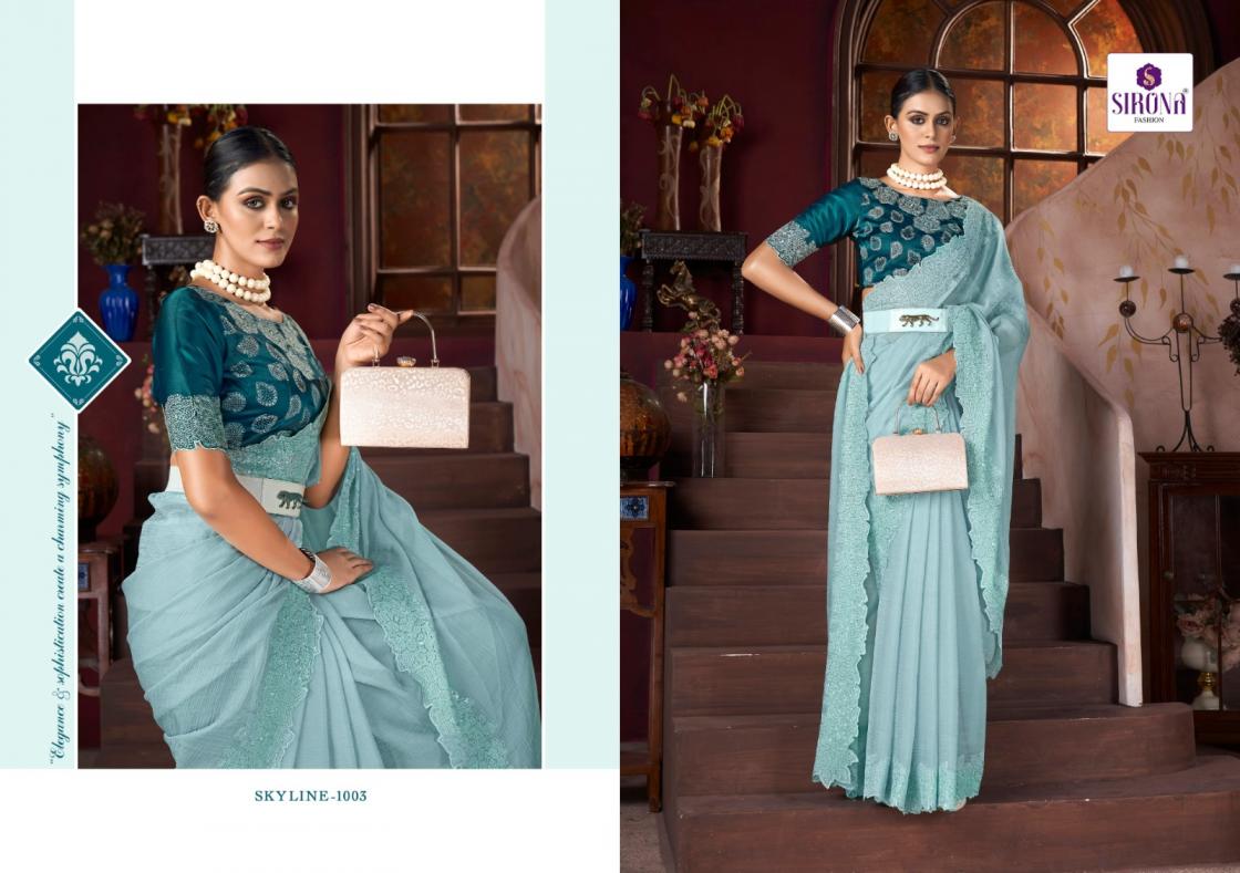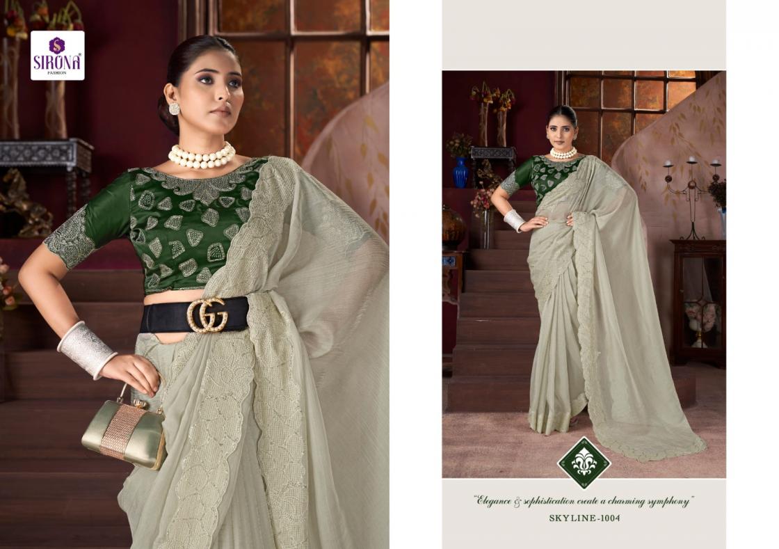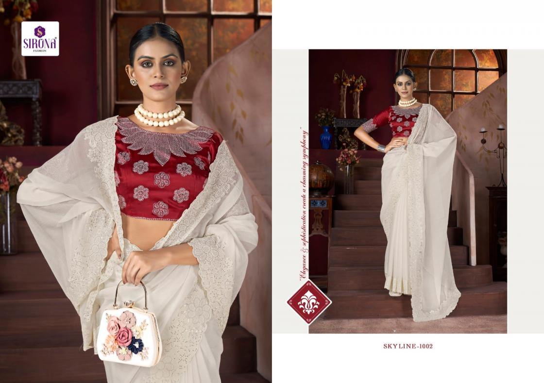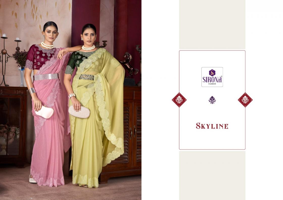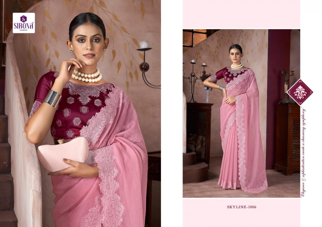 sirona fashion skyline luxurious cristal chiffon sarees for women
