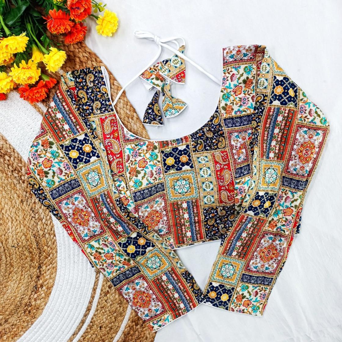 ➡️ SUPER SPECIAL MULTY COLOUR DISCHARGE PRINT WITH DIMOND (SIROSKY) WORK PATTERN LONG SLEEVES FANCY BLOUSE ➡️Design- SIROSKY L.S. ➡️Fabric- Heavy Rayon Cotton ➡️Inner- Cotton ➡️Work- Multy Discharge Print With Full Dimond (Sirosky) Work ➡️Pattern- ROUND NEACK ➡️Quality- A1 ➡️Padded- Yes ➡️Size- 38 Ready ➡️Length- 15 Inch ➡️Open Type- Back Hook ➡️Sleev- Full Long Hand 22 Inches Sleeves Atteched ➡️Colour:- (4 Colours Available) 🖤💛🧡❤️🩷️💙💜🤍🤎 ➡️Price- 360/- ➡️SHIPPING EXTRA ➡️ BOOK FAST READY STOCK |