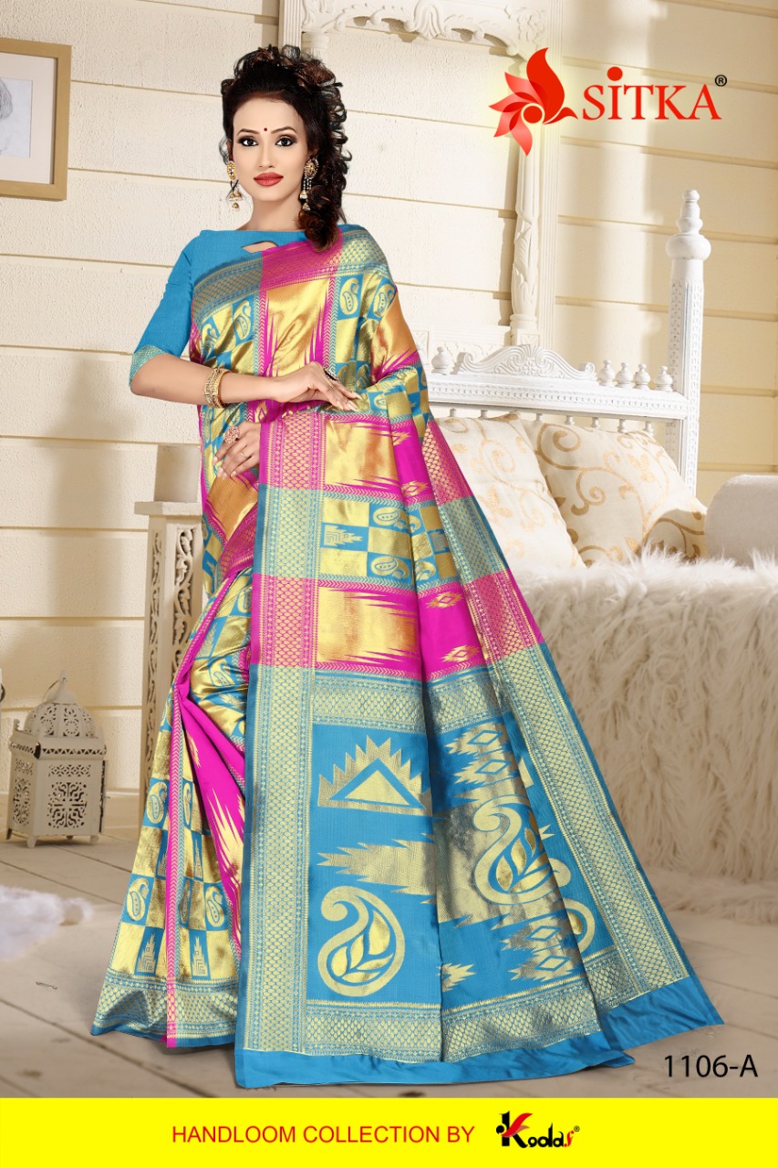 SITKA Brand Launched New Saree catalog Catalog Name : NATURAL SILK-1106 Fabric : HANDLOOM COTTON SILK BEAUTIFUL COLOR RICH PALLU SAREE MOQ - 5 Box Rate : 485/- +5 % GST Without Box Rate : 465/- + 5% GST Length : 6.3 mtr Only full set |
