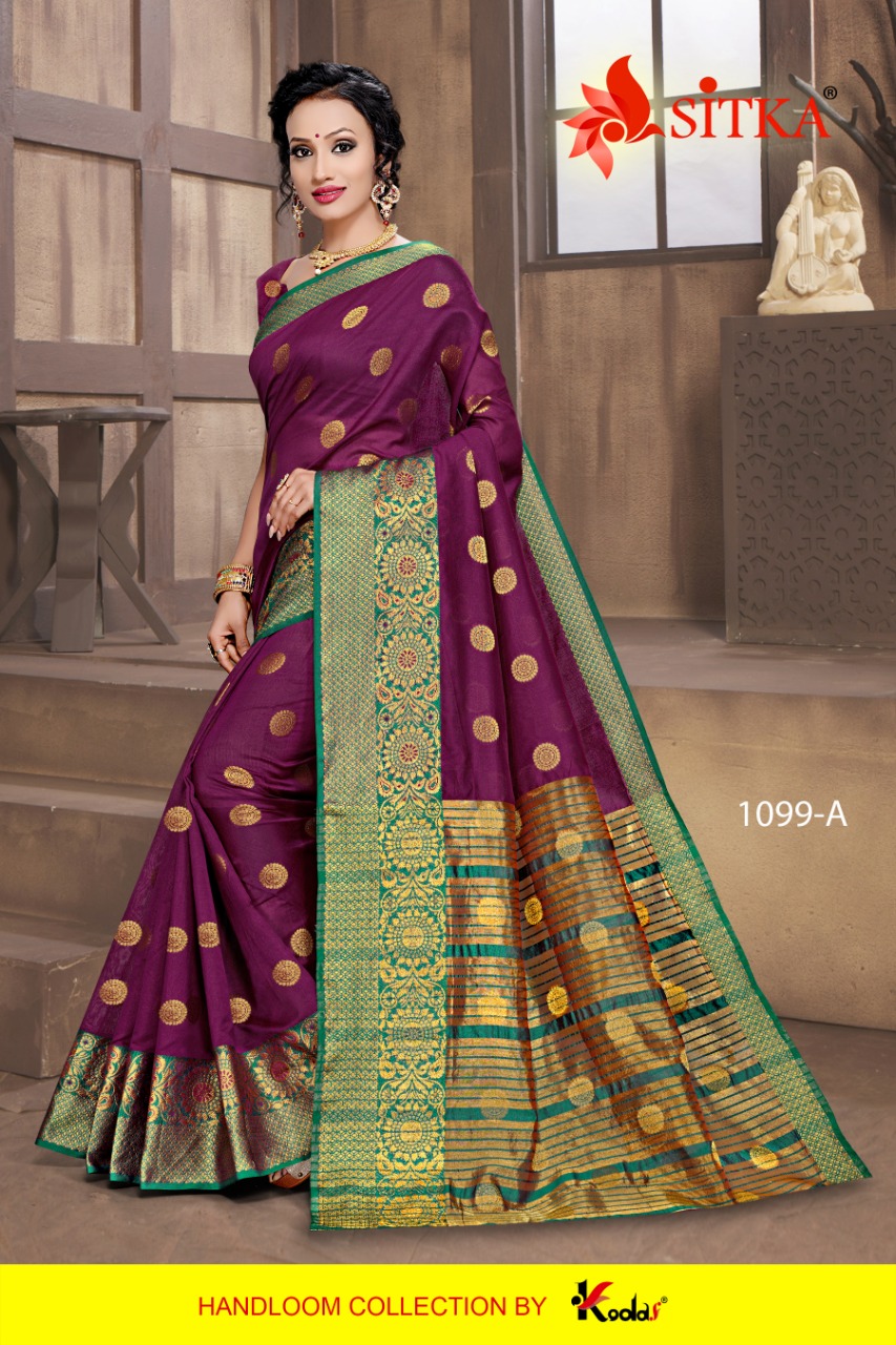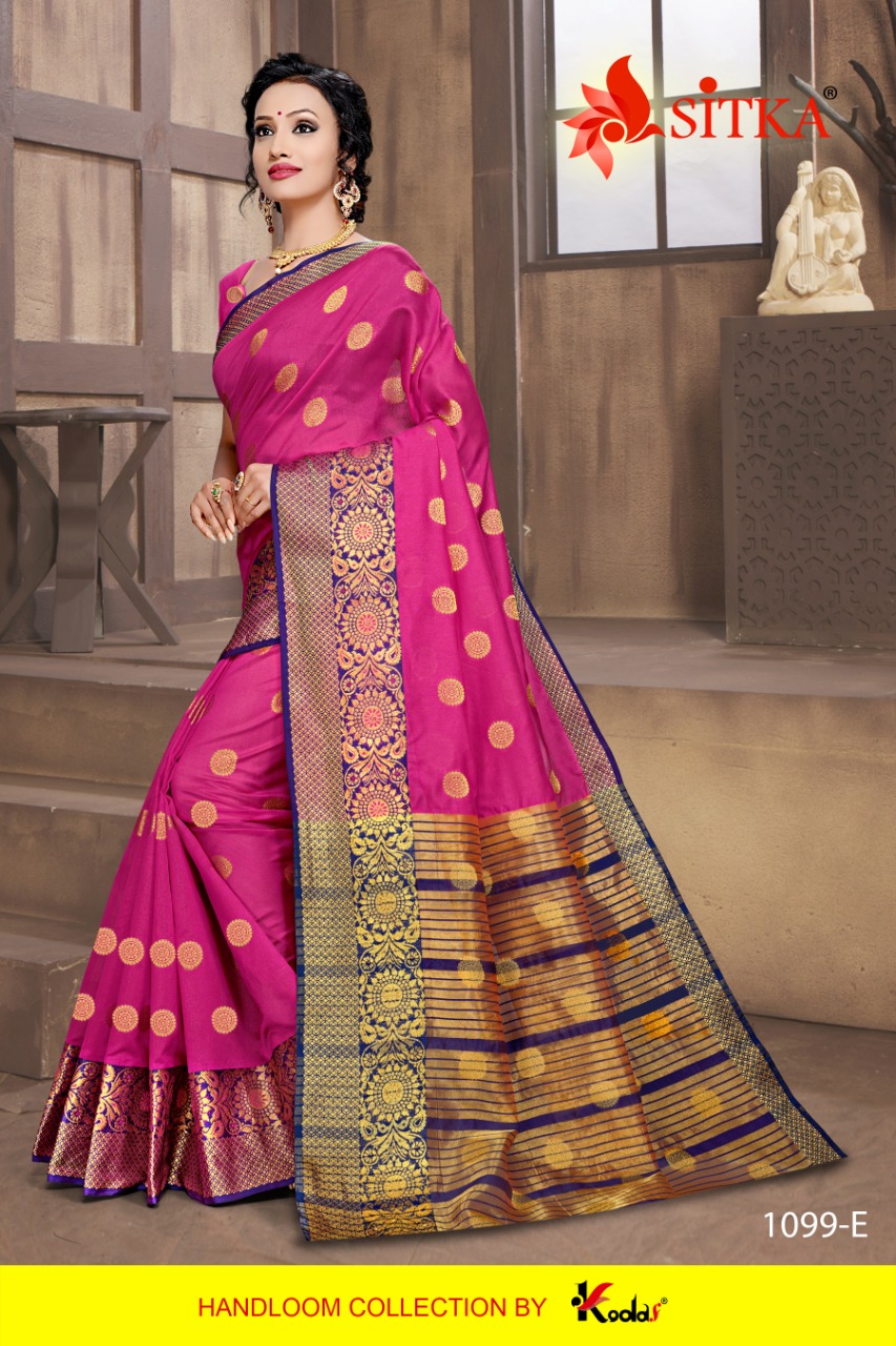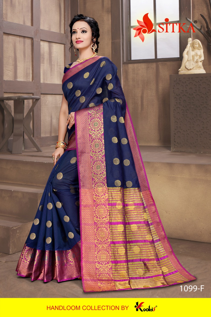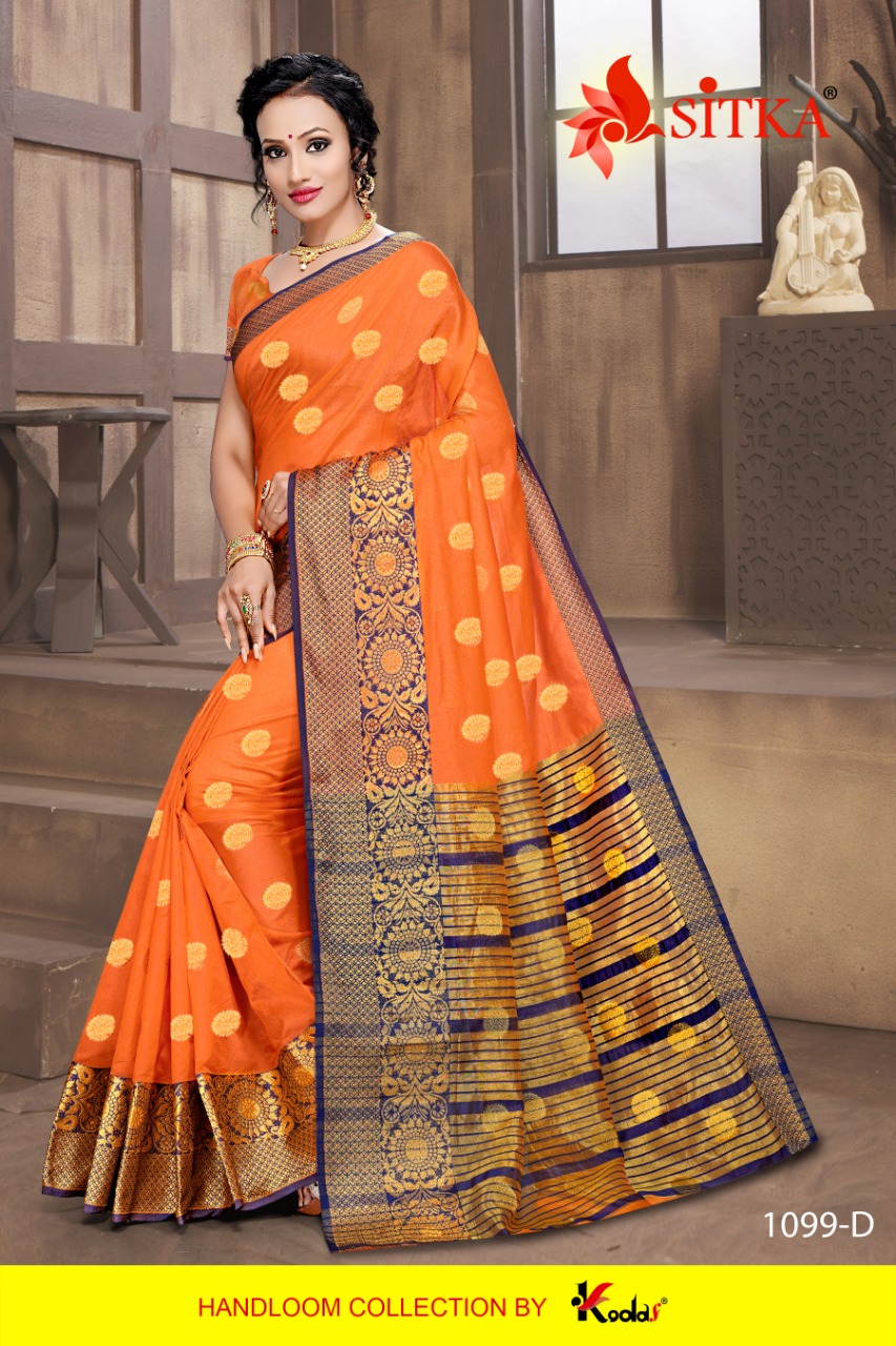 SITKA Brand Launched New Saree catalog Catalog Name : RATNAGIRI - 1099 Fabric : HANDLOOM COTTON SILK DESIGNER SAREE MOQ - 6 NO BOX AVAILABLE Without Box Rate : 345/- + 5% GST Length : 6.3 mtr Only full set |