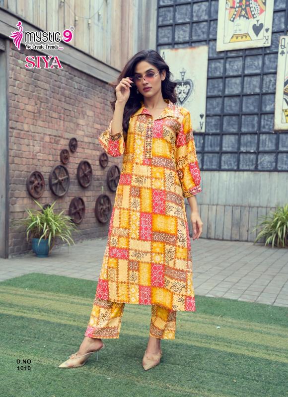 siya vol 1 by mystic9 roman silk readymade fashionable kurti with pant