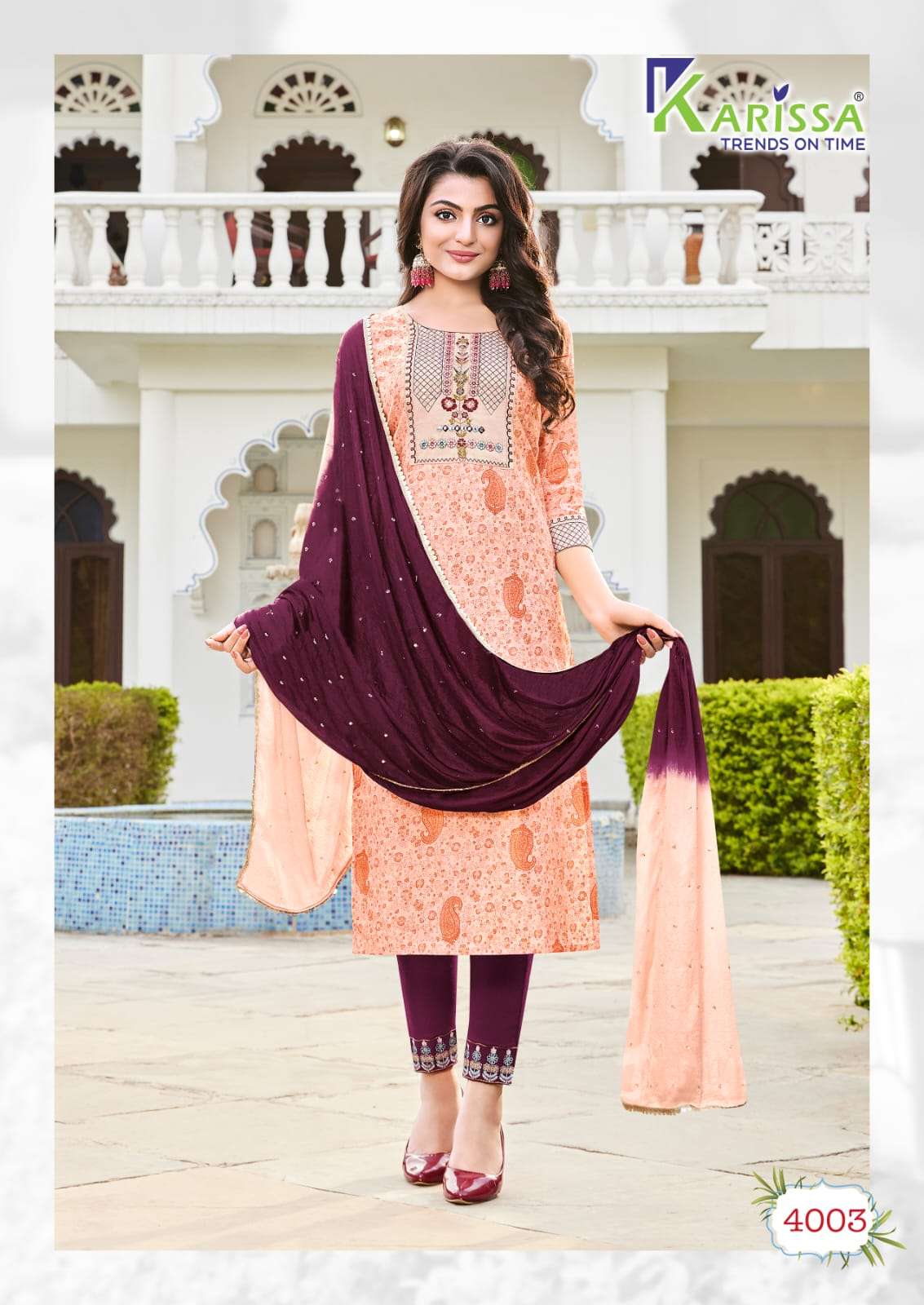 Karissa Presents Latest Collection Launched on 18-05-2024. Presenting Beautiful collection of 4 PCS with Full Stitched S,M,L,XL,XXL .