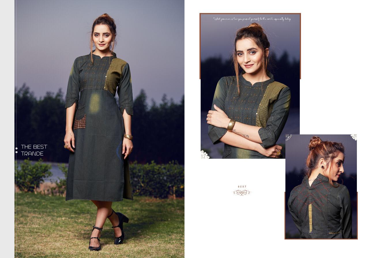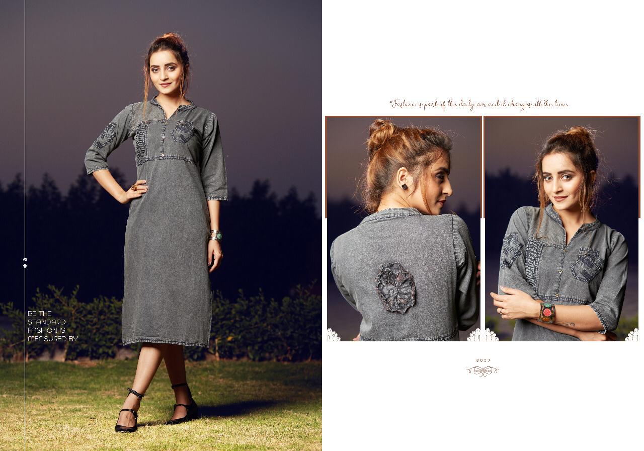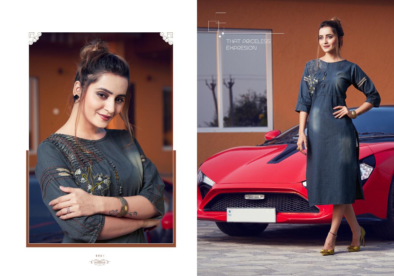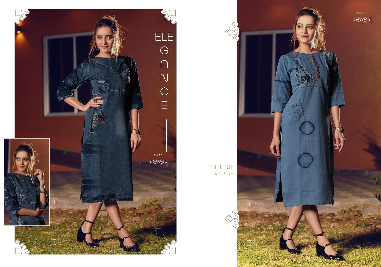 Cataloge Name : *RAGNI VOL -2 Fabric: Denim pure cotton BRAND : SIYAJI Size: M / L / XL / XXL 38. 40. 42. 44 Type: Stitched Length: Up To 45 Description: only catalogue Work: Embrodery Designs: 8 Price : 555+Gst/- per pis With : Beg |