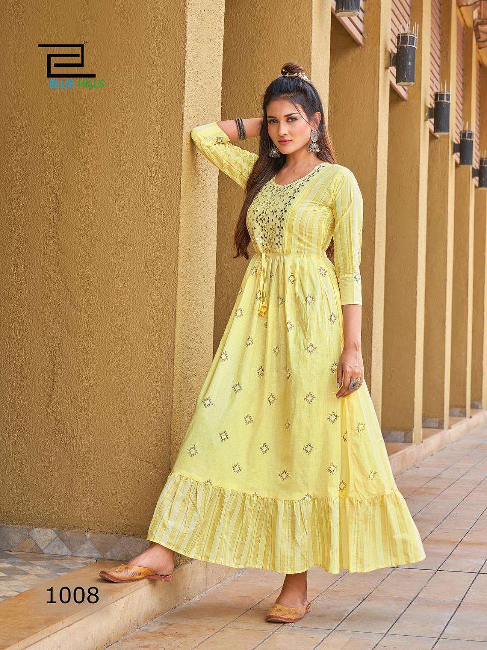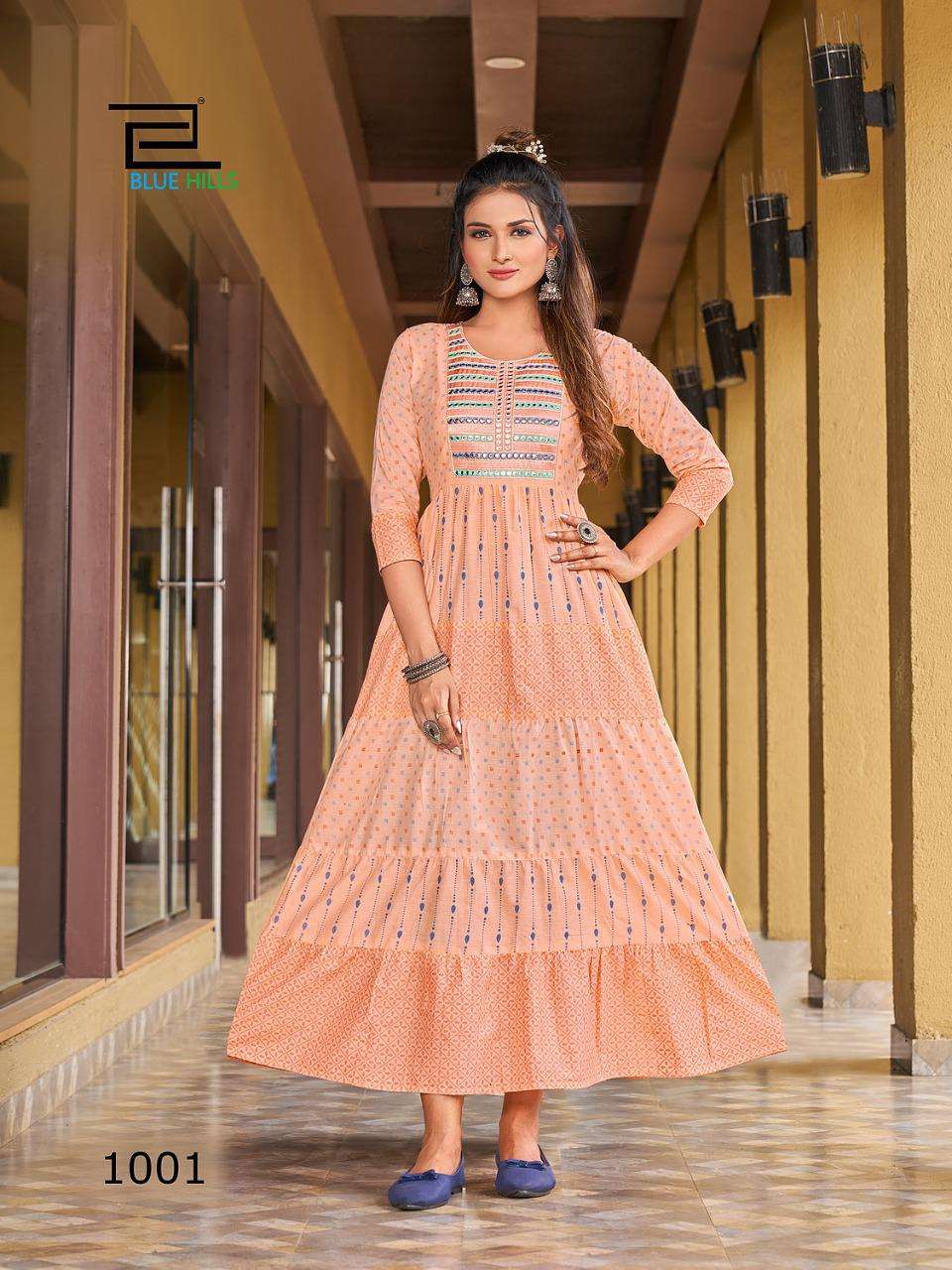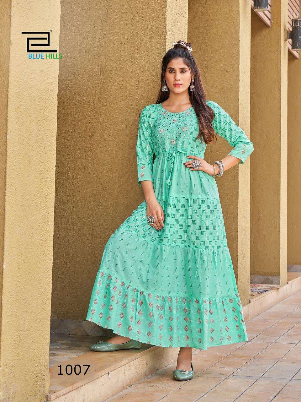 #BLUE HILLS Fabric - heavy Cotton camric Concept - Long frill Gown with Stylish Emboridary work Length- 50+ Size - M (38) L (40) XL (42) XXL (42) XXL (44) 3XL (46) 4XL (48) 5XL (50) Rate - 675+GST 8 beautiful colors BOOKINGS OPEN Dispatch - 2 to 3 day |