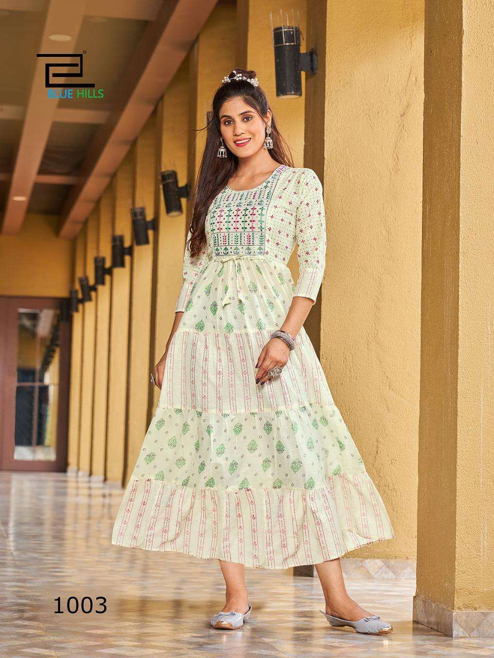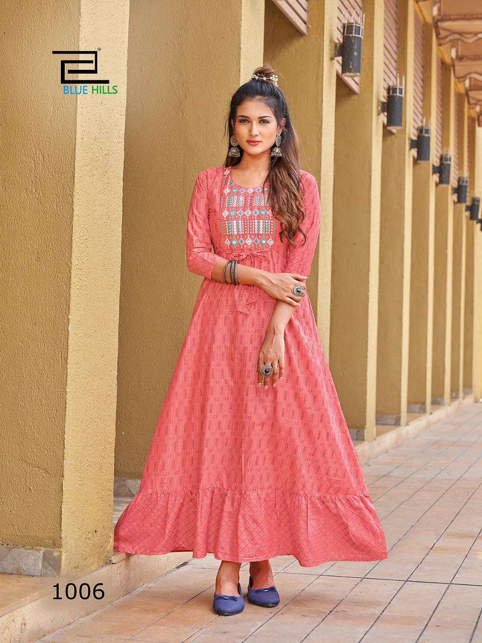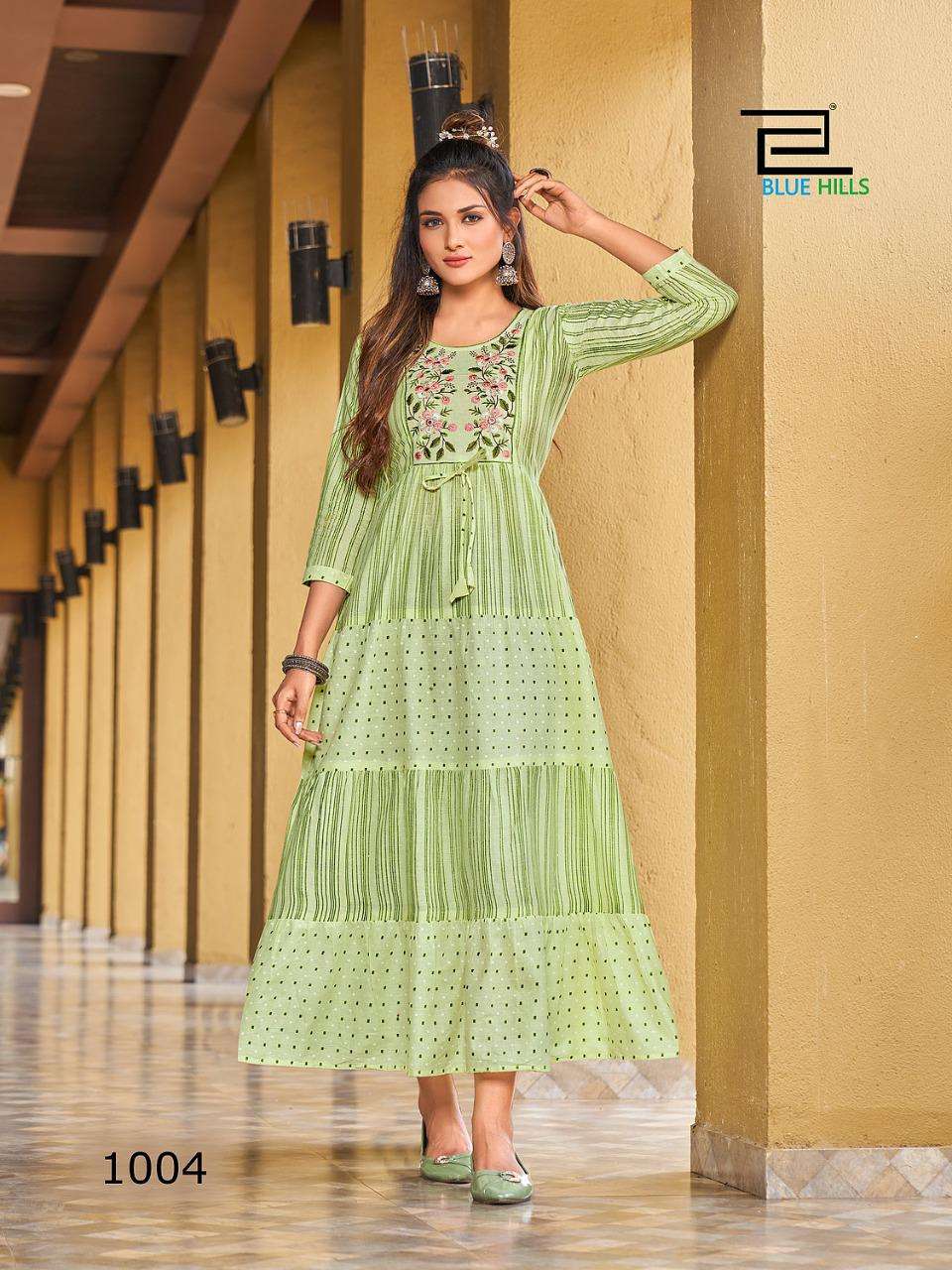 #BLUE HILLS Fabric - heavy Cotton camric Concept - Long frill Gown with Stylish Emboridary work Length- 50+ Size - M (38) L (40) XL (42) XXL (42) XXL (44) 3XL (46) 4XL (48) 5XL (50) Rate - 675+GST 8 beautiful colors BOOKINGS OPEN Dispatch - 2 to 3 day |