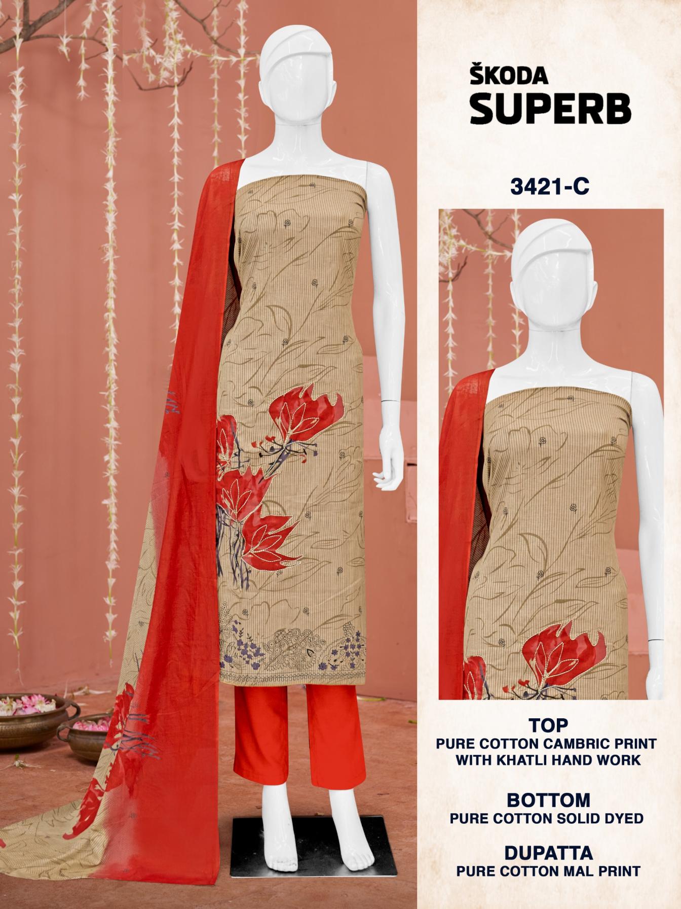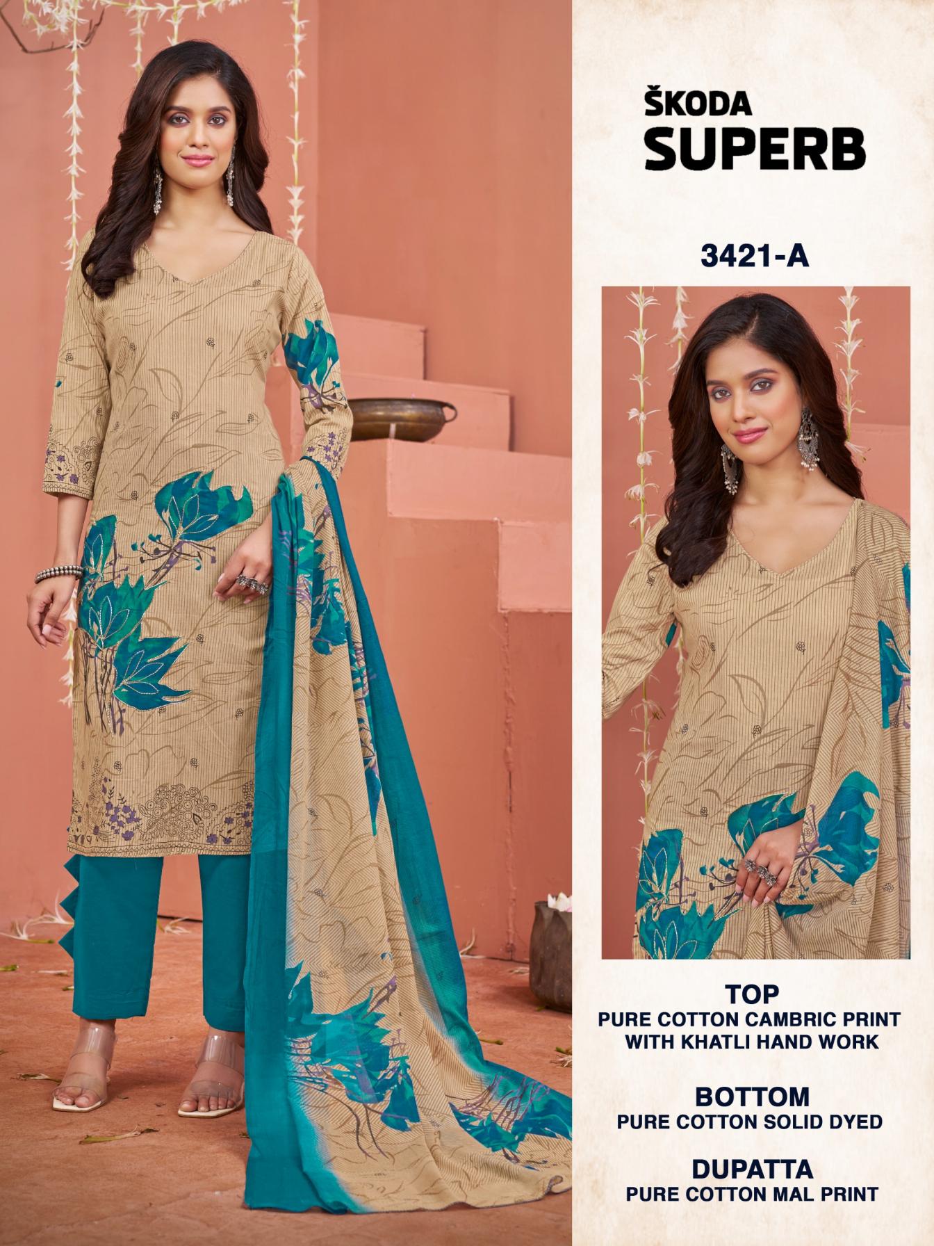 skoda superb 3421 by bipson prints cotton daily wear dress materials