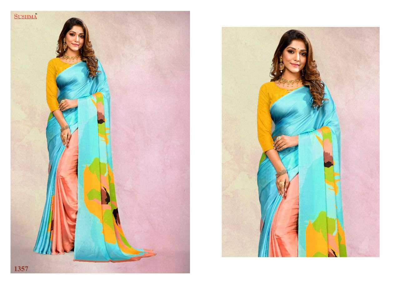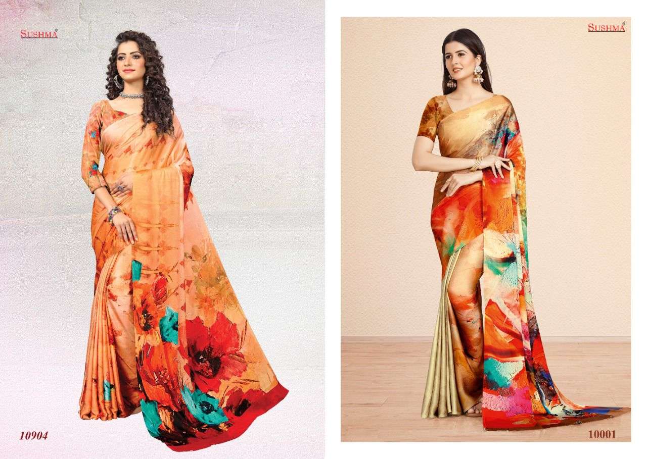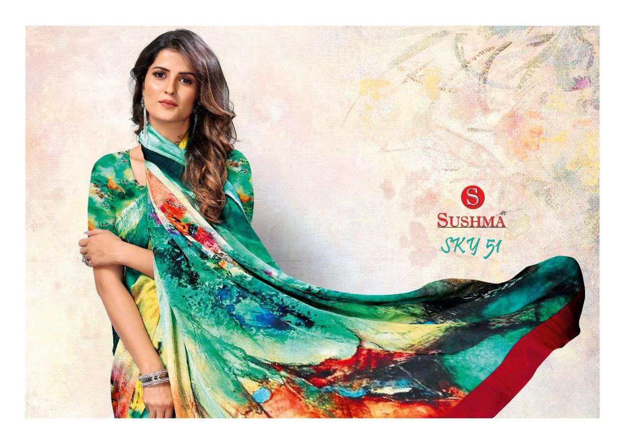 sky 51 by sushma satin digital printed saree catalogue