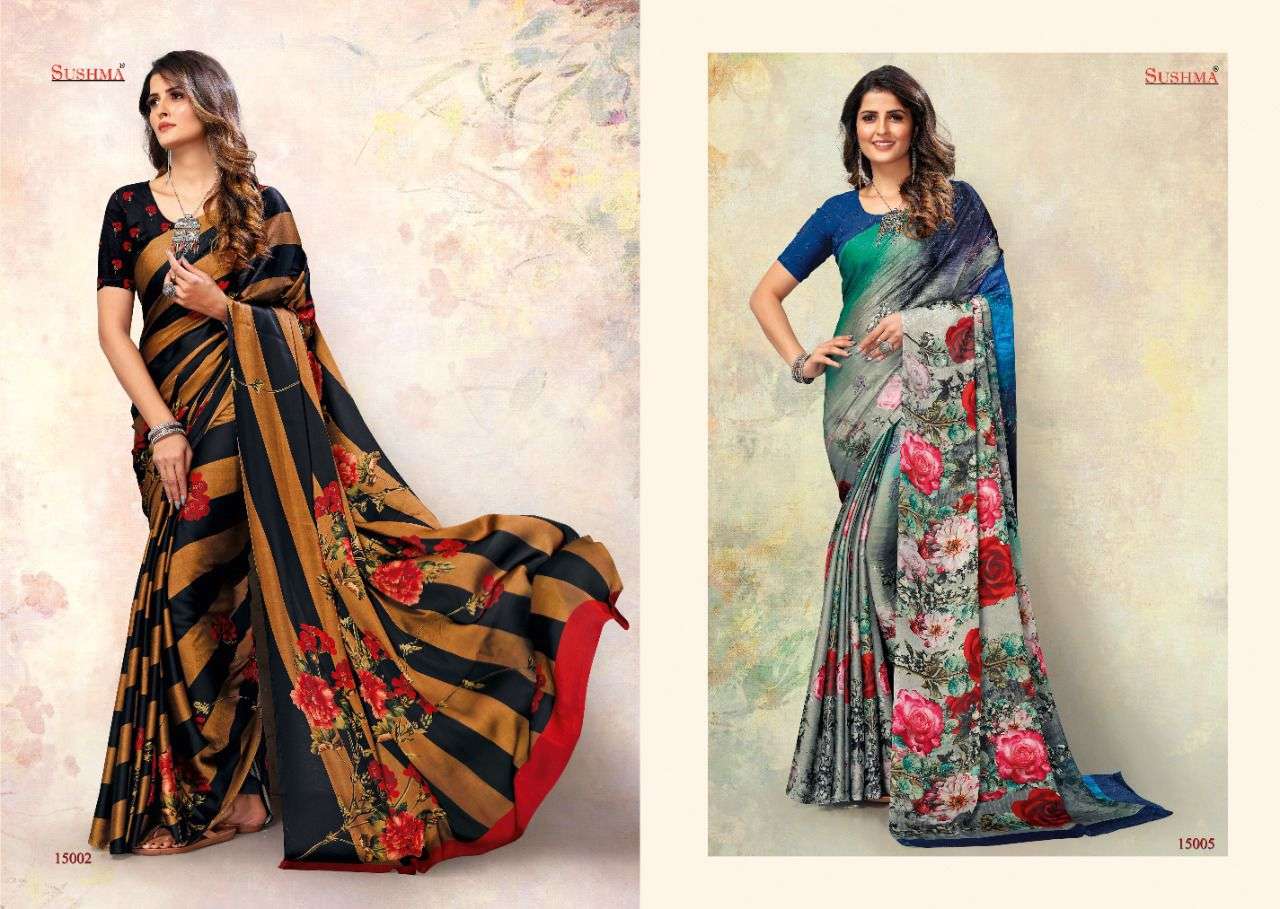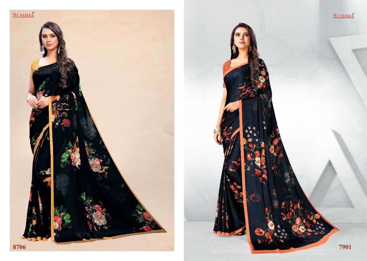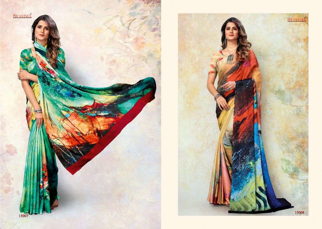 sky 51 by sushma satin digital printed saree catalogue
