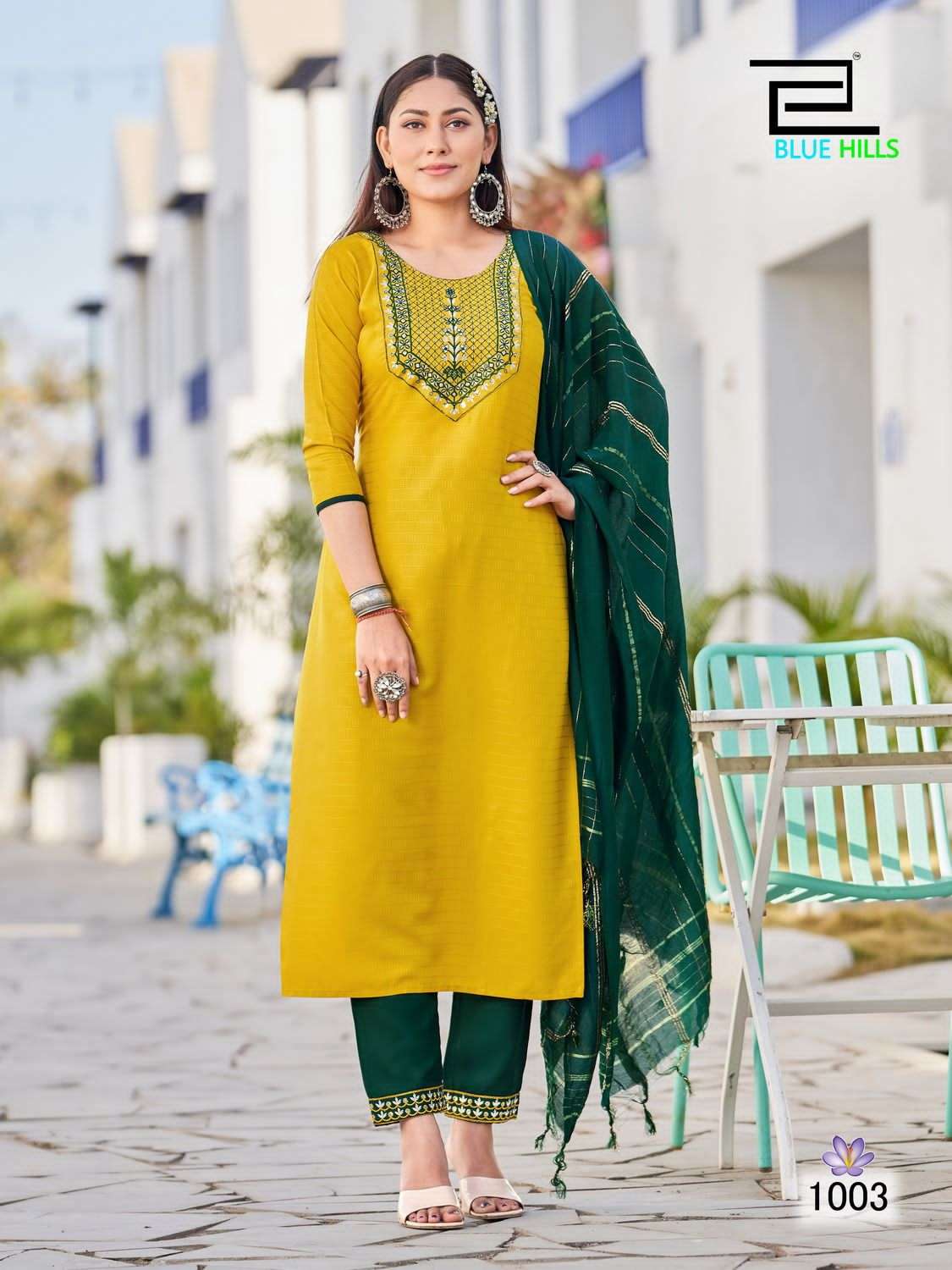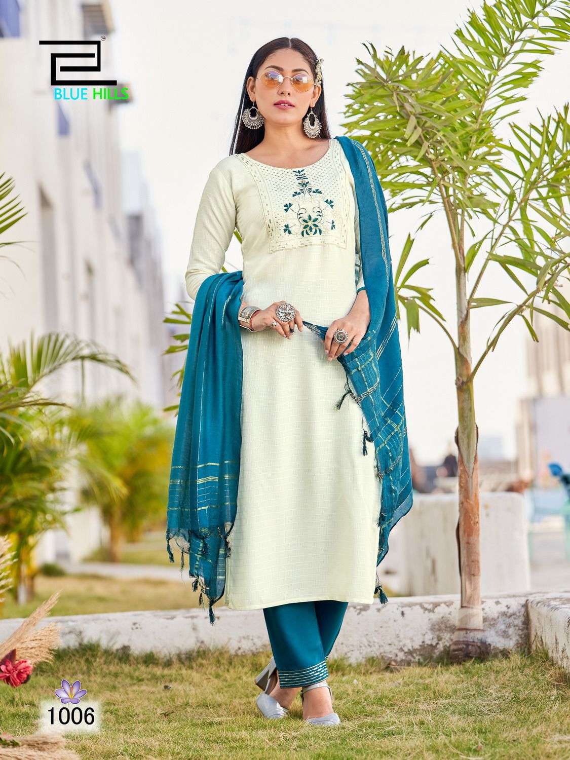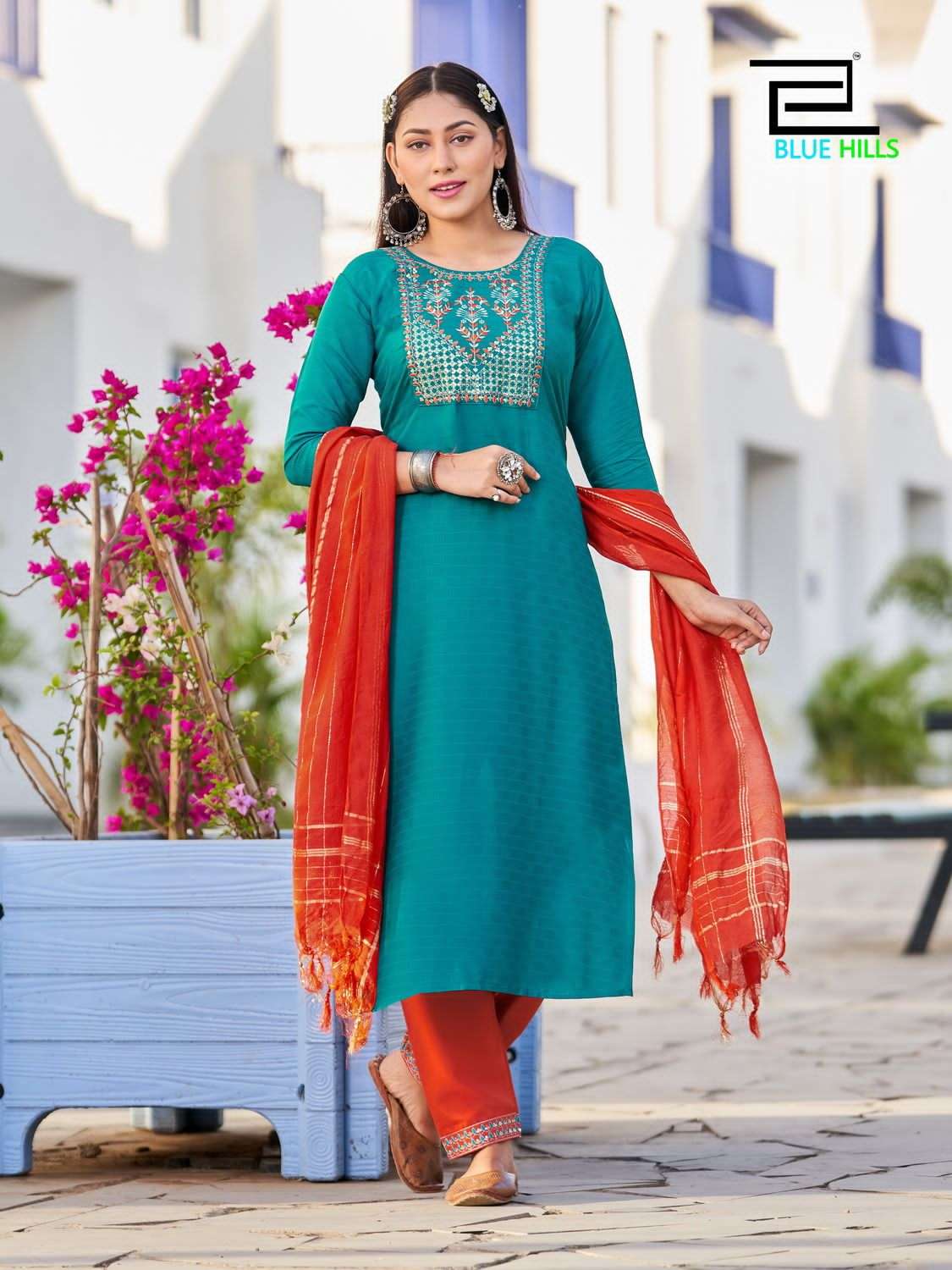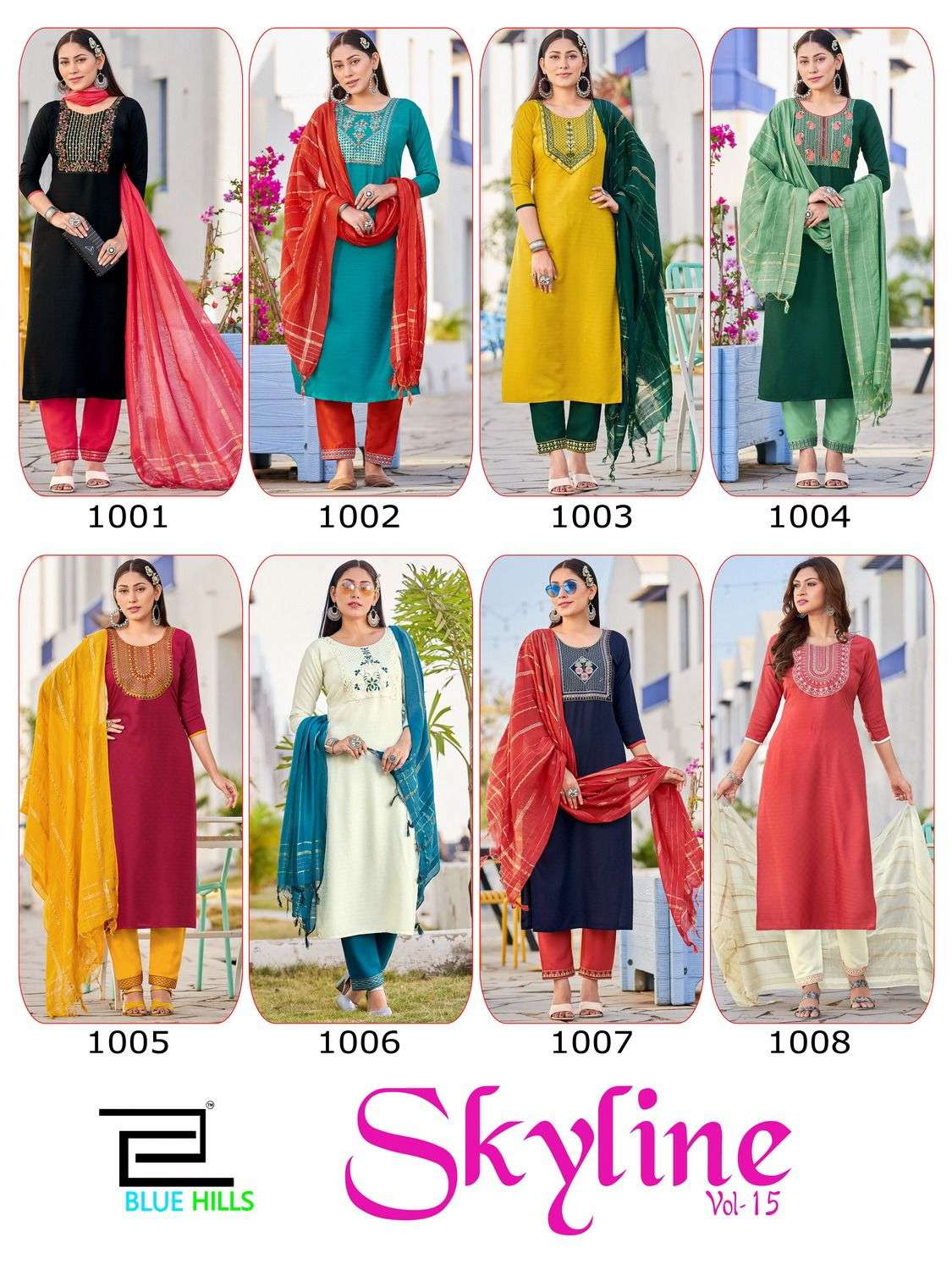 skyline vol 15 by blue hills fancy 3pcs set collection designer work kurti with pant and dupatta