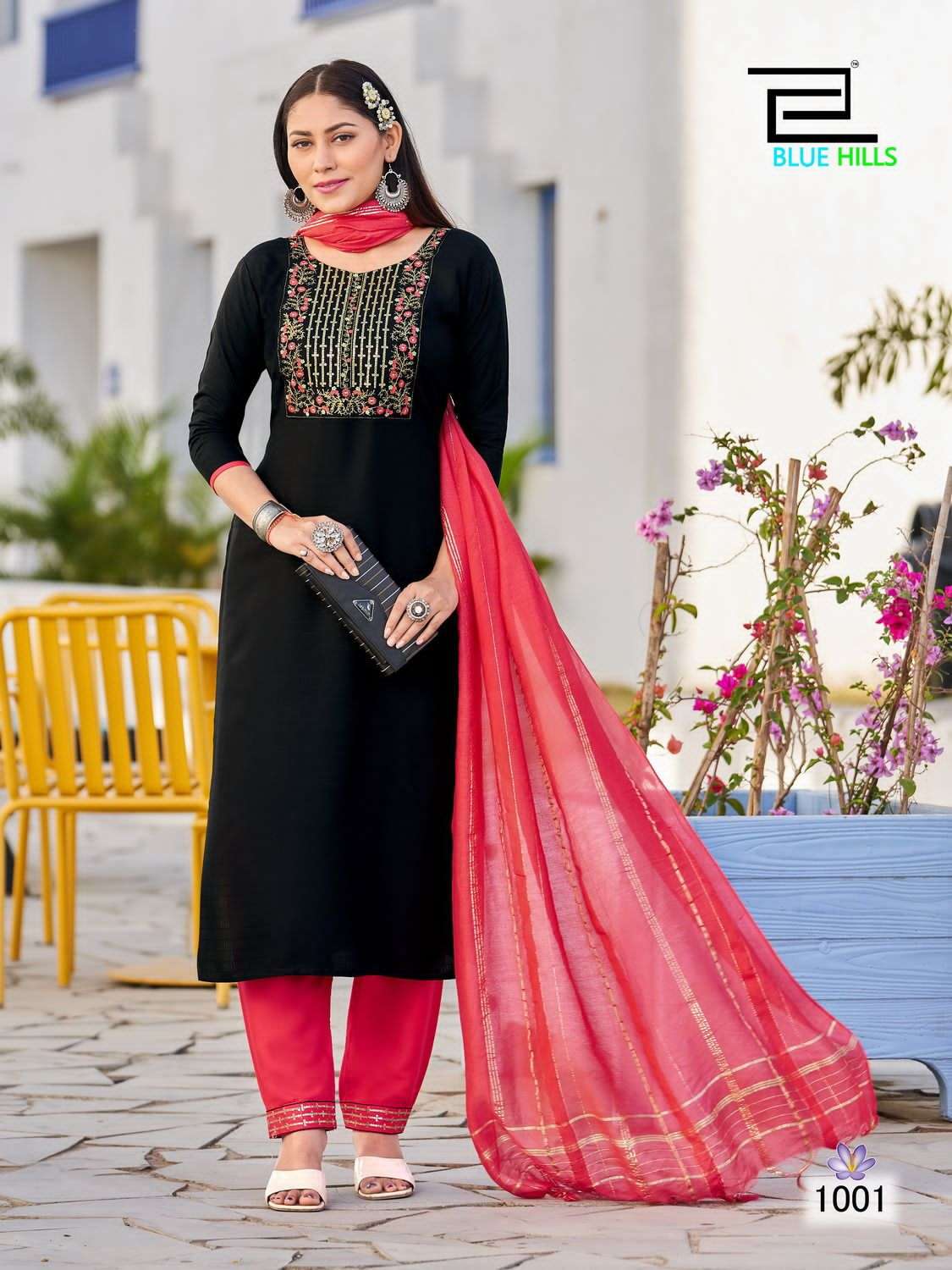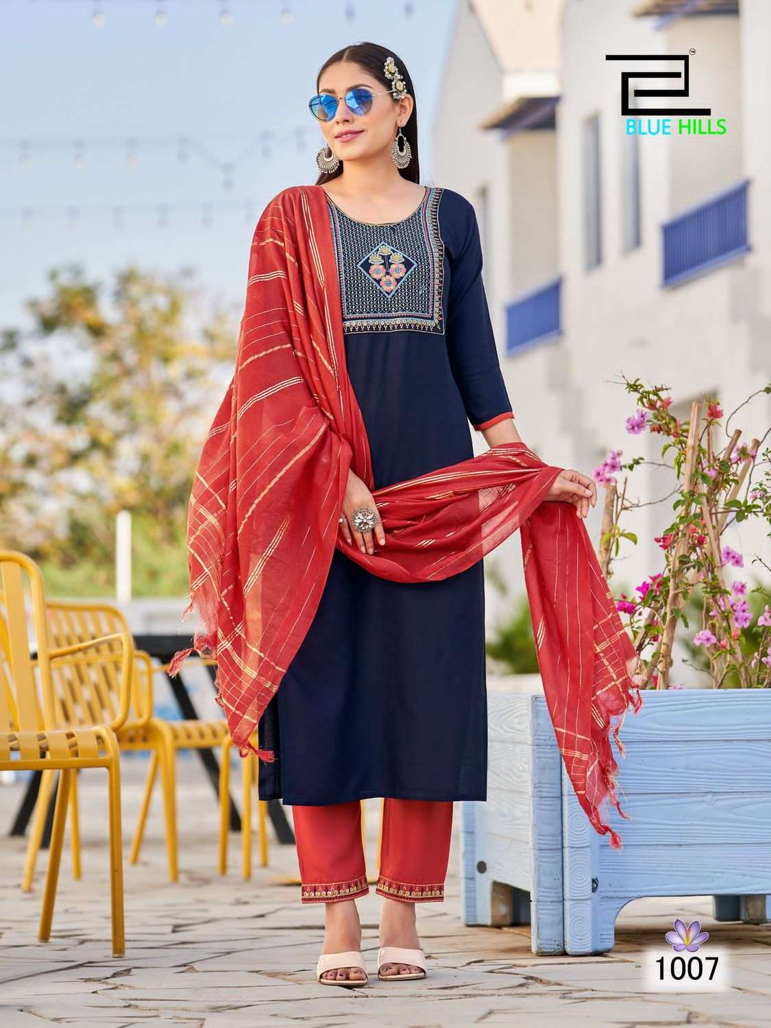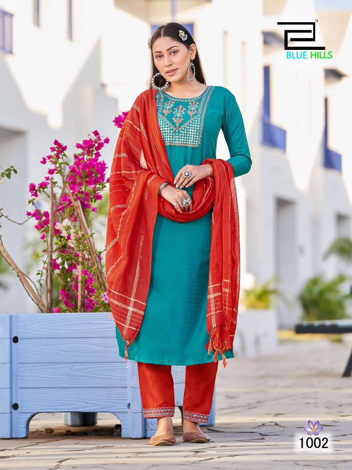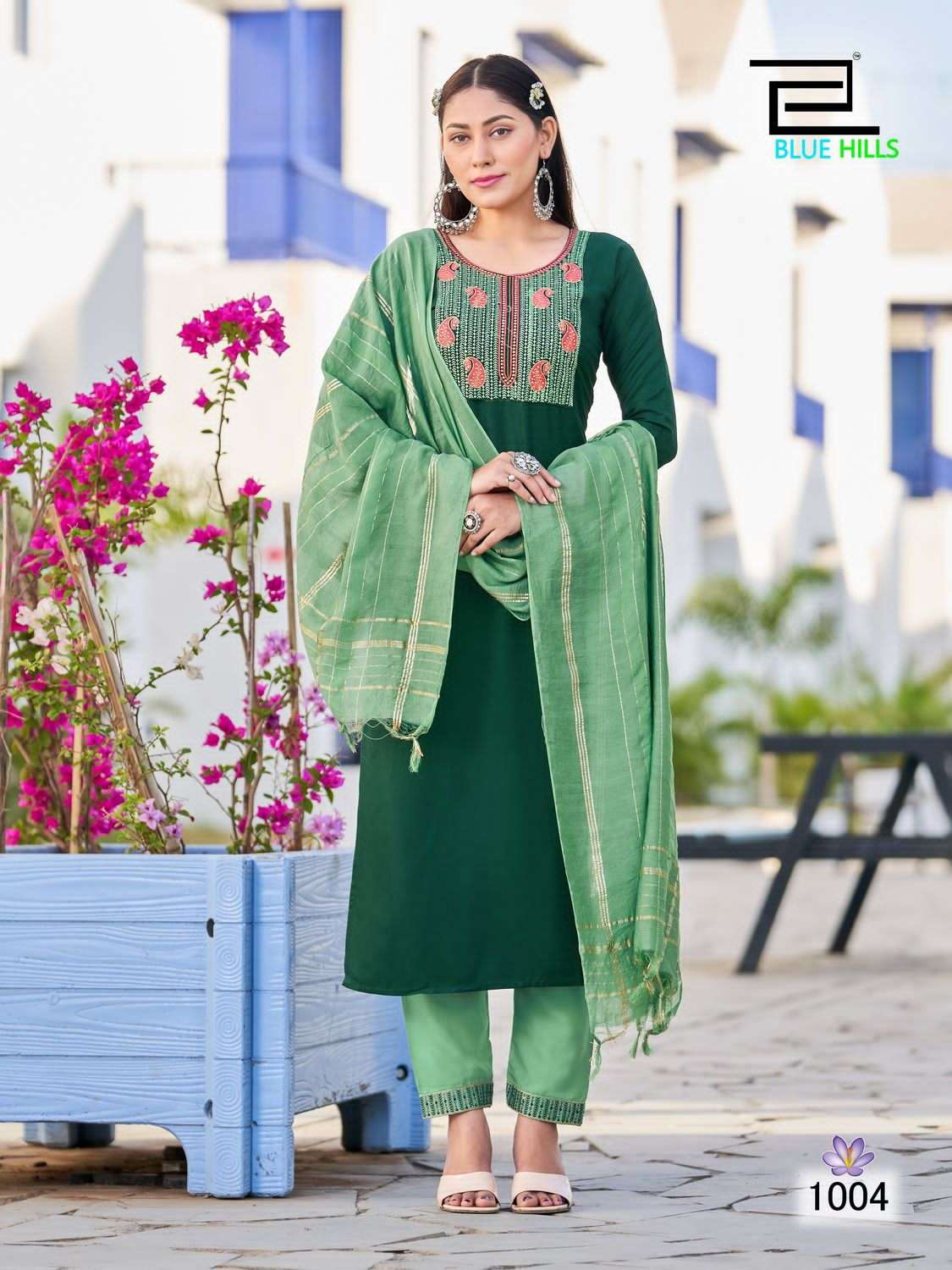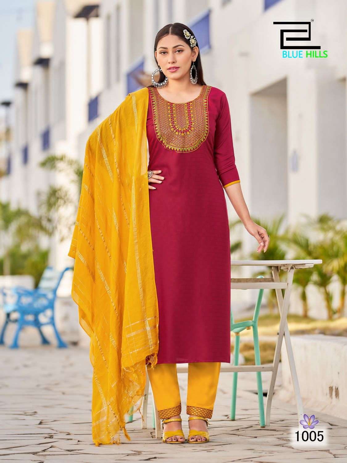 skyline vol 15 by blue hills fancy 3pcs set collection designer work kurti with pant and dupatta