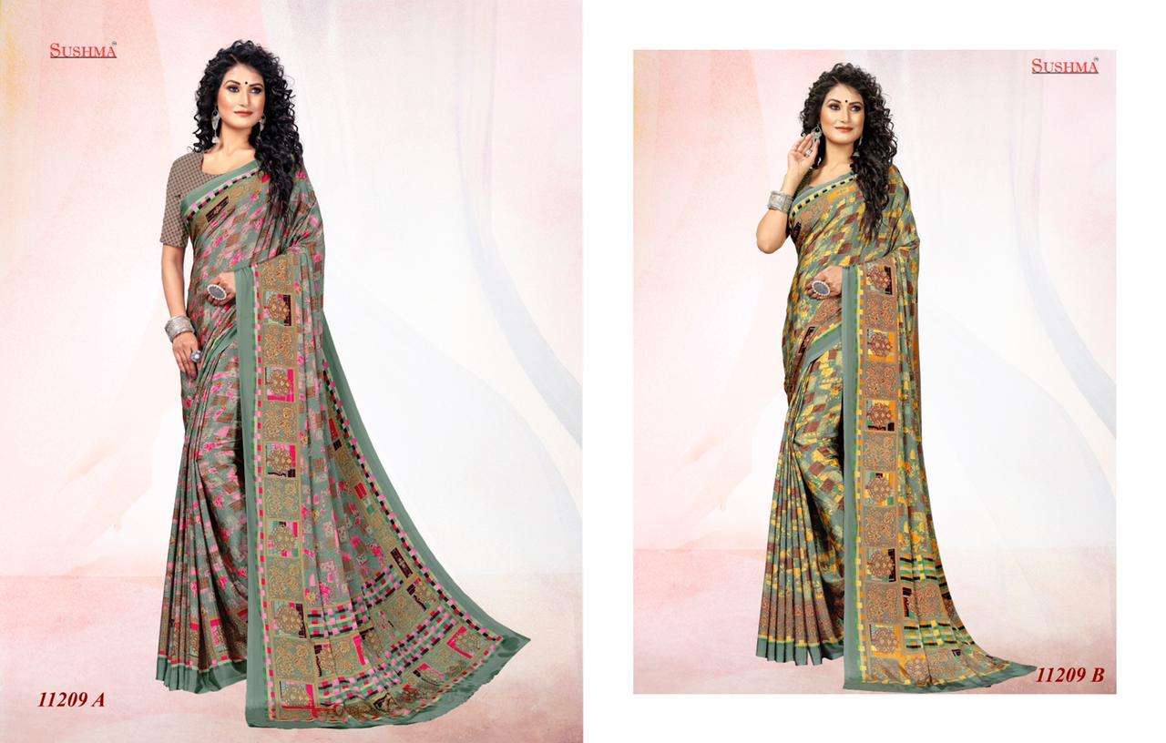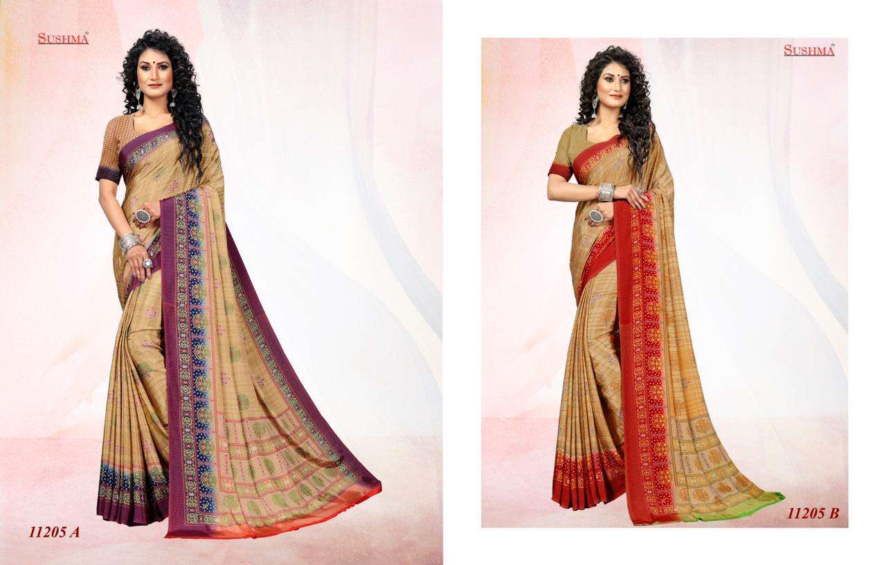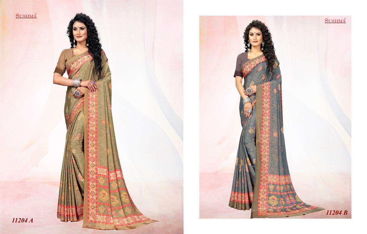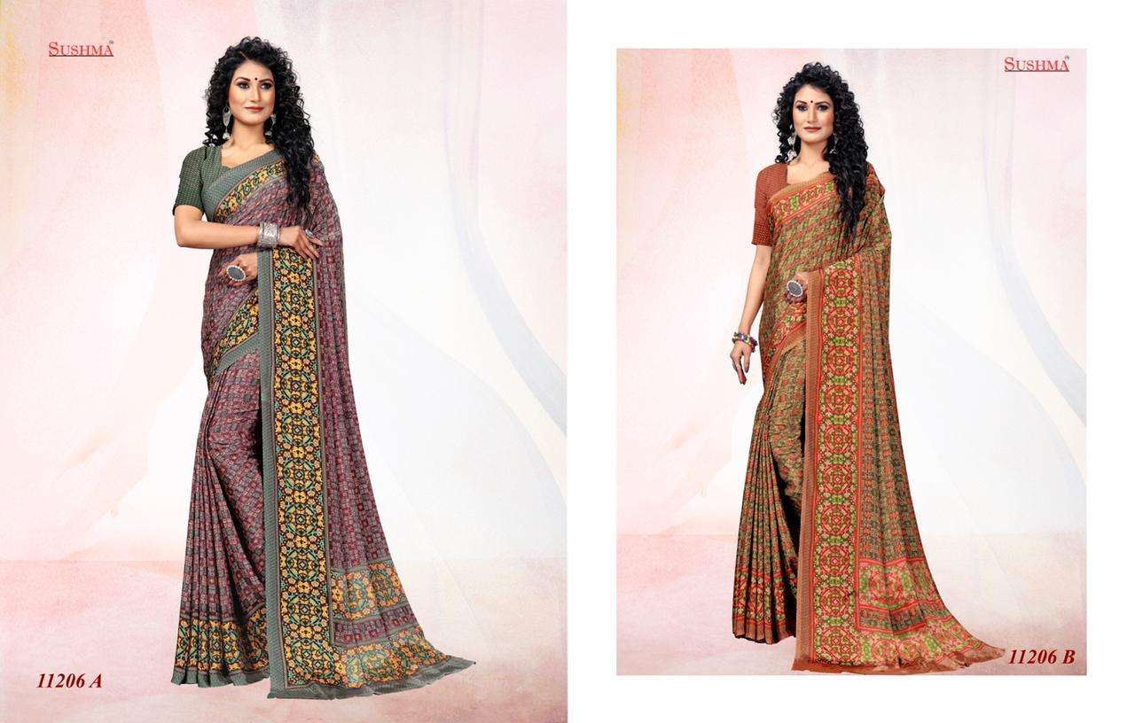 Brand - Sushma . SLIM CATALOG SLIM CRAPE 565/- 6.30 MTRS. 18 SAREES Set to set . GST 5 Percent Extra |