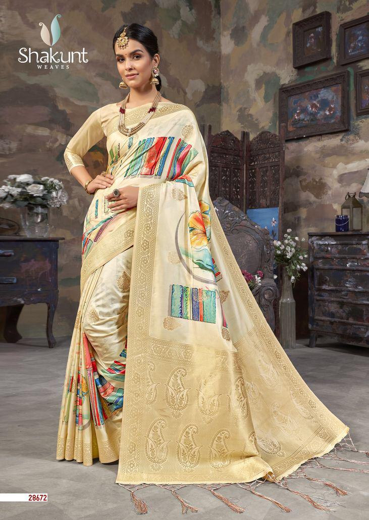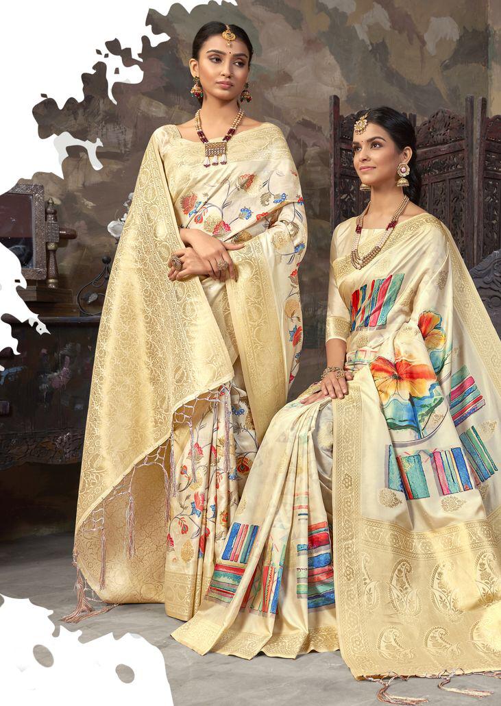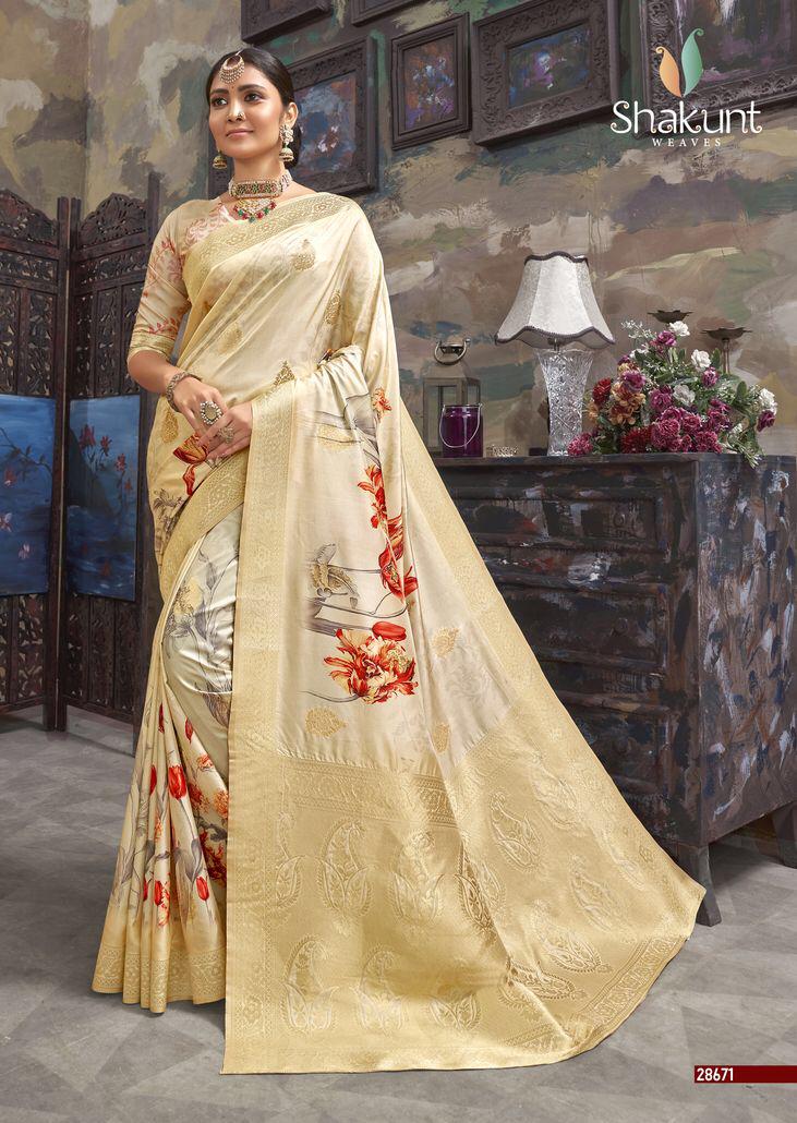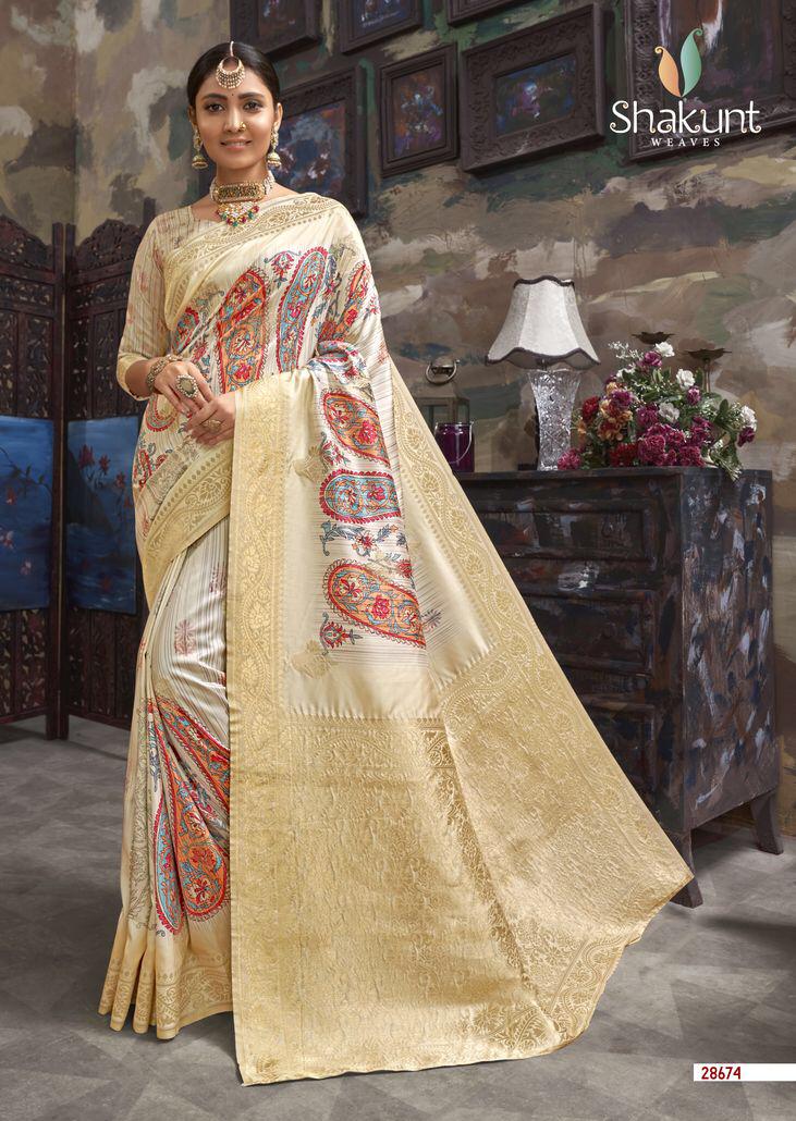 Smaran By Shakunt Digital Print Silk Designer Heavy Classy Look Saree At Affordable Price