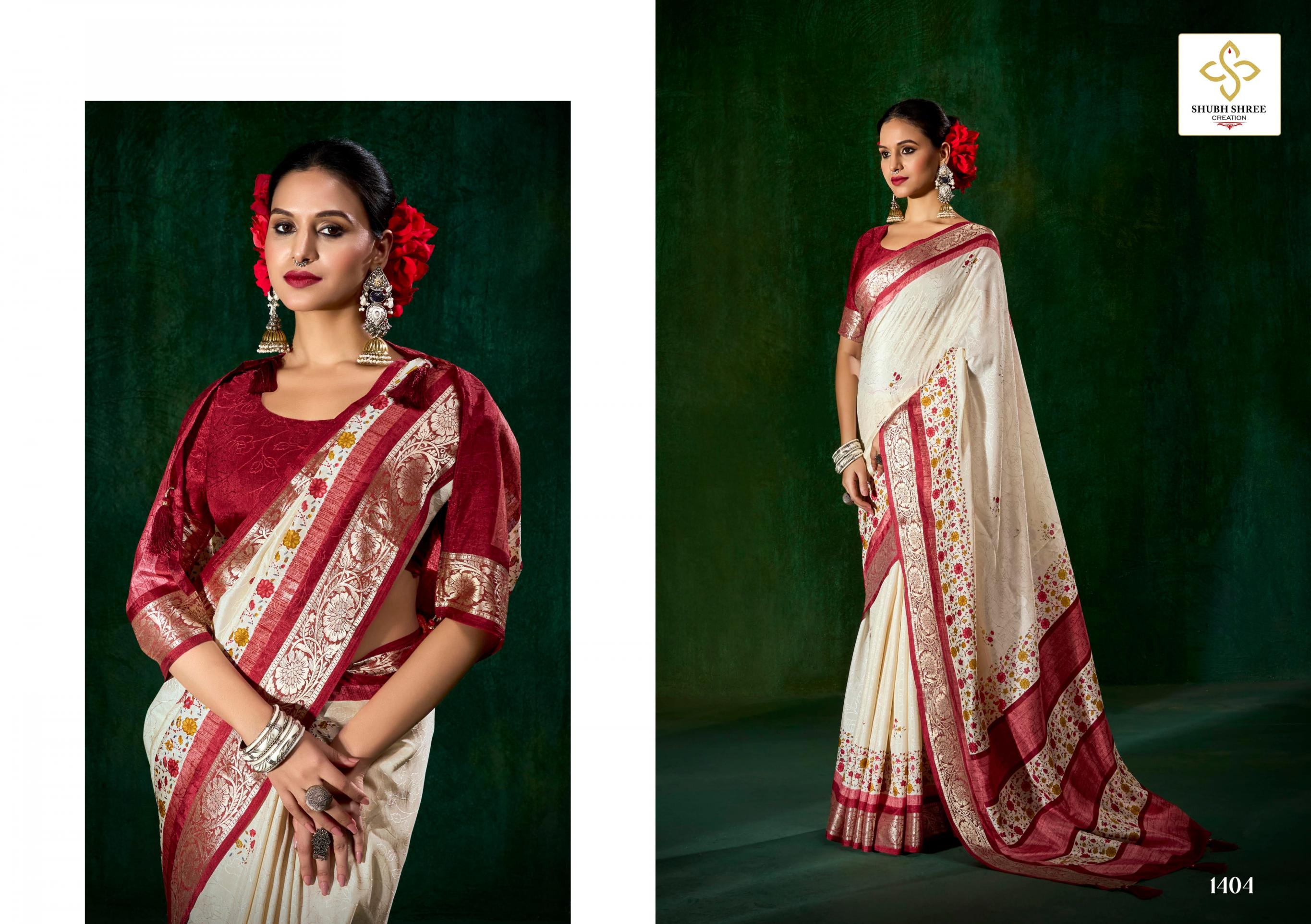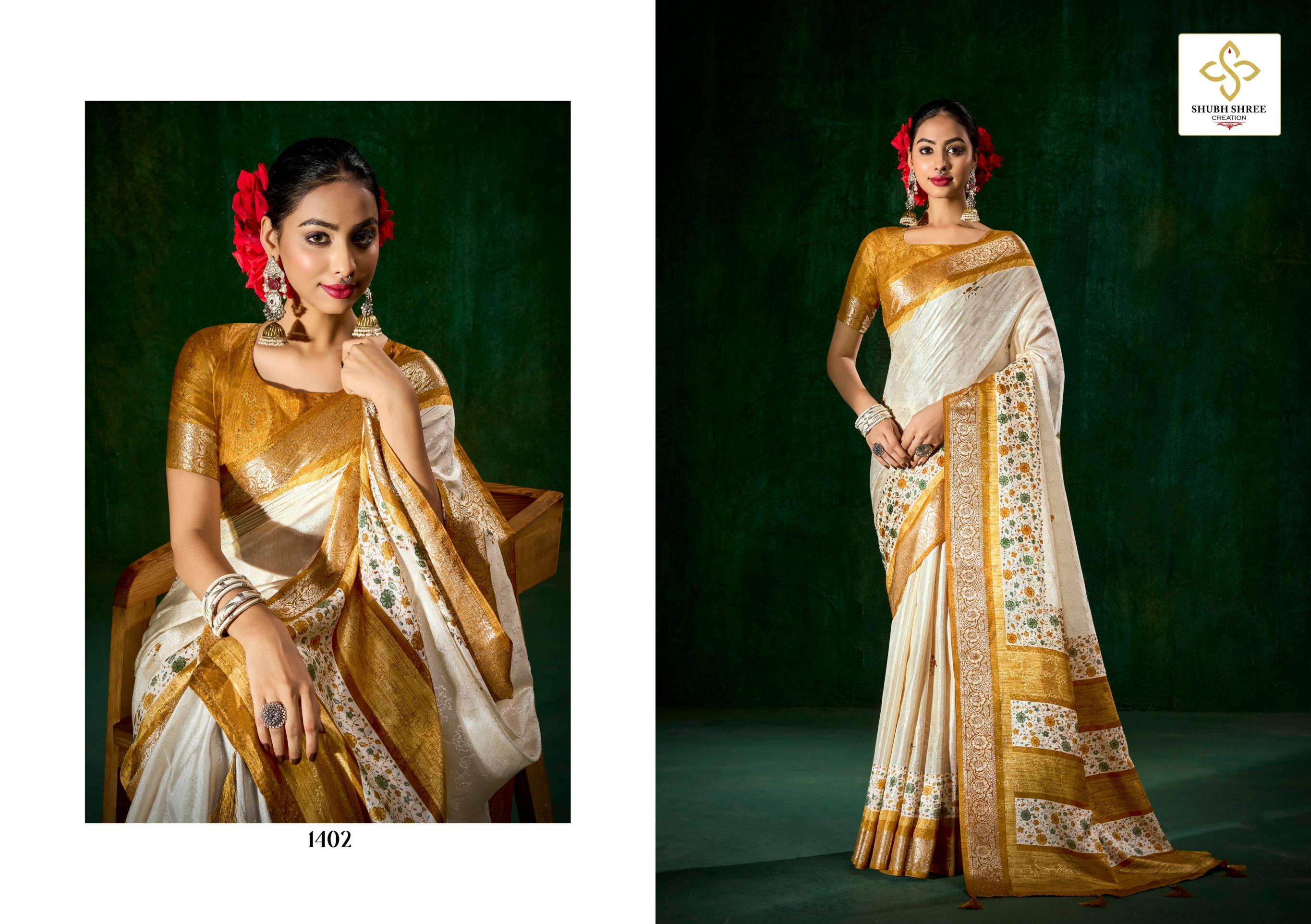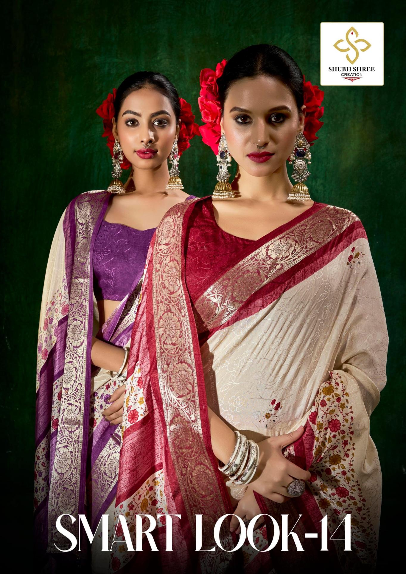 smart look vol 14 by shubh shree creation velvet tussar silk amazing sarees