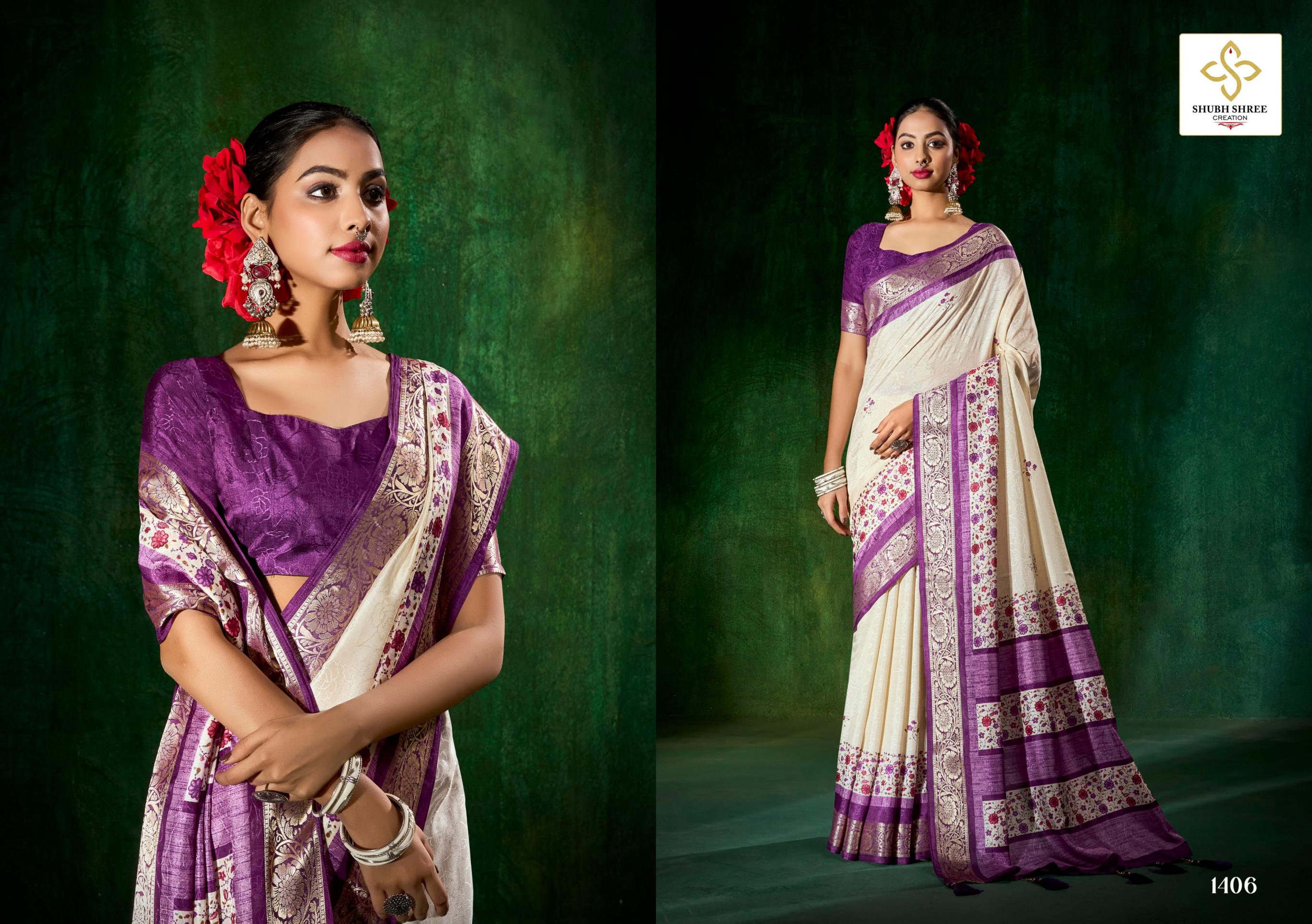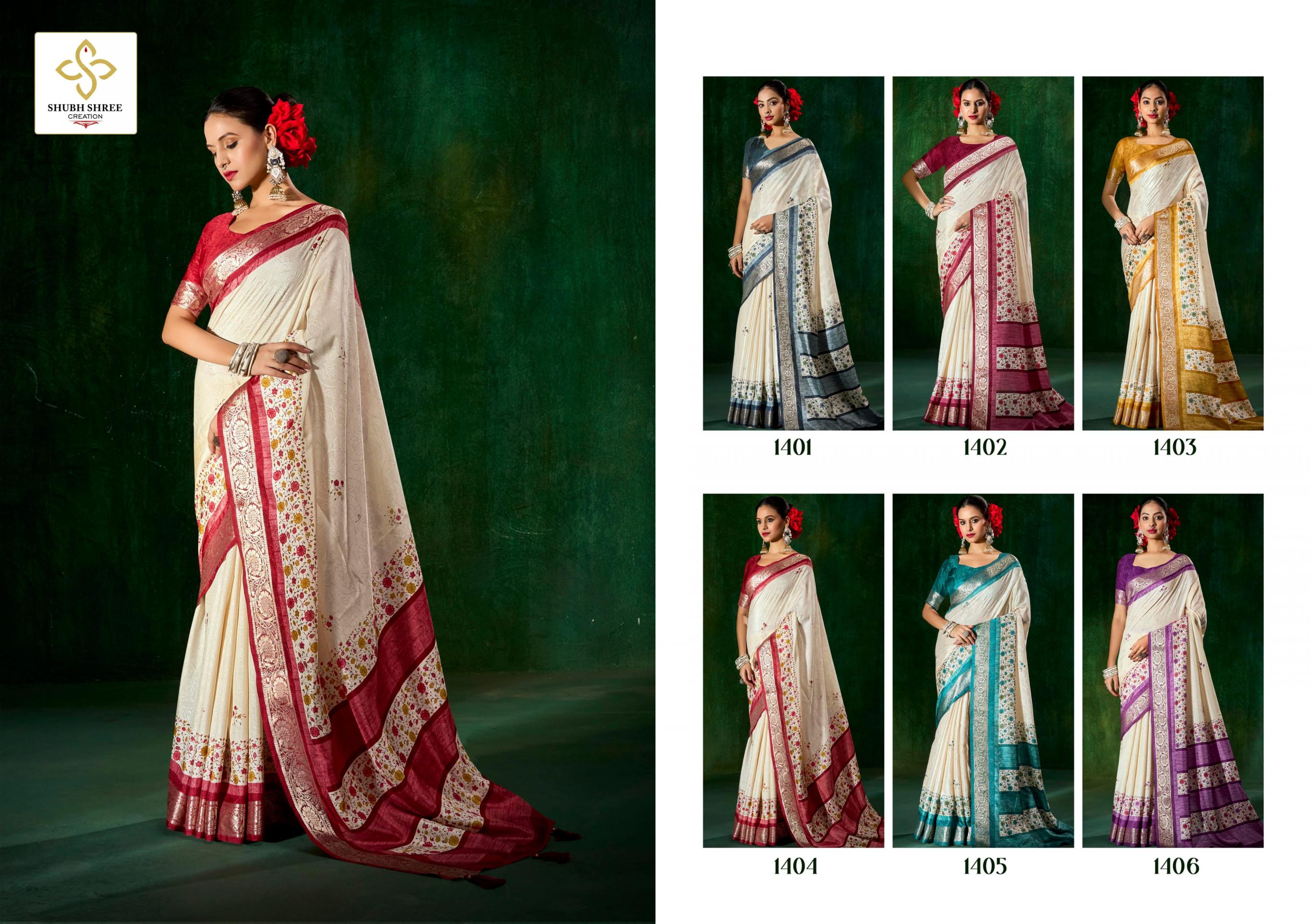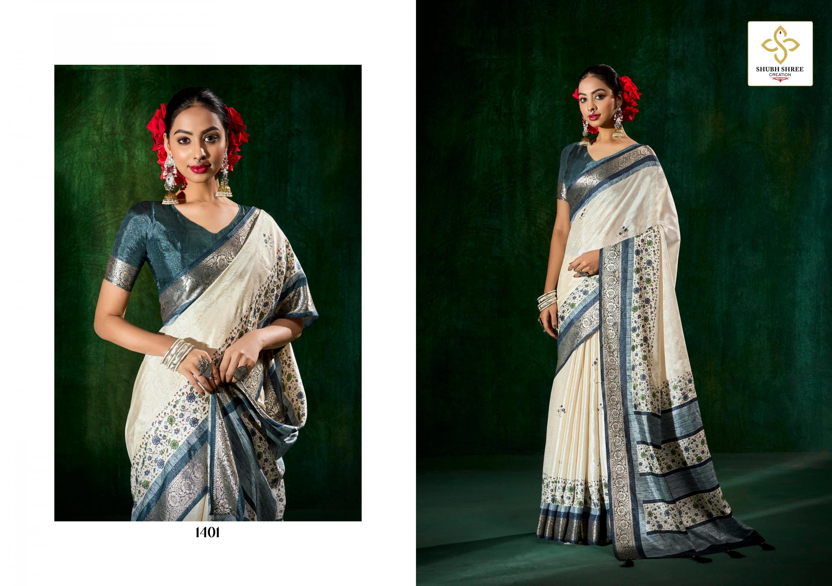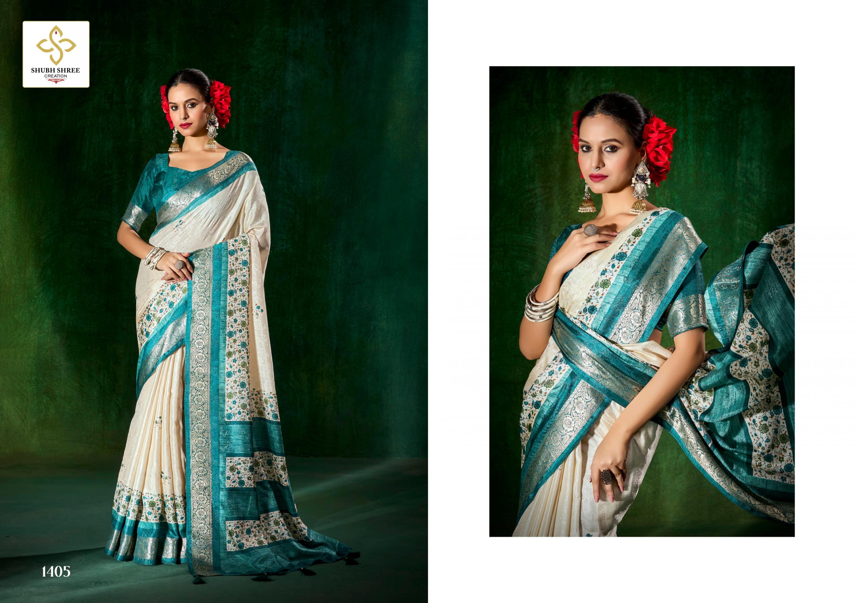 smart look vol 14 by shubh shree creation velvet tussar silk amazing sarees