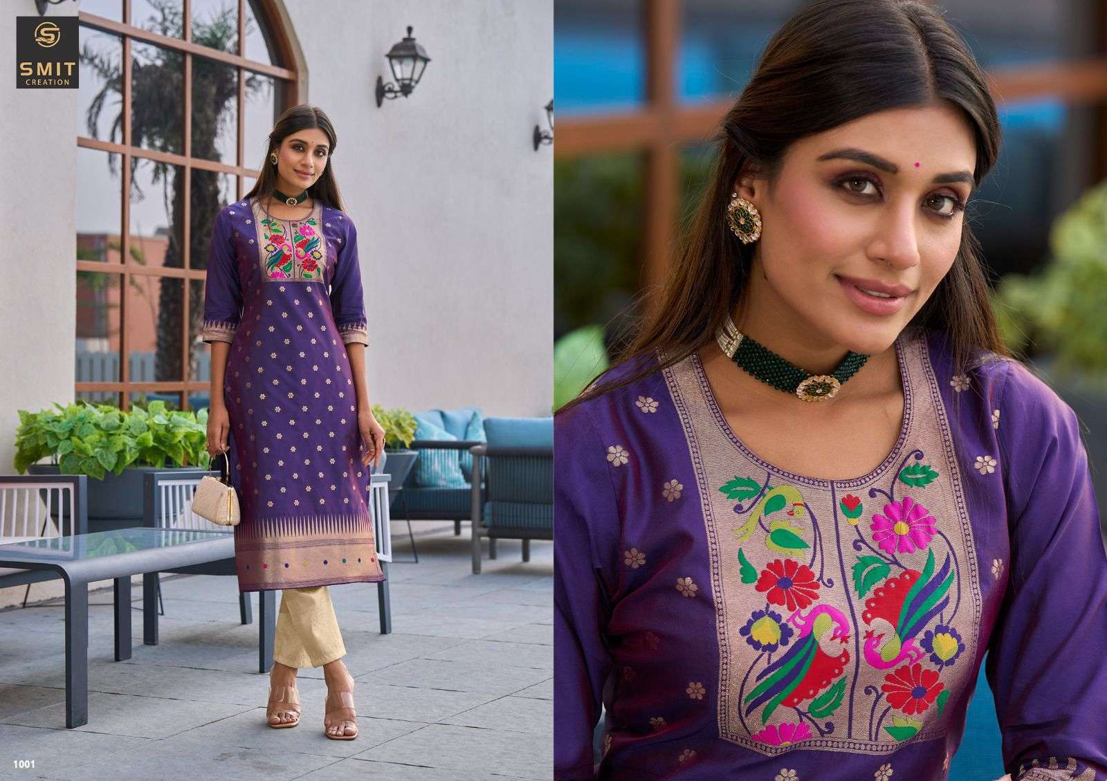 smit maya Pure Tapela Silk With Paithani Pattern kurtis wholesale