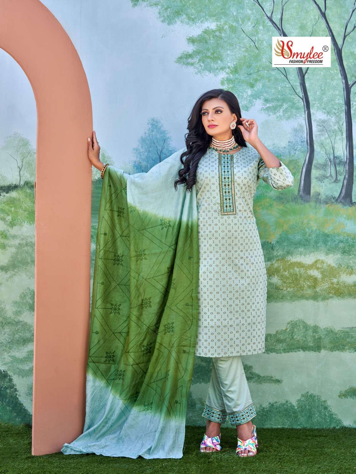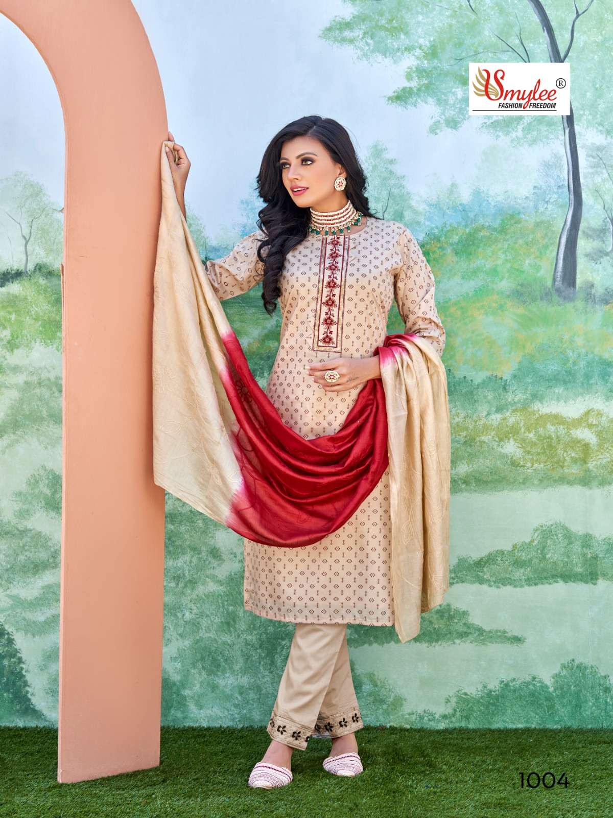 smylee sneha readymade neck embroidered kurti with pant and dupatta