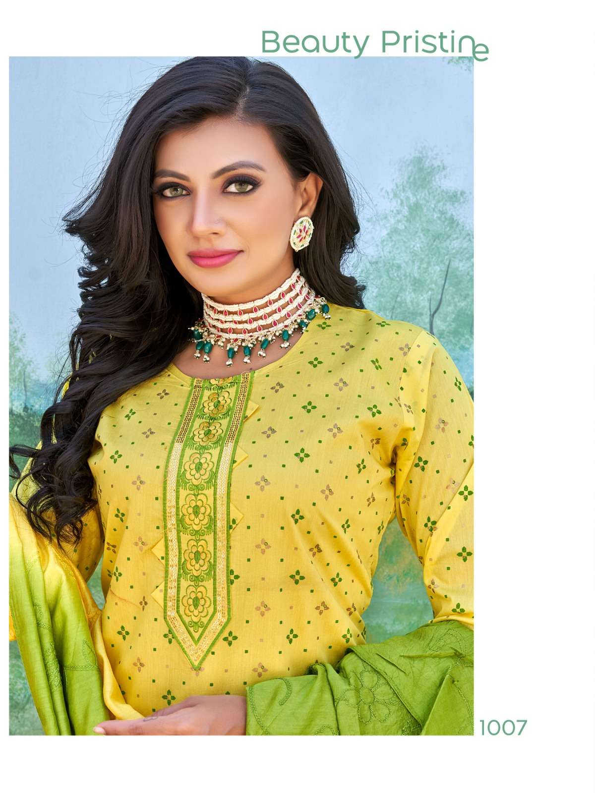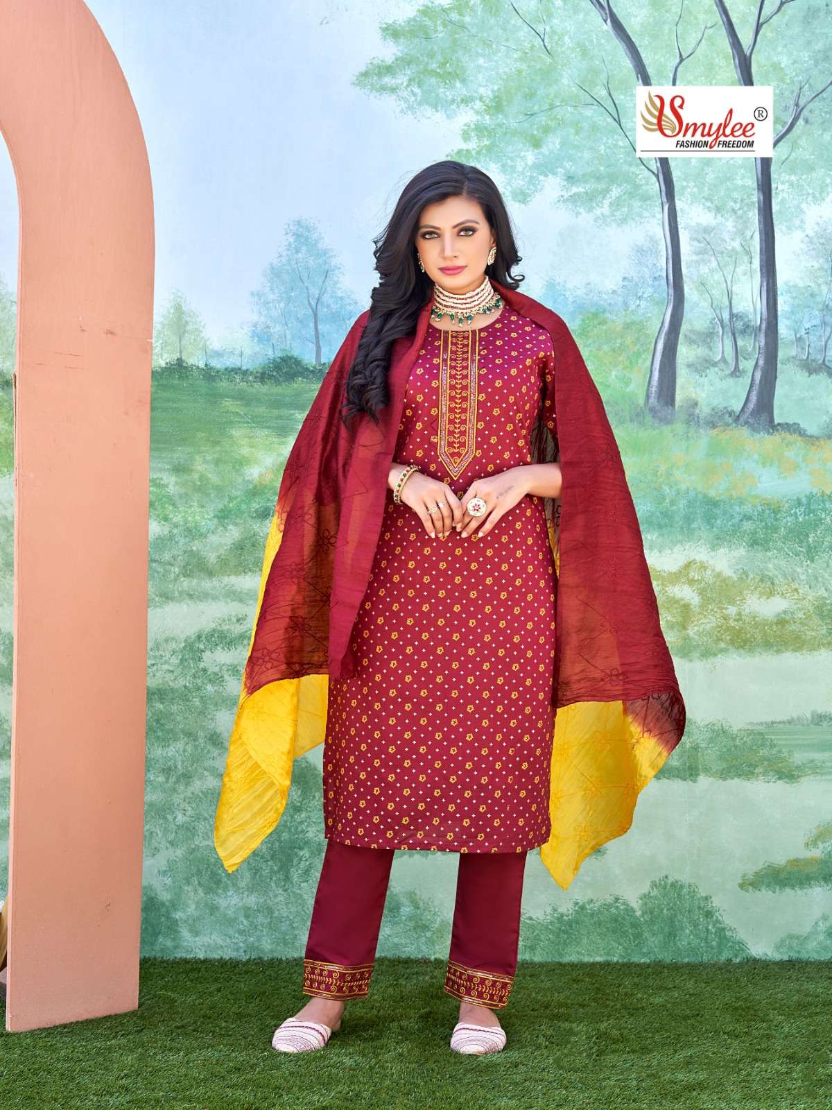 SMYLEE PRESENTS OUR NEW CATALOGUE 🌷SNEHA🌷 KURTI PANT WITH DUPATTA FEBRIC.. 👖 CHANDERI SILK INCLUDED INNER WITH EMBROIDERY BORDER 🇹🇿 NAZNEEN TIE & DYE 8️⃣ PEICE CATALOGUE Size. M(38). L(40). XL(42). XXXL(46) RATE per pcs |