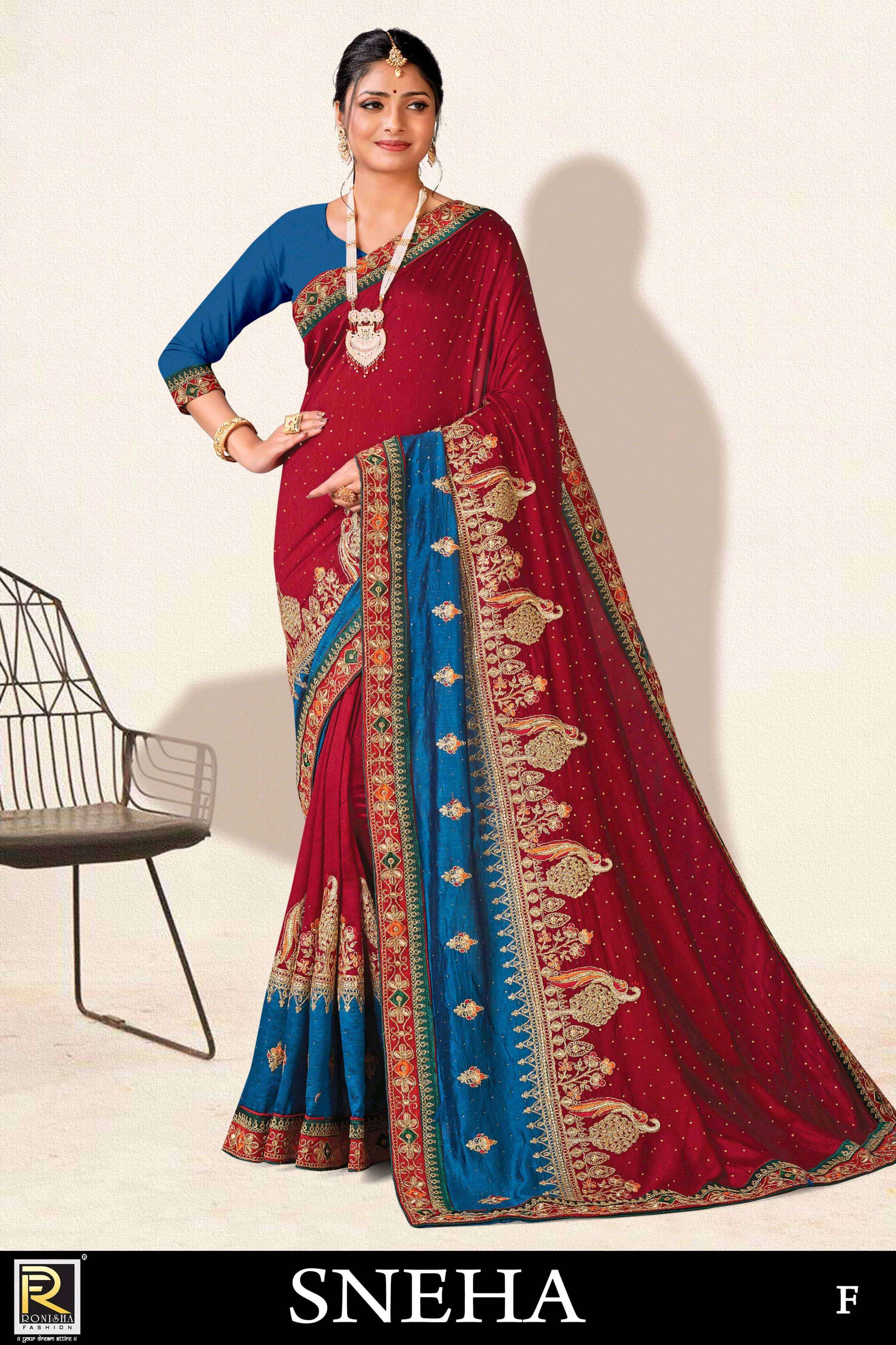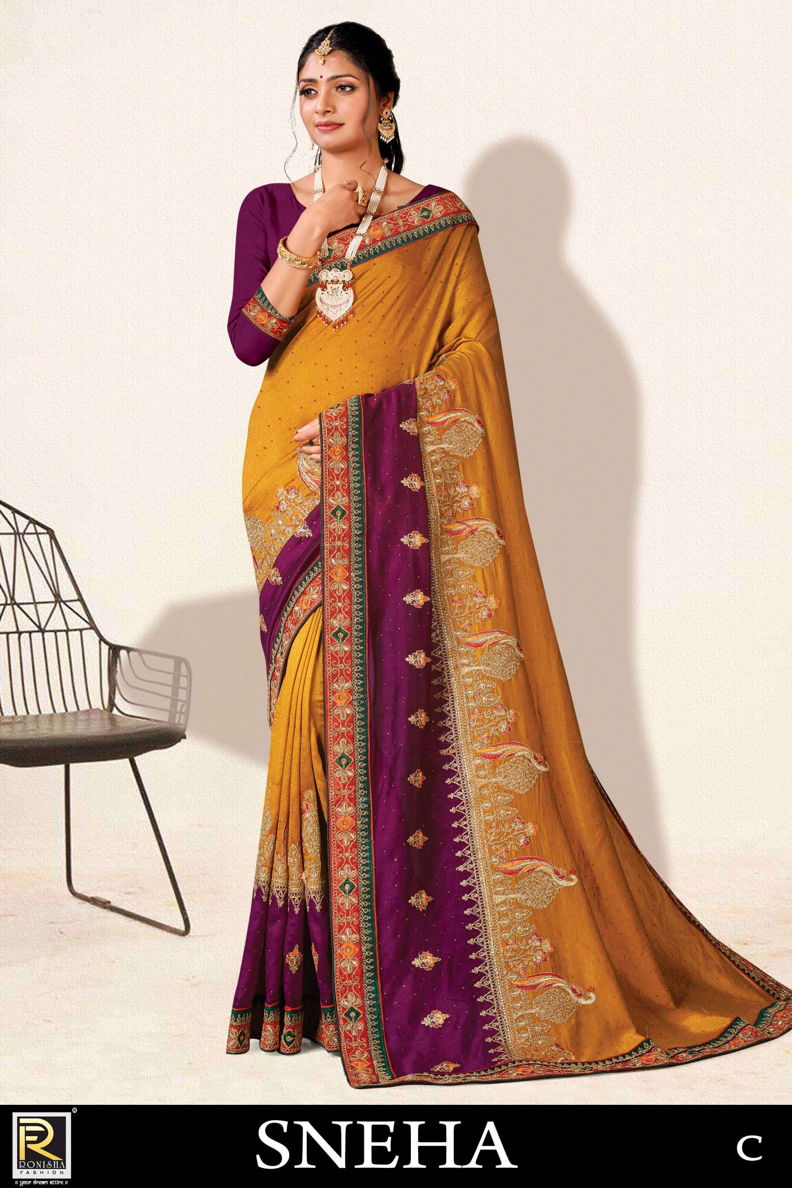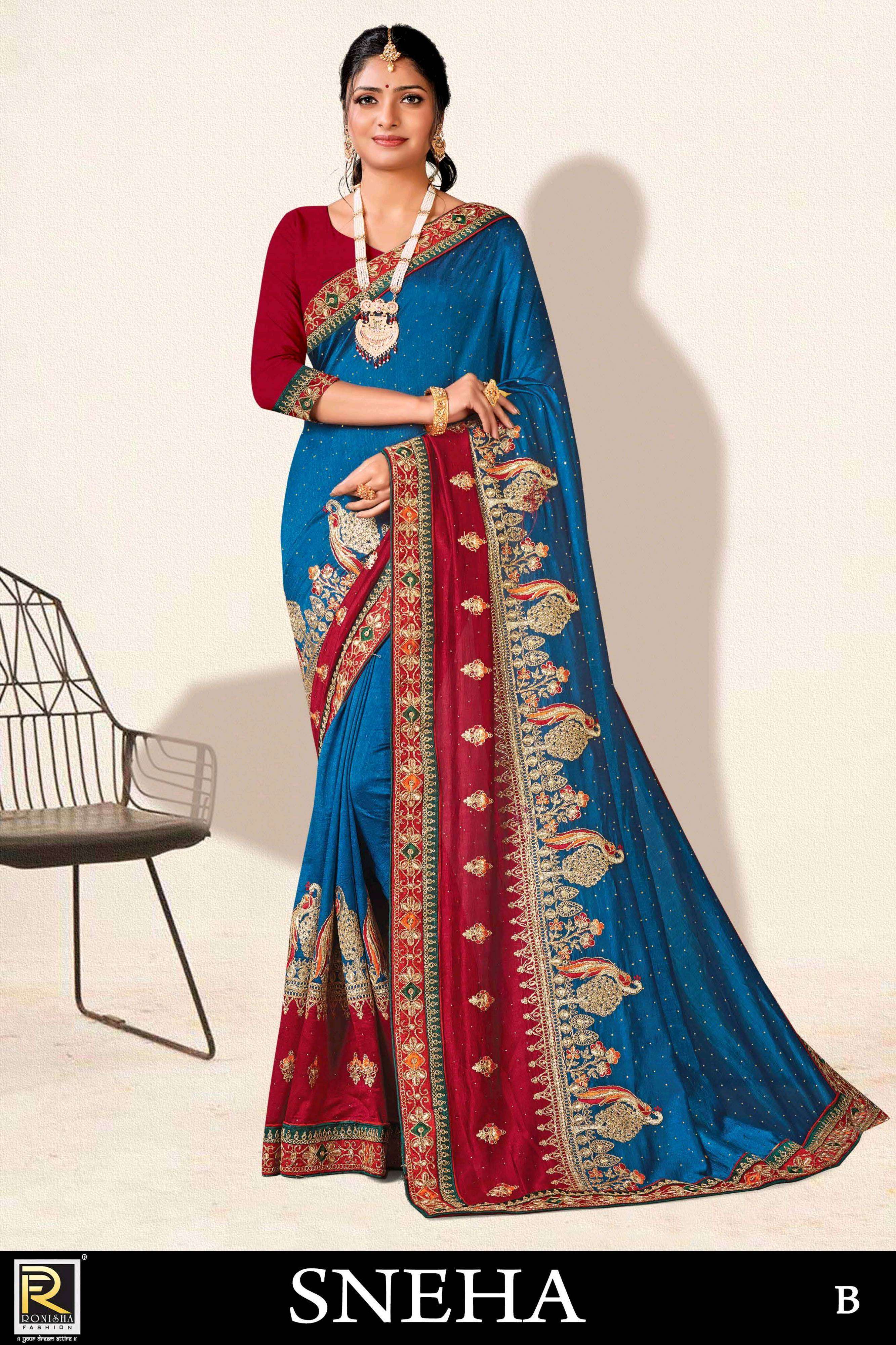 Sneha new launching product by ranjna saree embroidery worked designer saree collecton