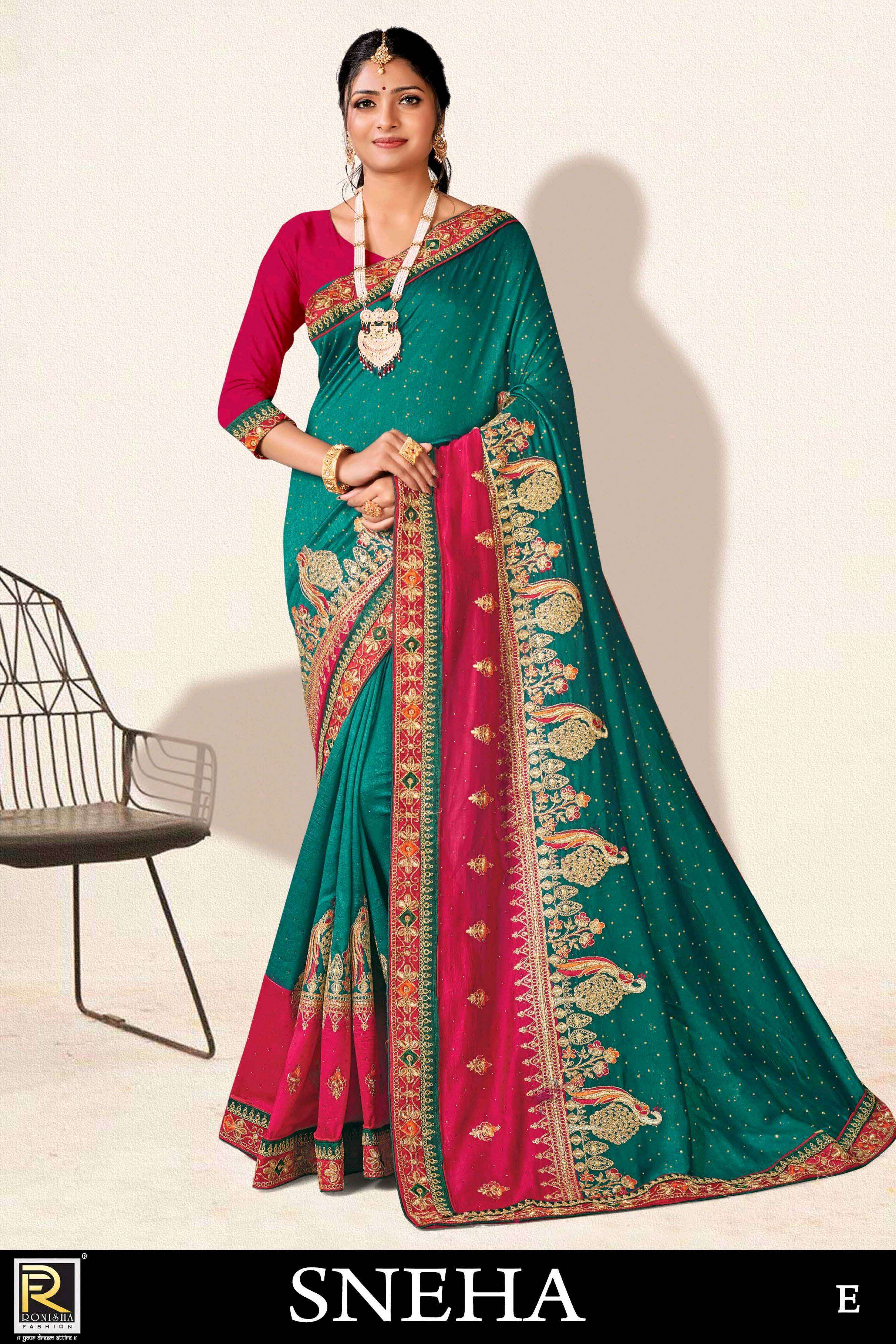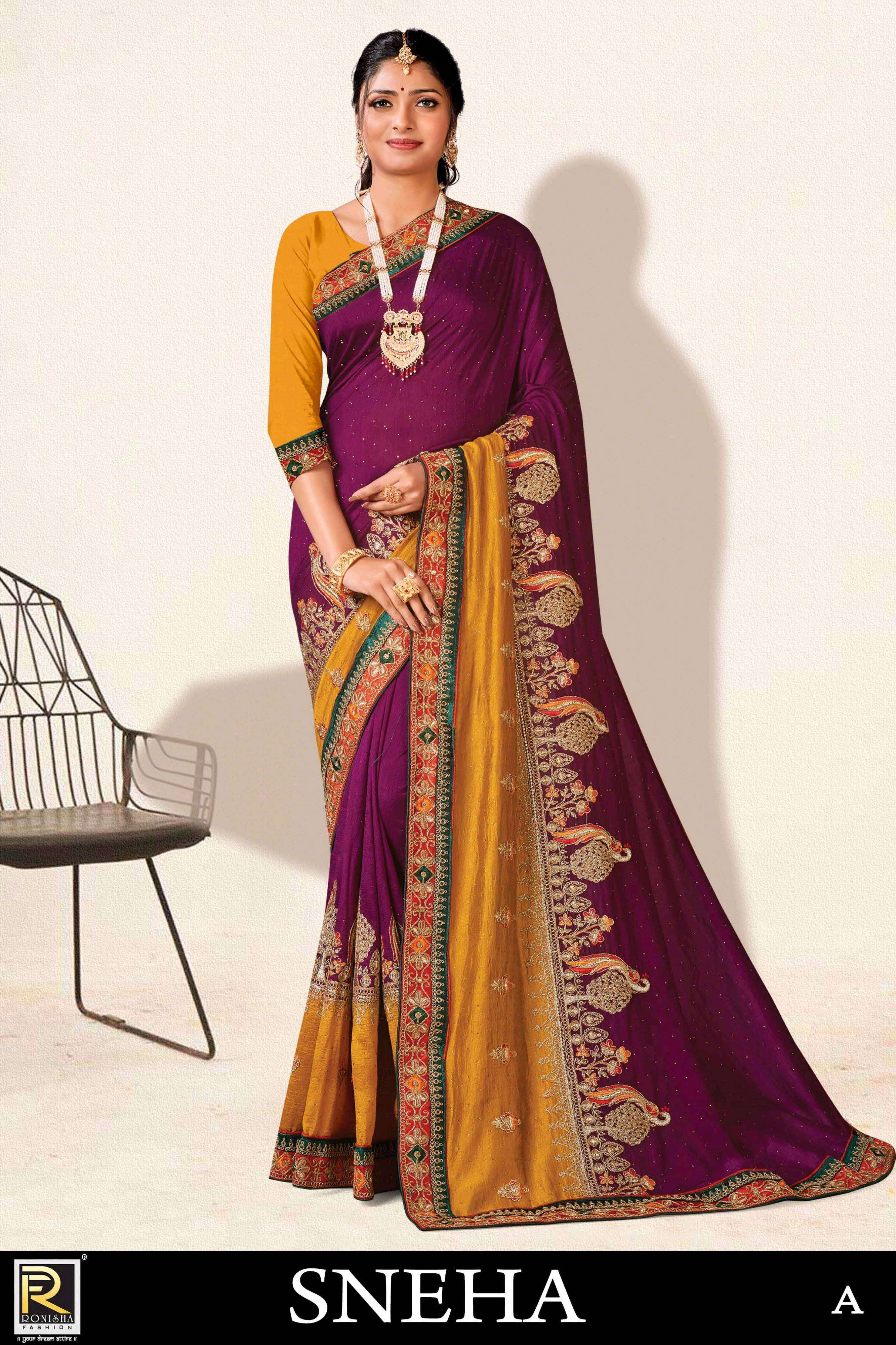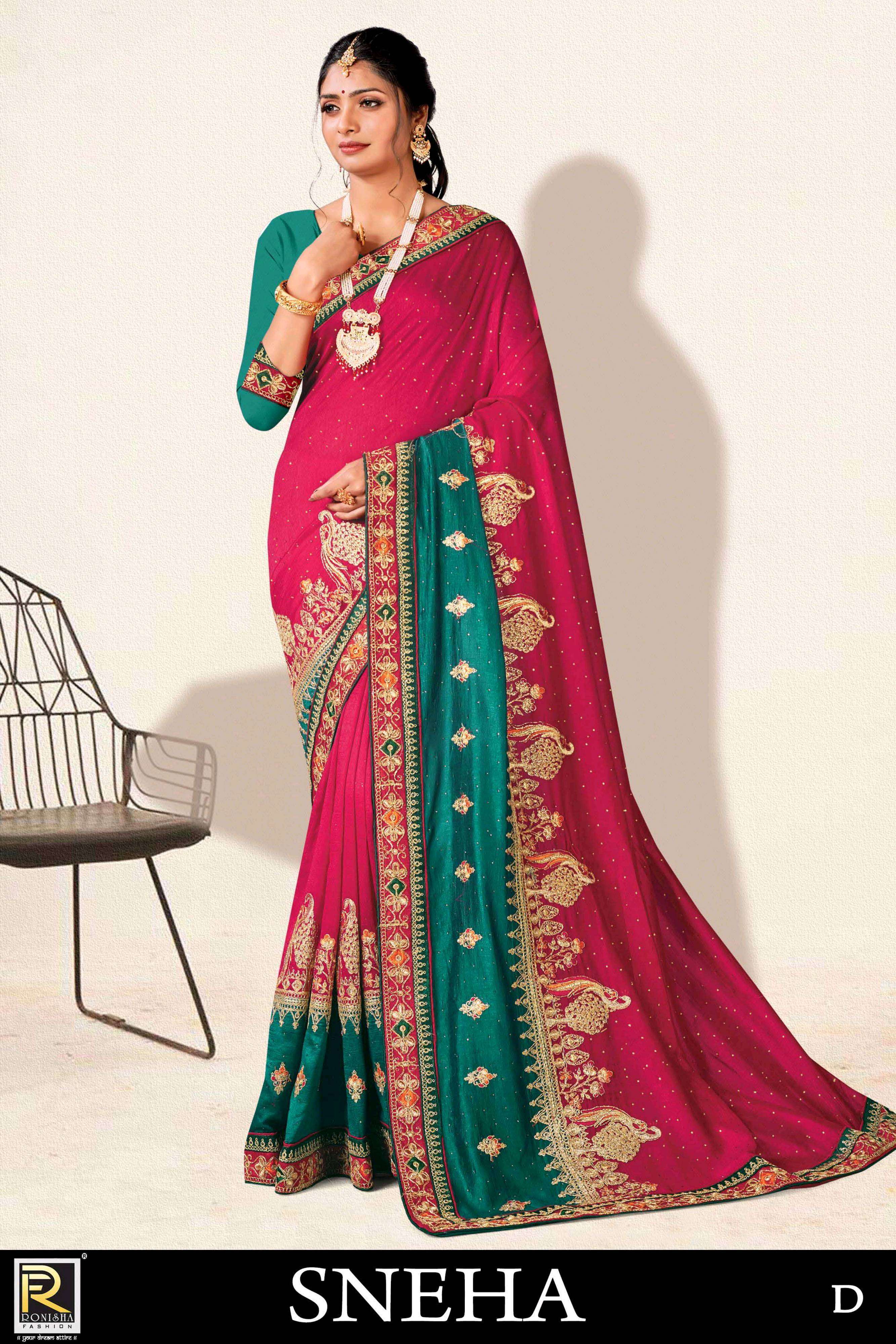 Sneha new launching product by ranjna saree embroidery worked designer saree collecton