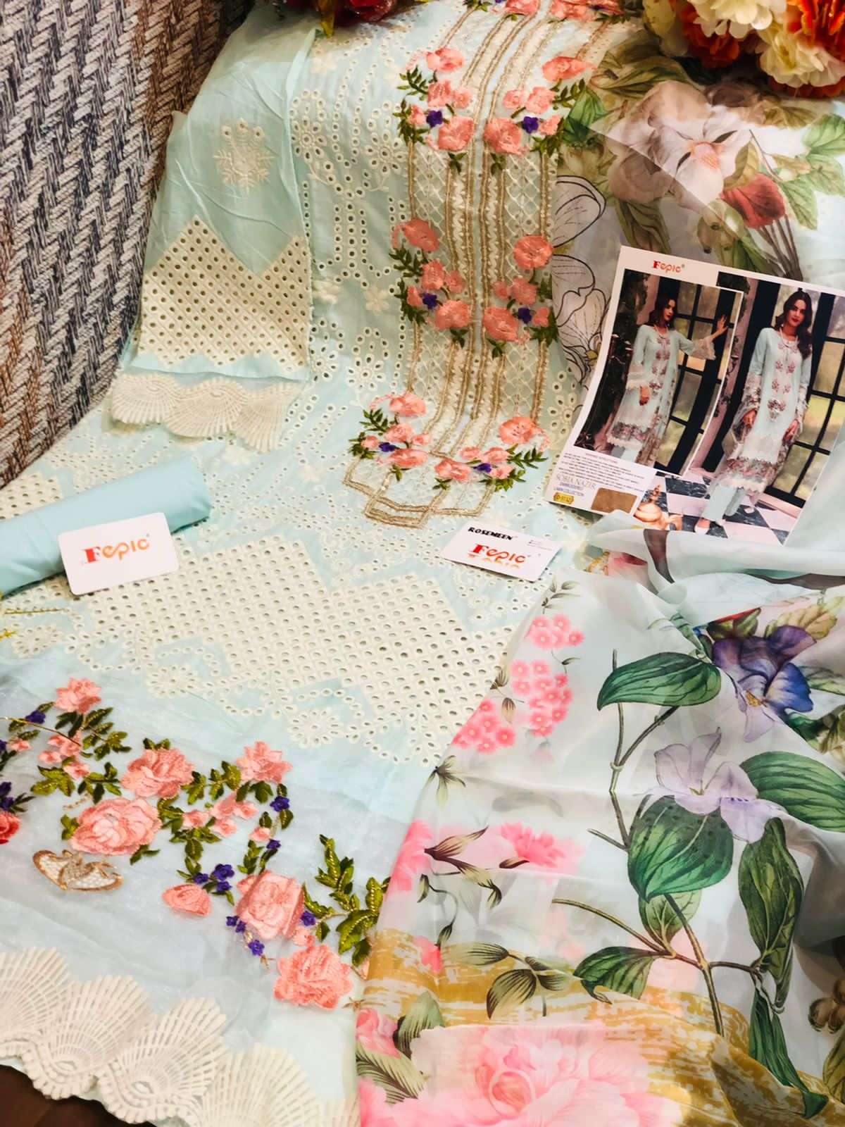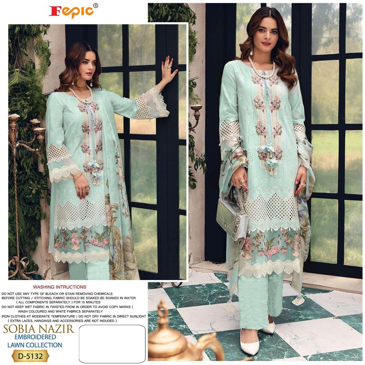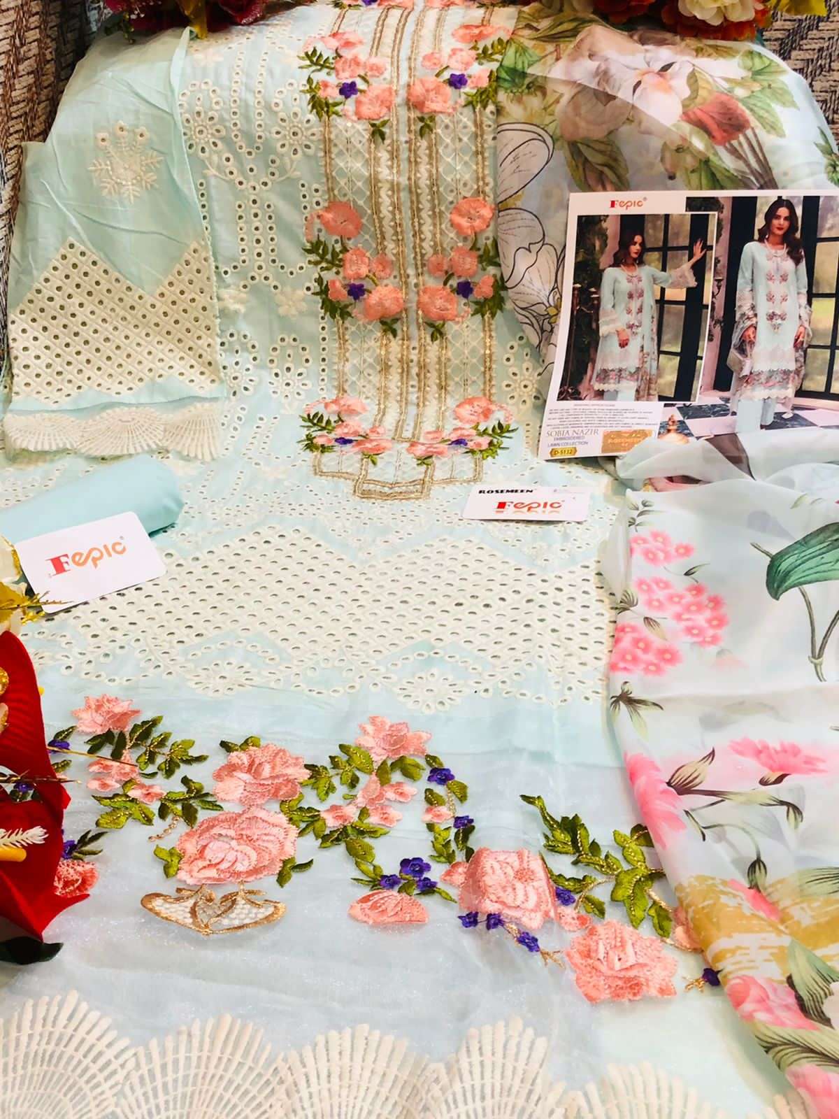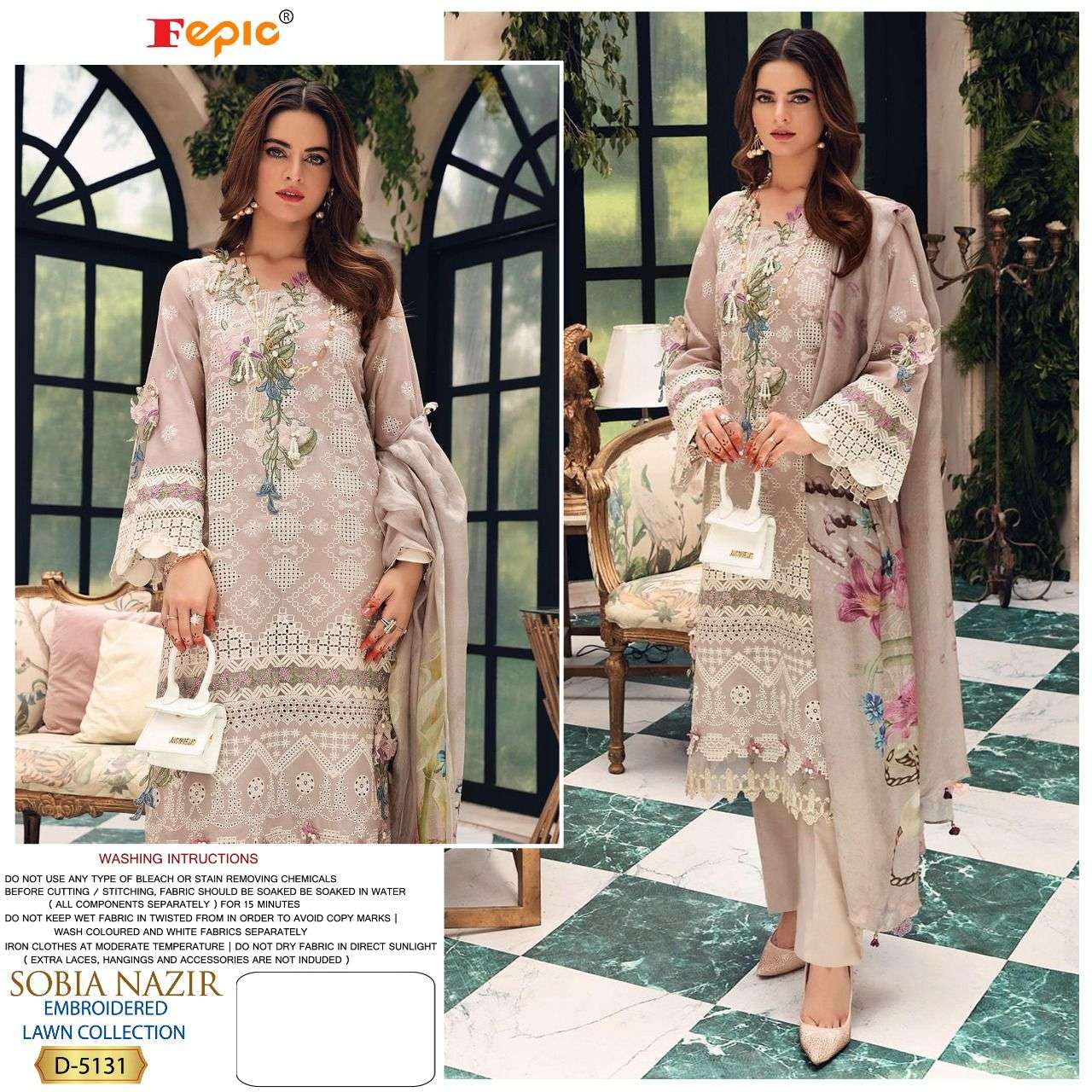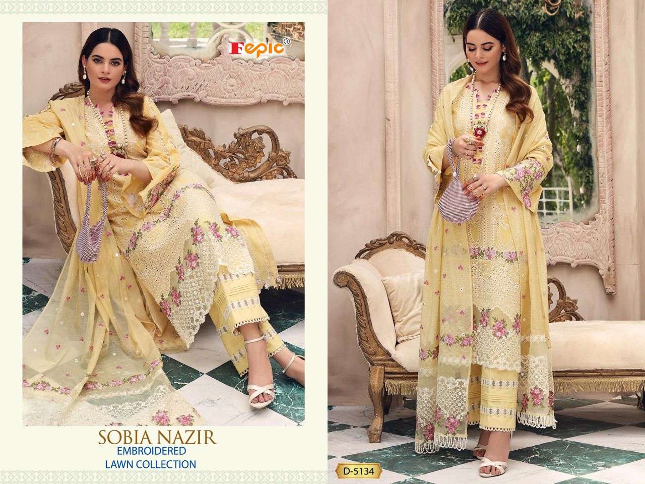 FEPIC Catalogue Name:-  *ROSEMEEN SOBIA NAZRIR * ( EMBROIDERED LAWN COLLECTION )    Fabric details Top : PURE COTTON EMBROIDERED Bottom  :SEMI LAWN â Dupatta : TUBBY SILK DIGITALY PRINTED / NET EMBROIDERED ©Company average Rate :1259/- Dispatch _STARTS  SATURDAY _ |