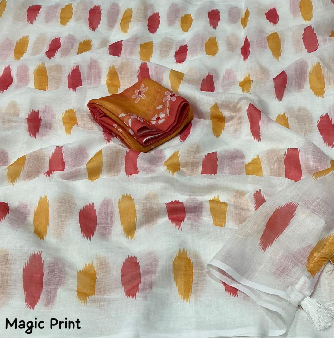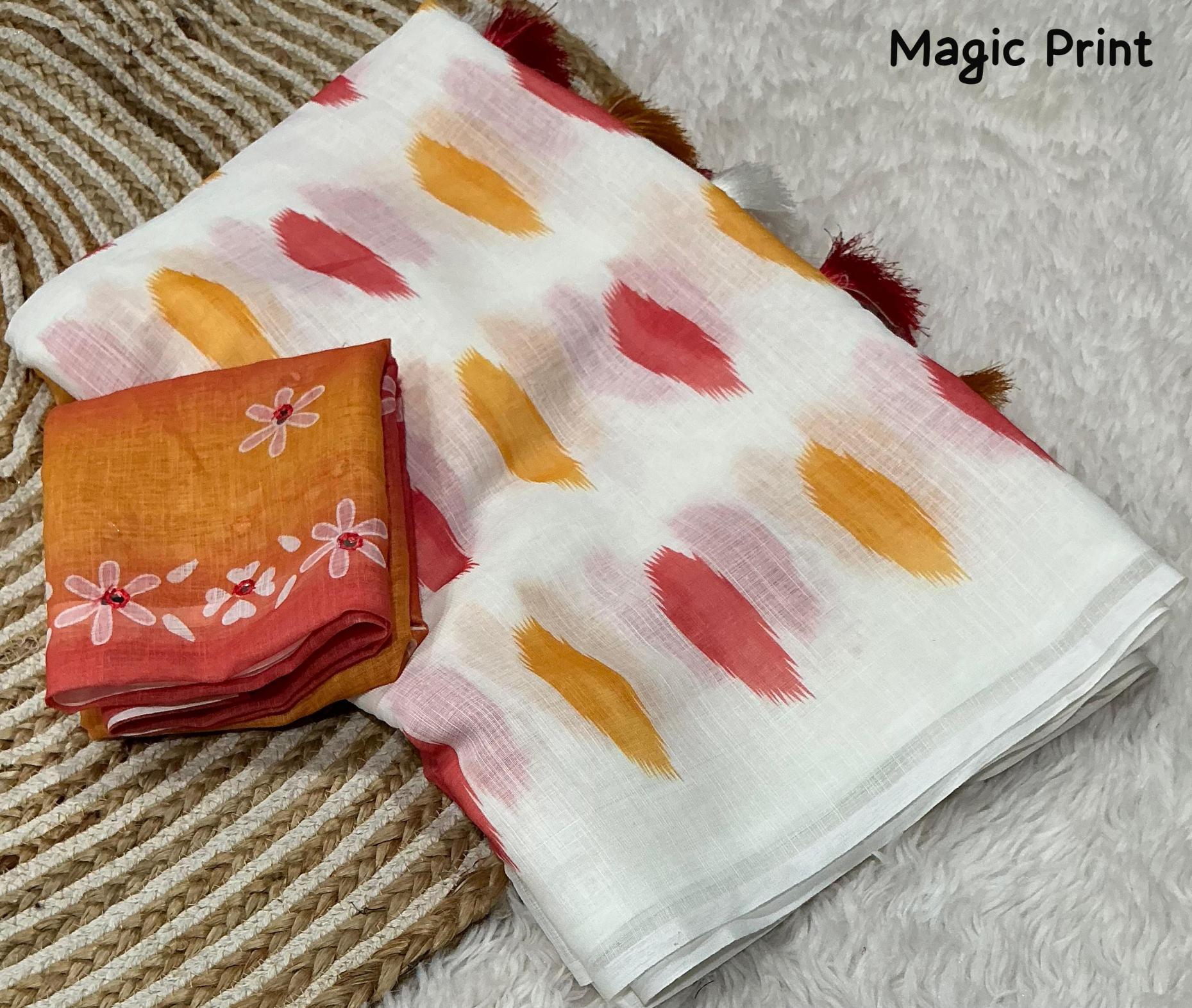 soft linen multi colour digital prints amazing saree wholesaler