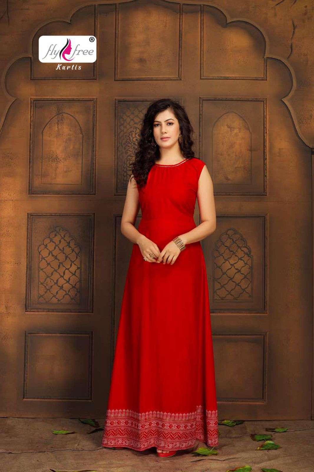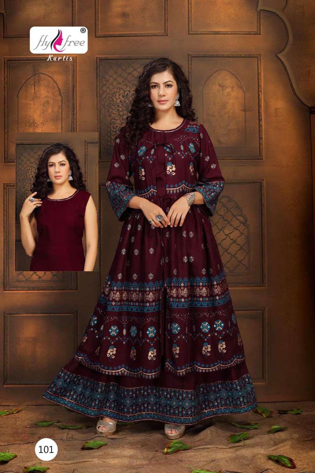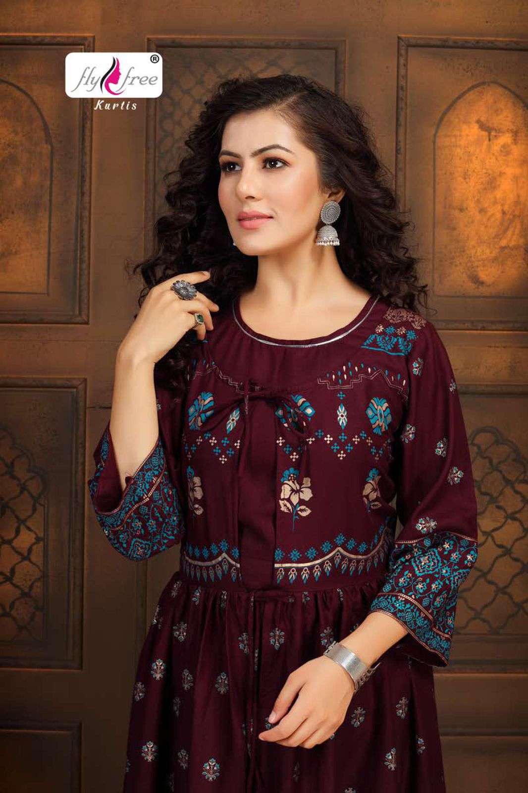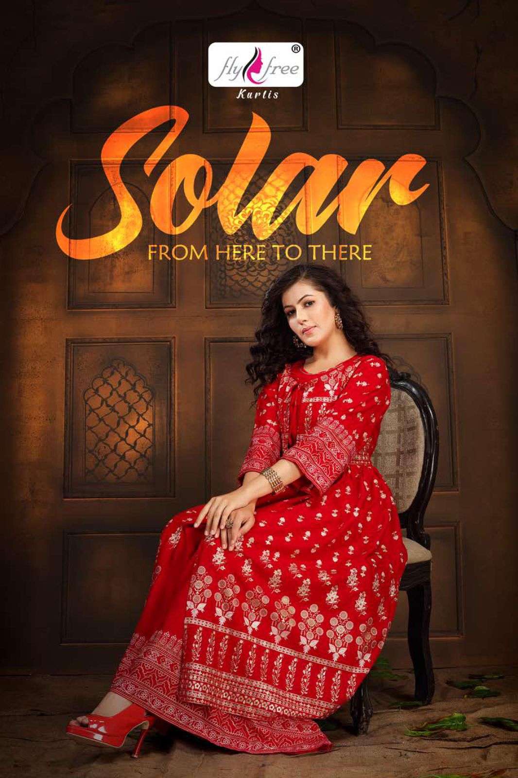 SOLAR BY FLY FREE HEAVY RAYON GOLD PRINT WITH JACKET KURTI CATALOG