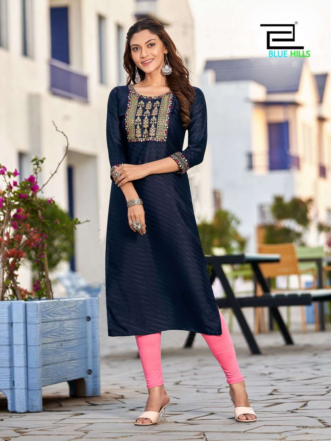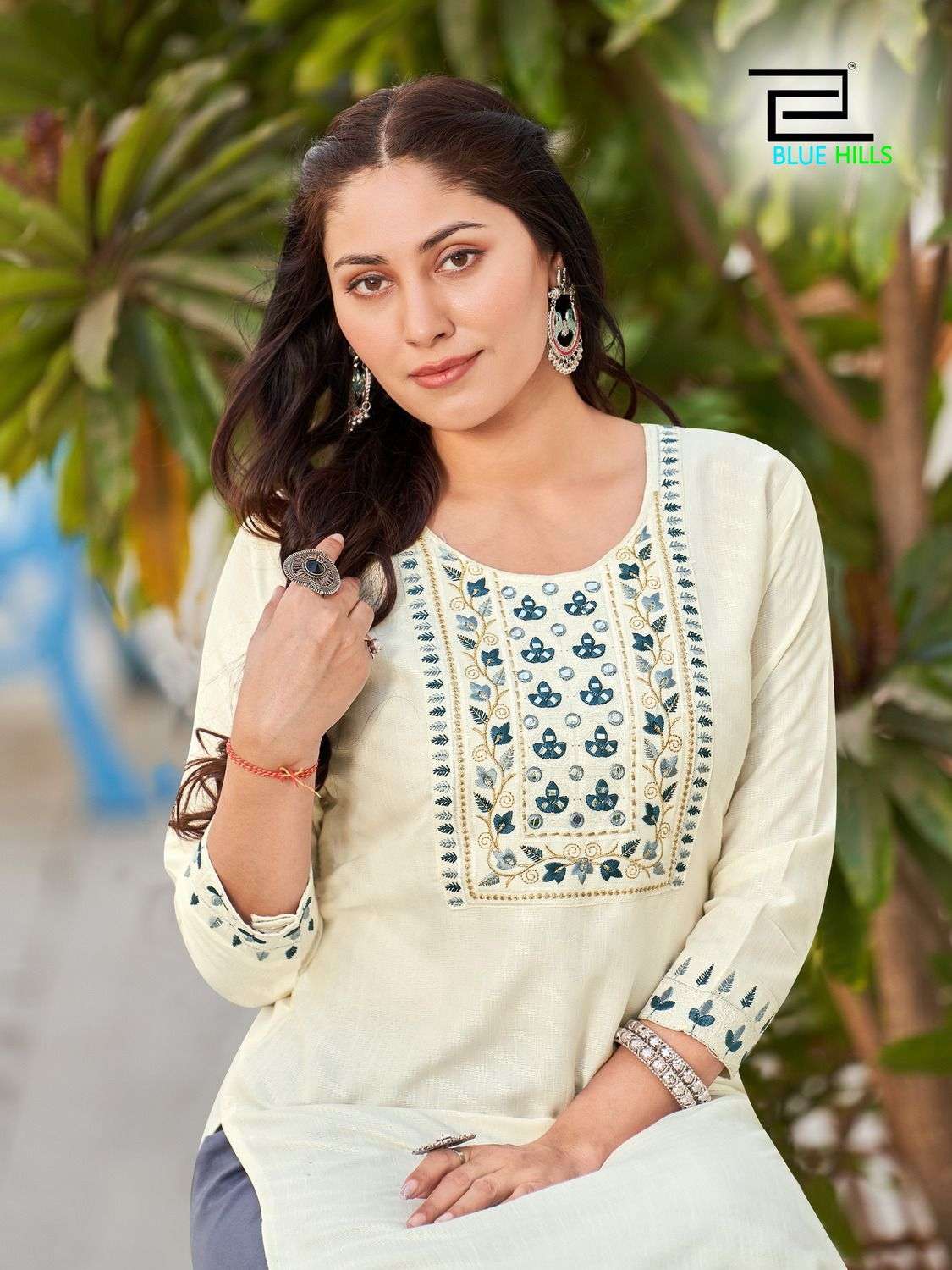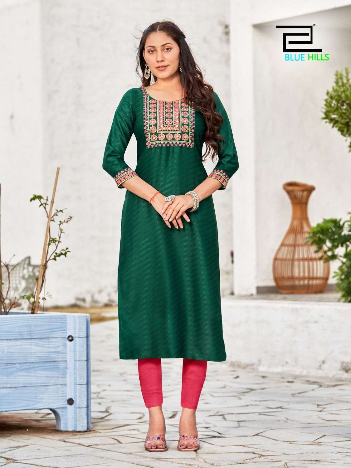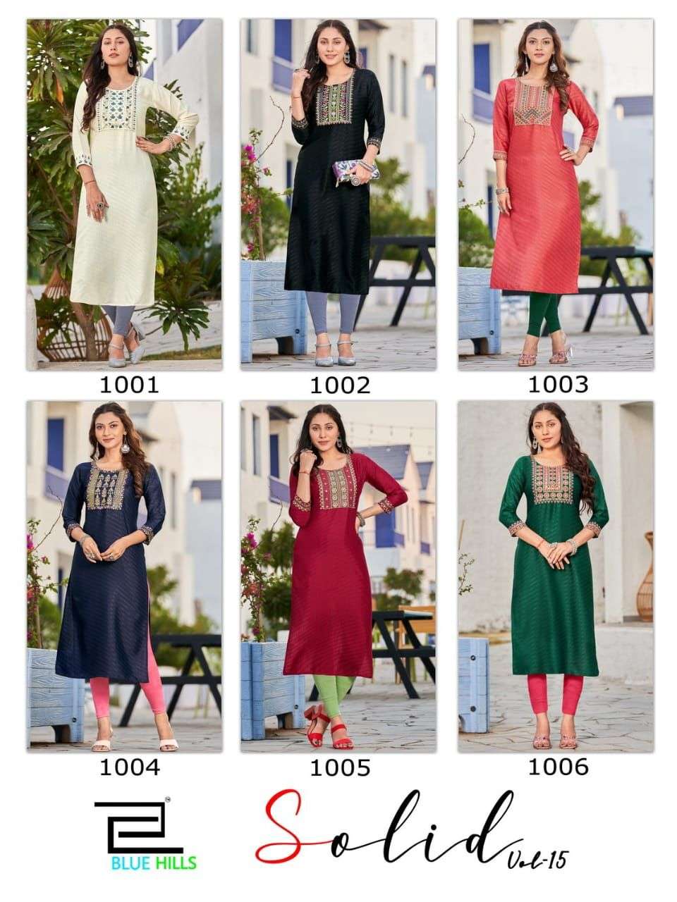 solid vol 15 by blue hills neck embroidered fancy wear kurtis